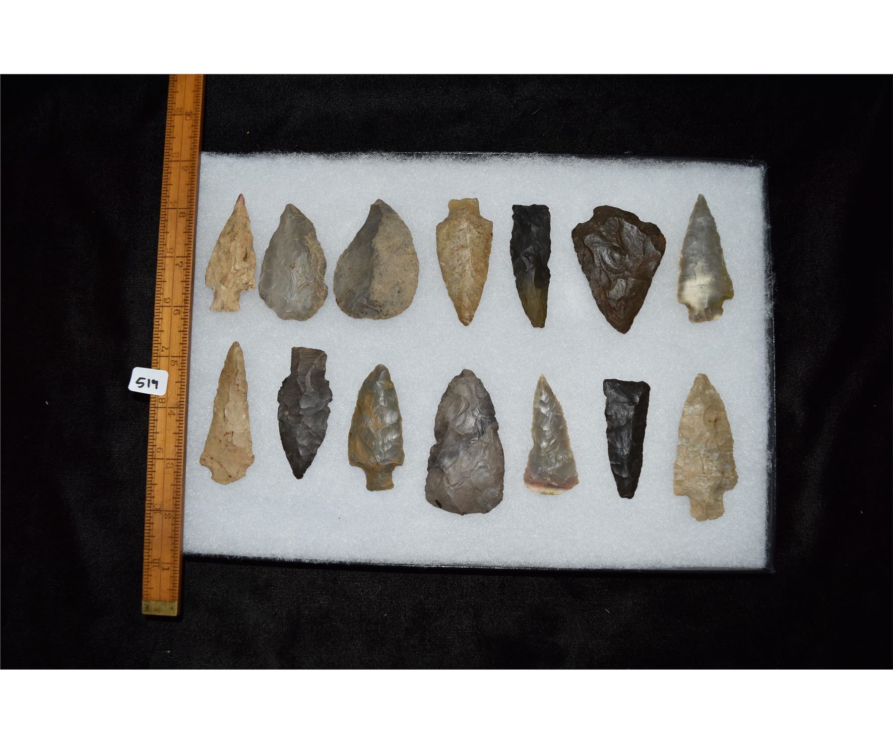 Lot of Approximately 14 Arrowheads, Central Kentucky
