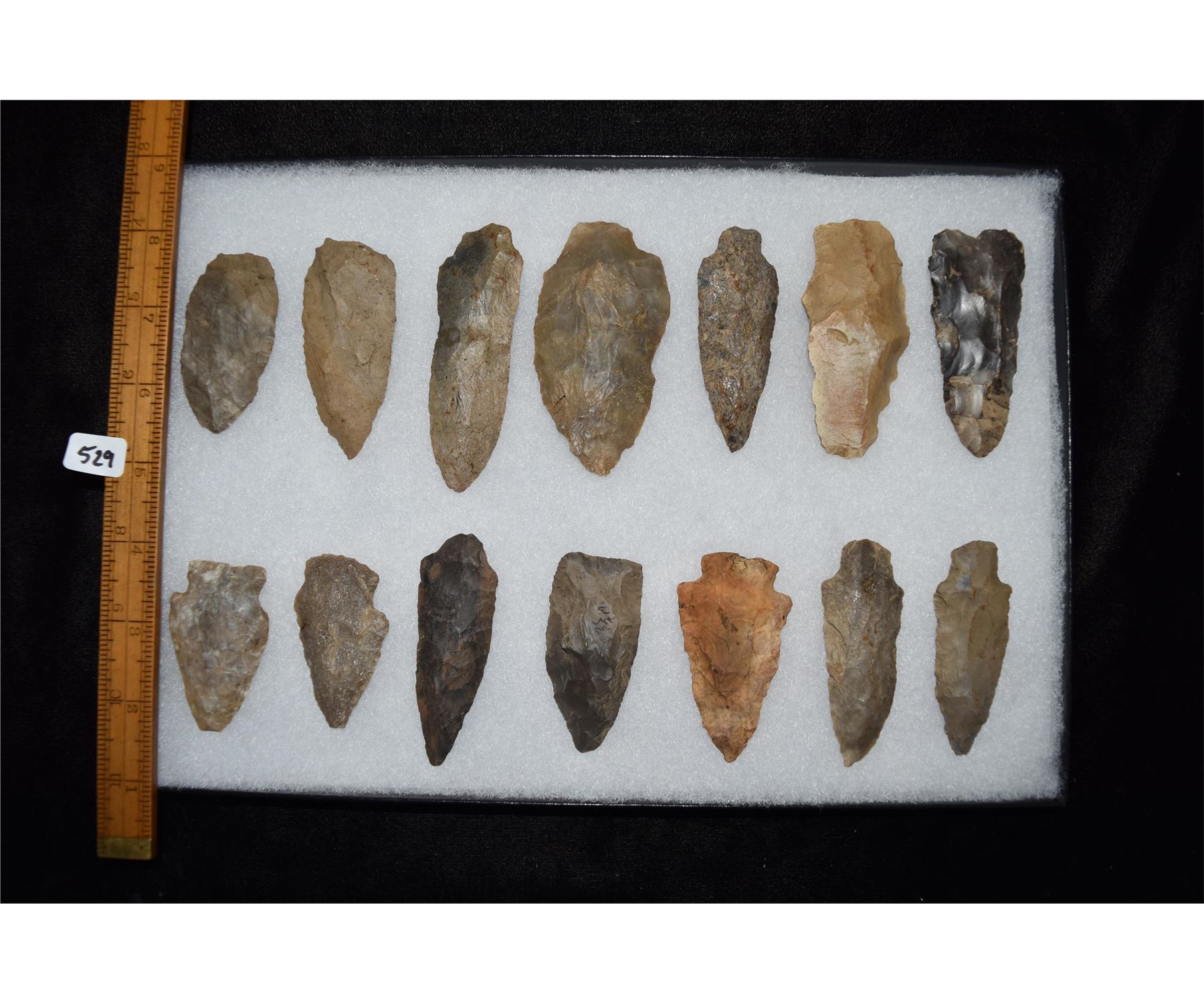Lot of Approximately 14 Arrowheads, Central Kentucky