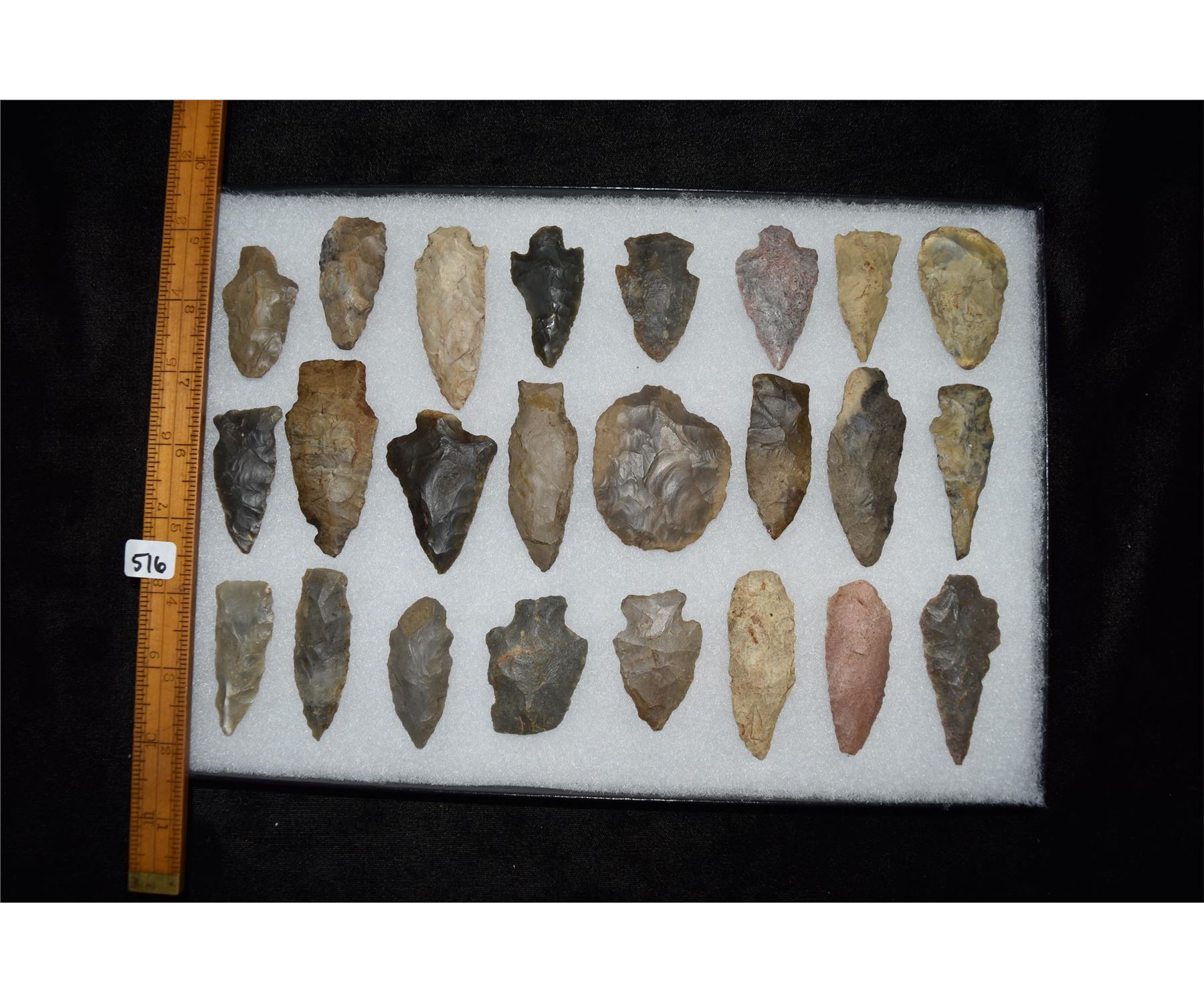Lot of Approximately 24 Arrowheads, Central Kentucky