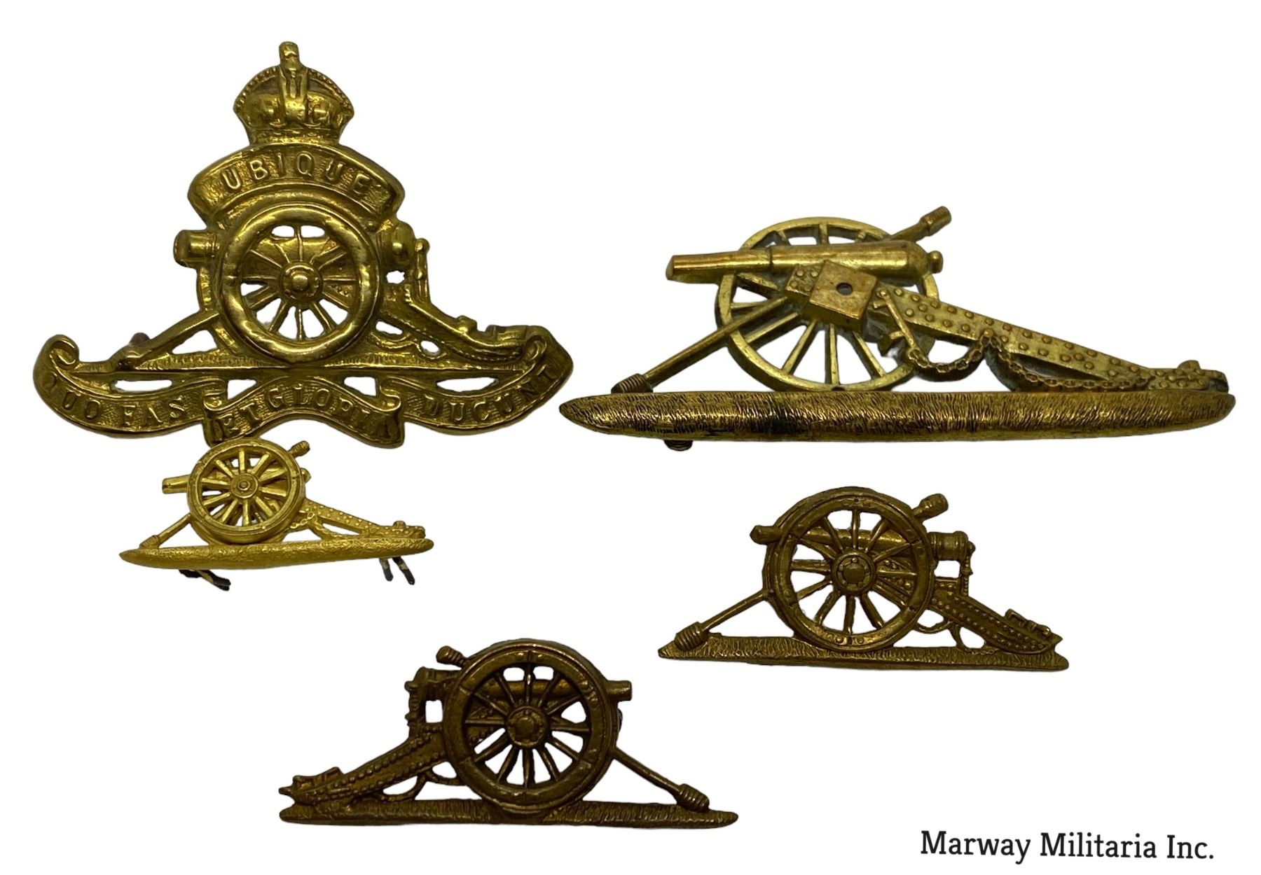 Lot of 6. One Cap badge, other are the metal sleeve cannons. One quite large