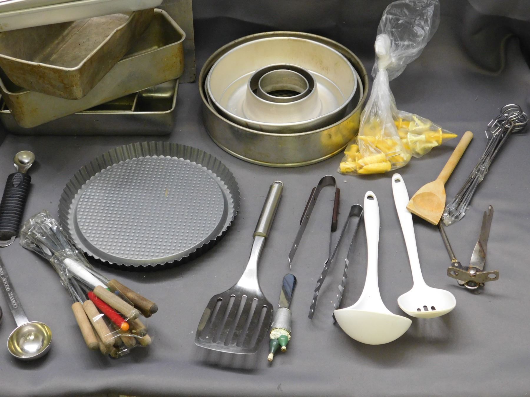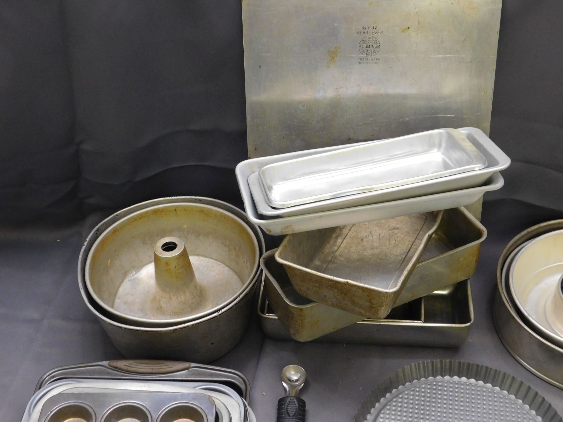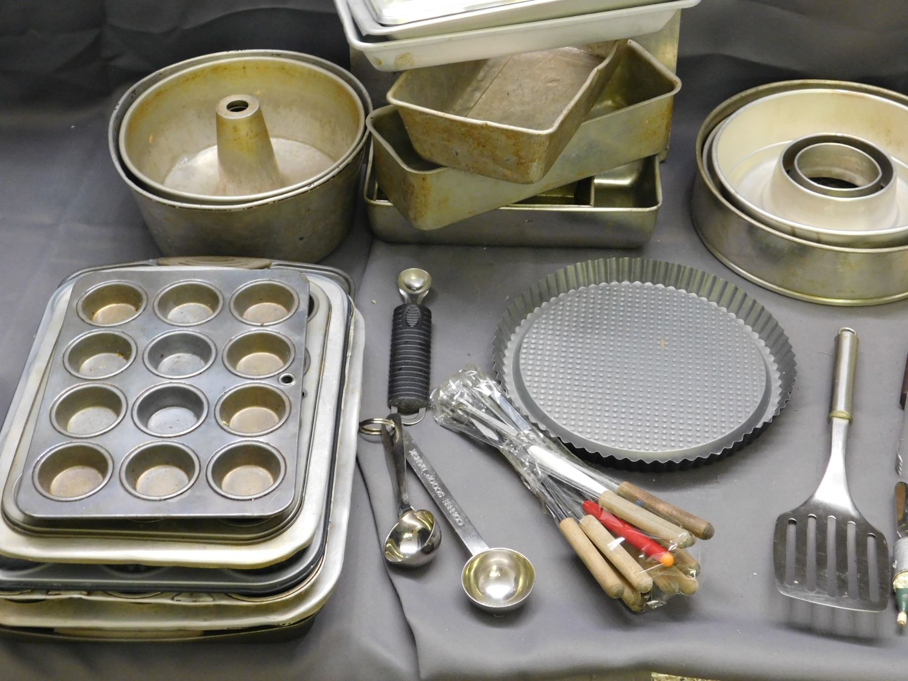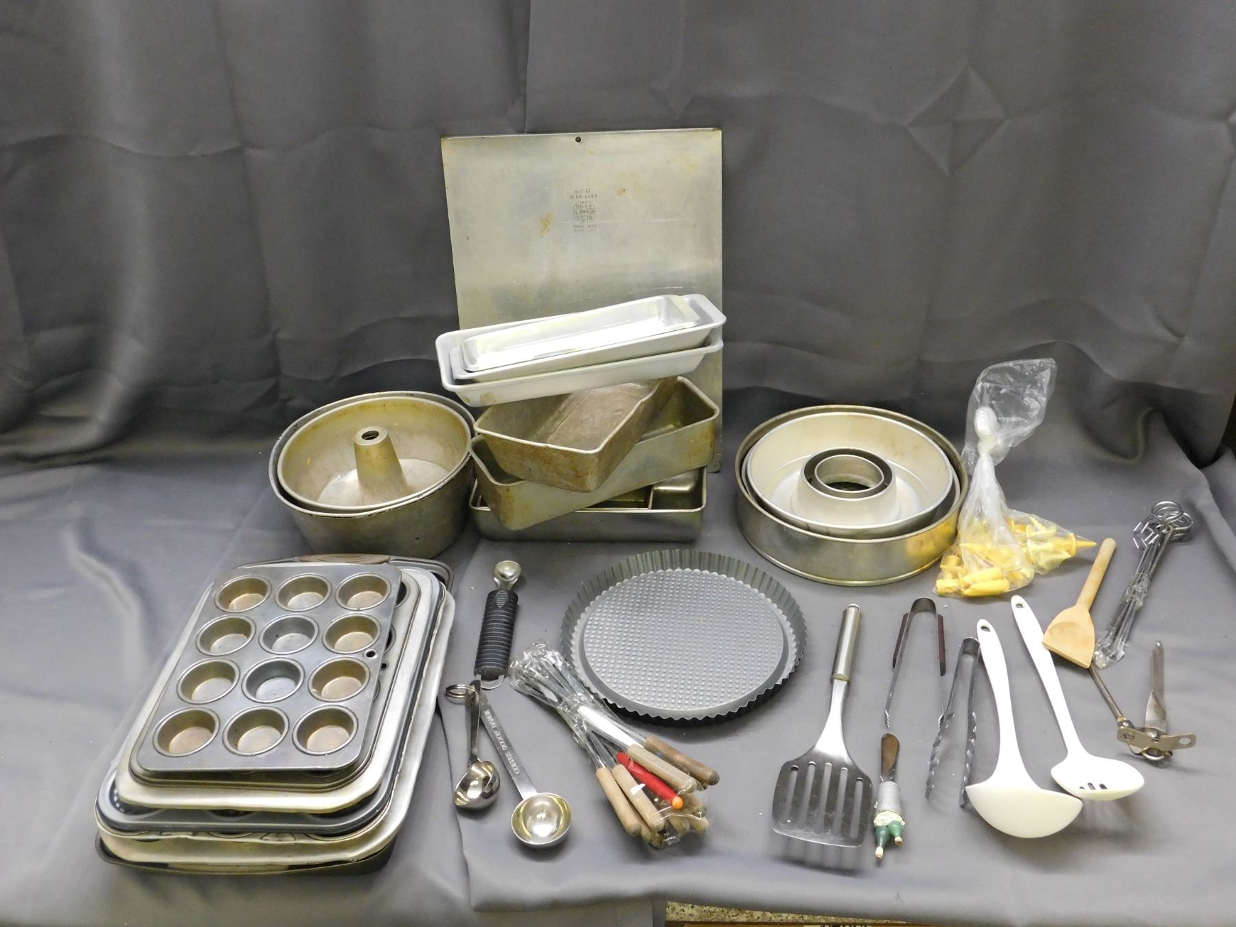 Lot of Assorted Aluminum Kitchen Ware, Baking Trays, Cupcakes, Cake Molds, Utensils, Loaf Pans, Etc