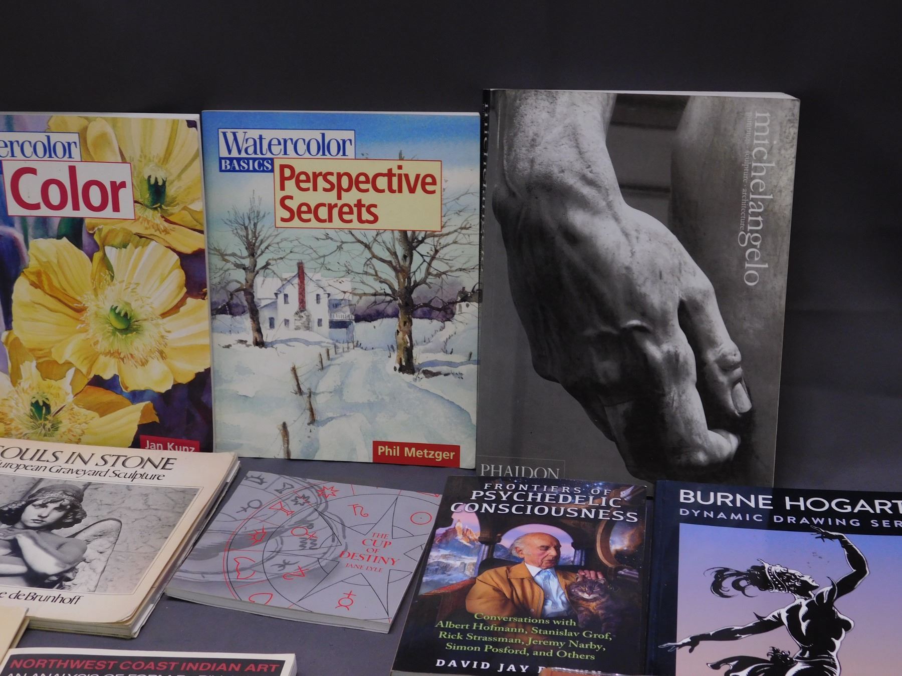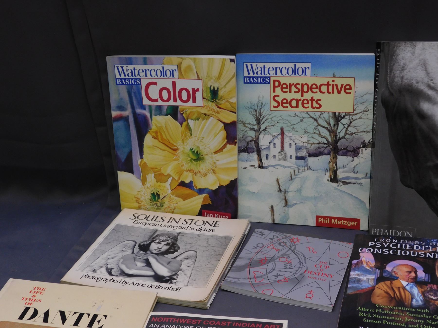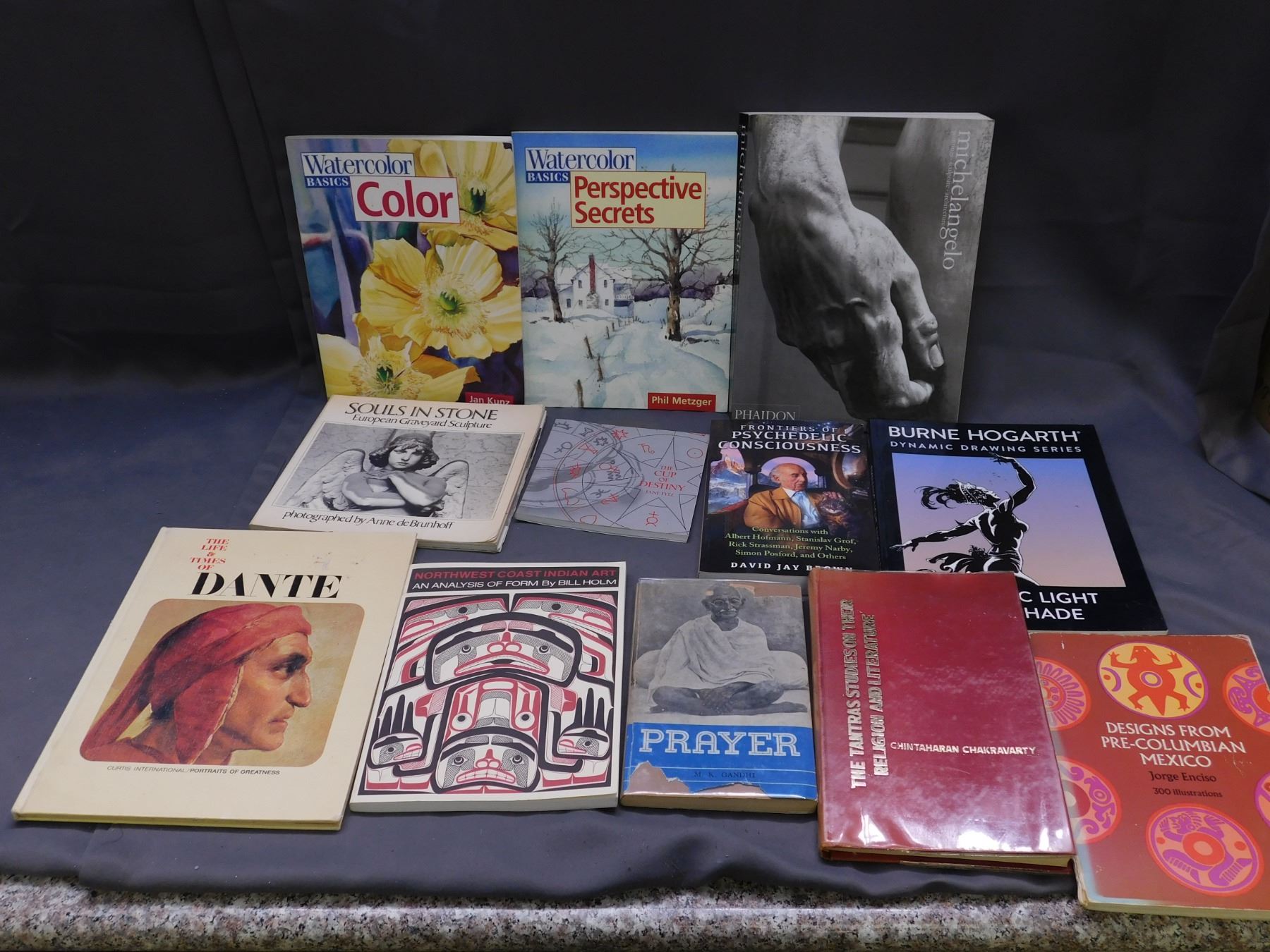 Lot of Assorted Books Michelangelo Art Book, Watercolor Basics, Tantras Religion, Haida, Dante, etc