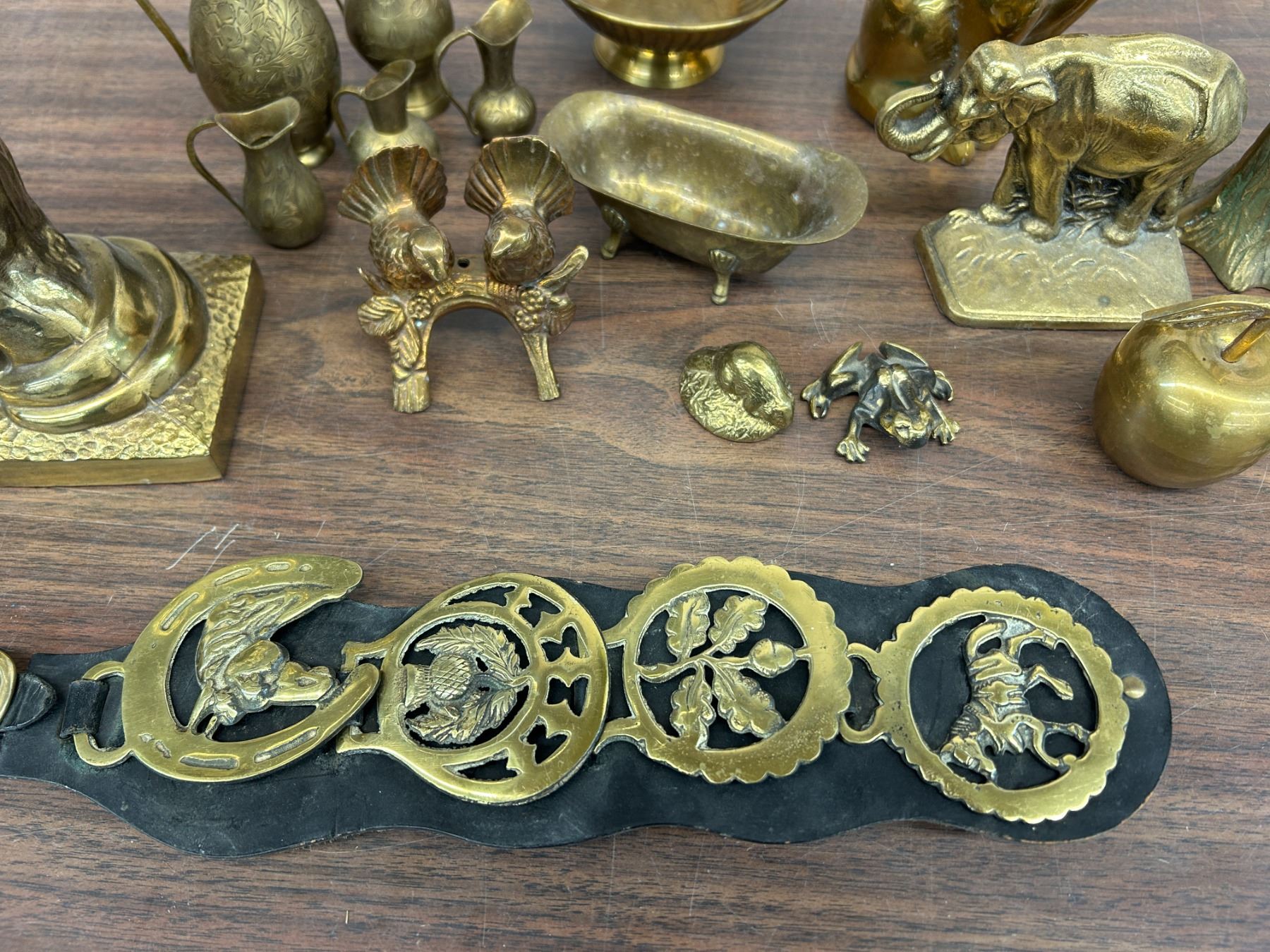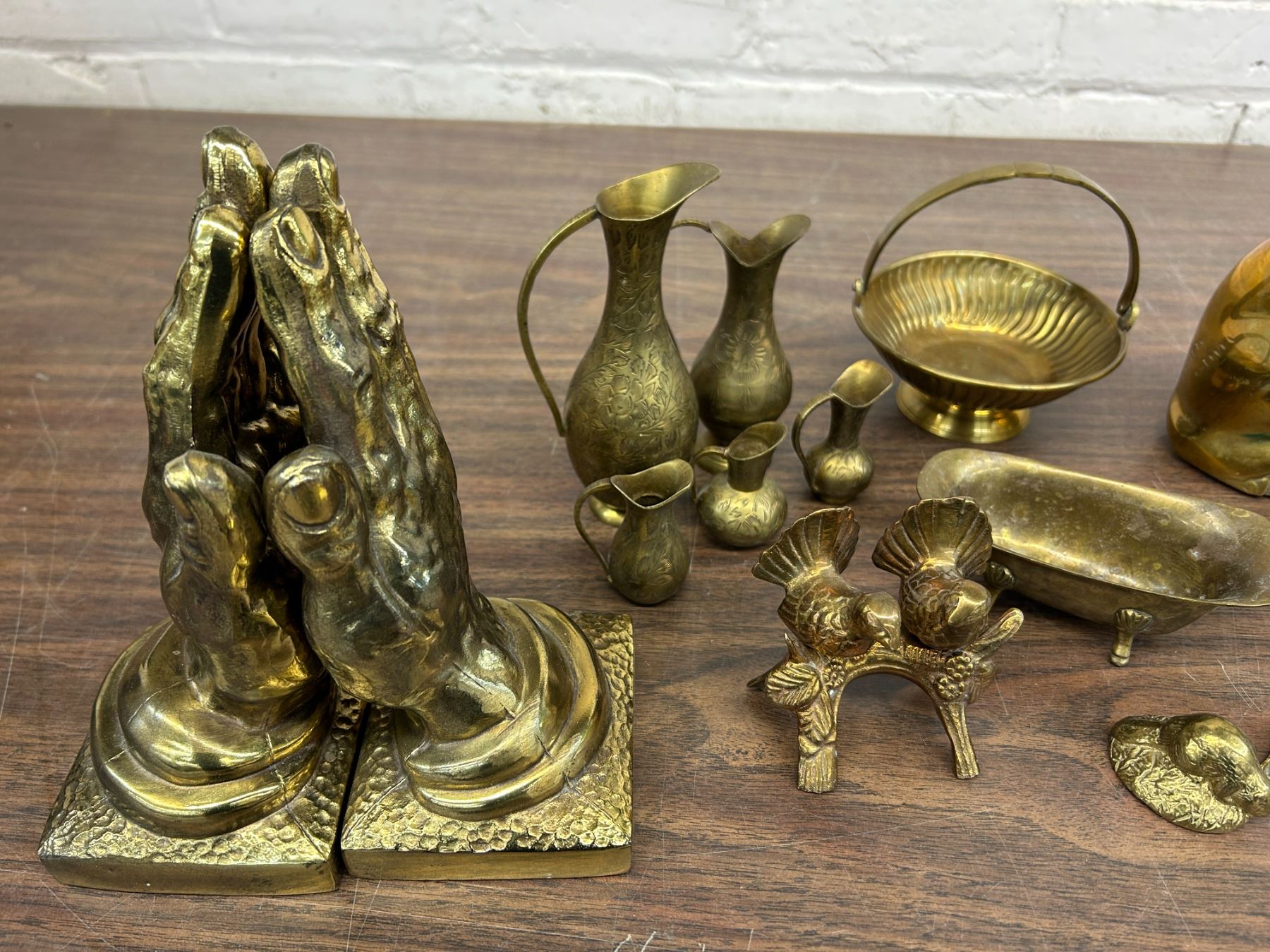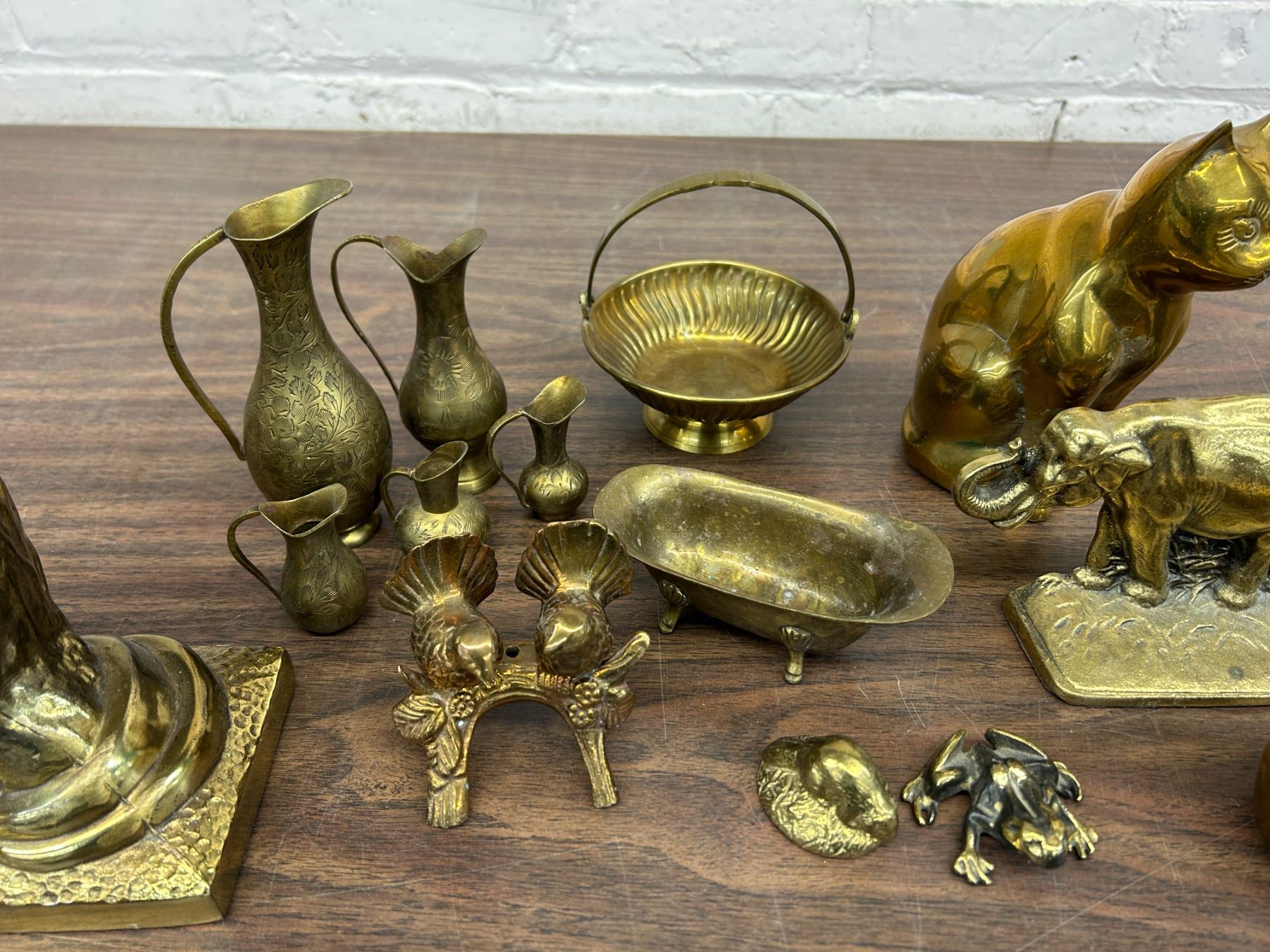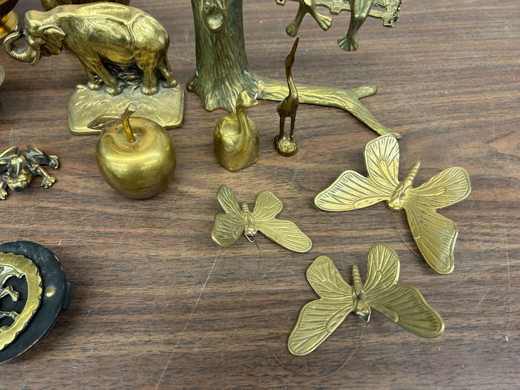 Lot of Assorted Brass Figurines, Hand Bookends, Frog, Elephant, Cat, Butterfly, etc