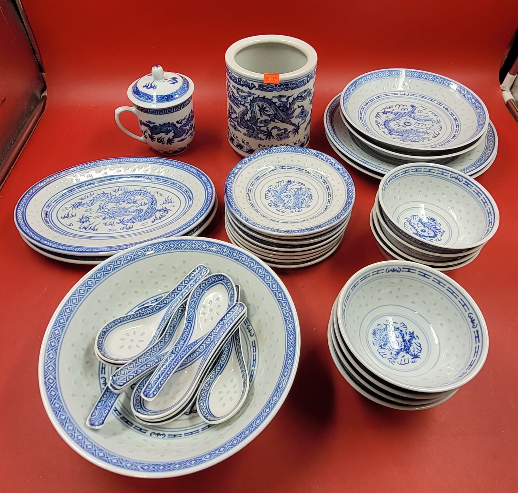 Lot of Assorted Chinese Blue Dragon Dishes w/ Bowls, Plates, Soup Spoon, & More