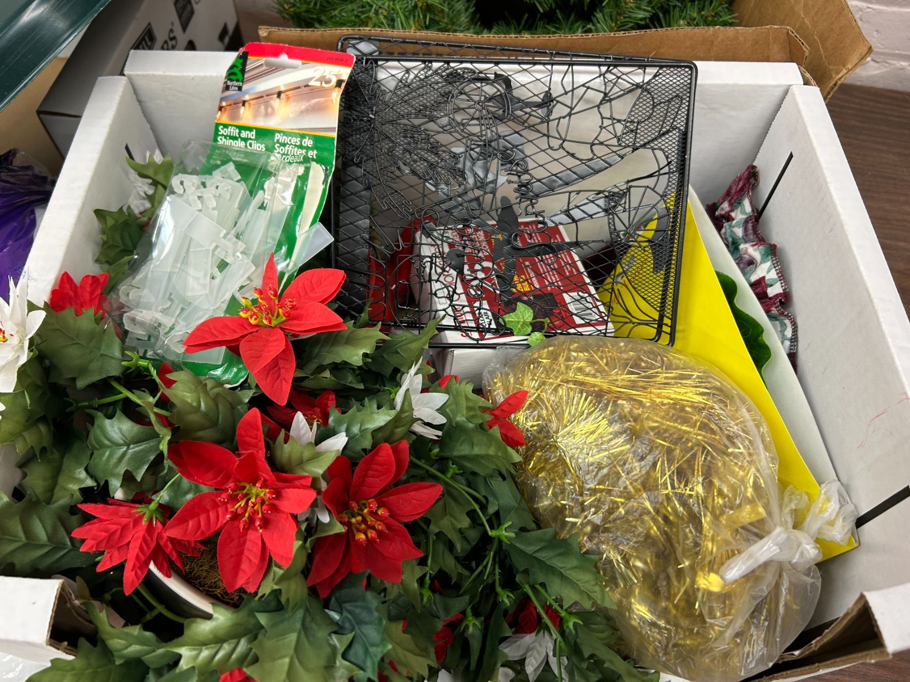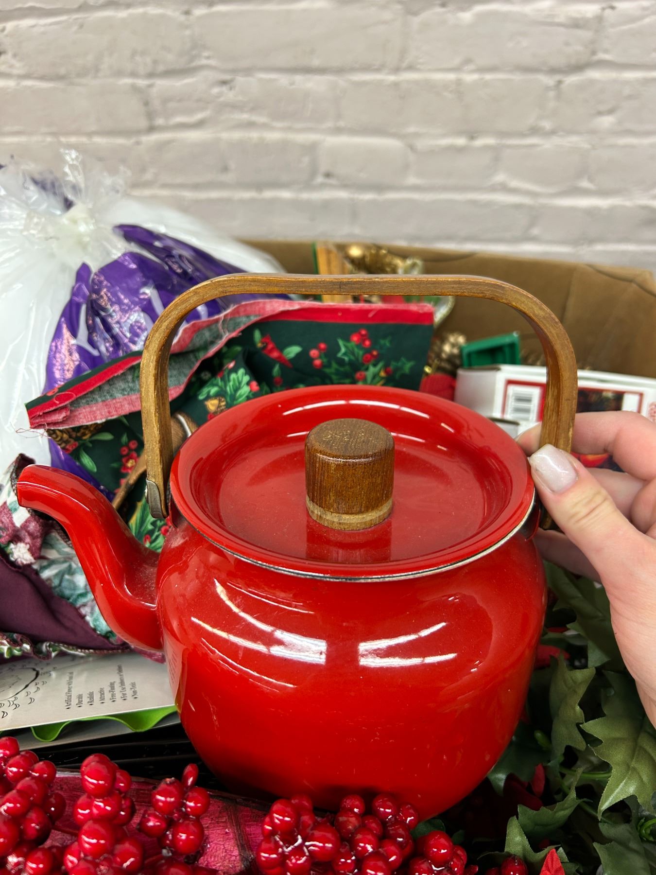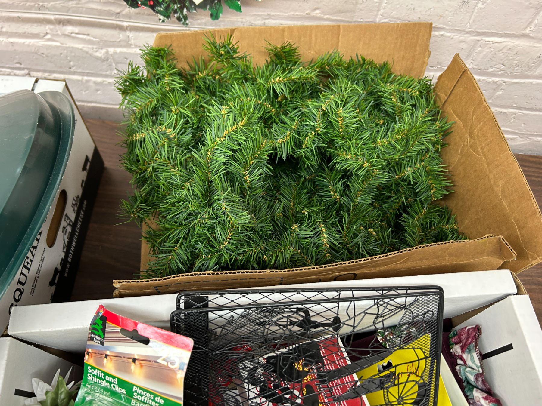 Lot of Assorted Christmas Decor Berry Wreath, Tree Stand, Garland, Etc