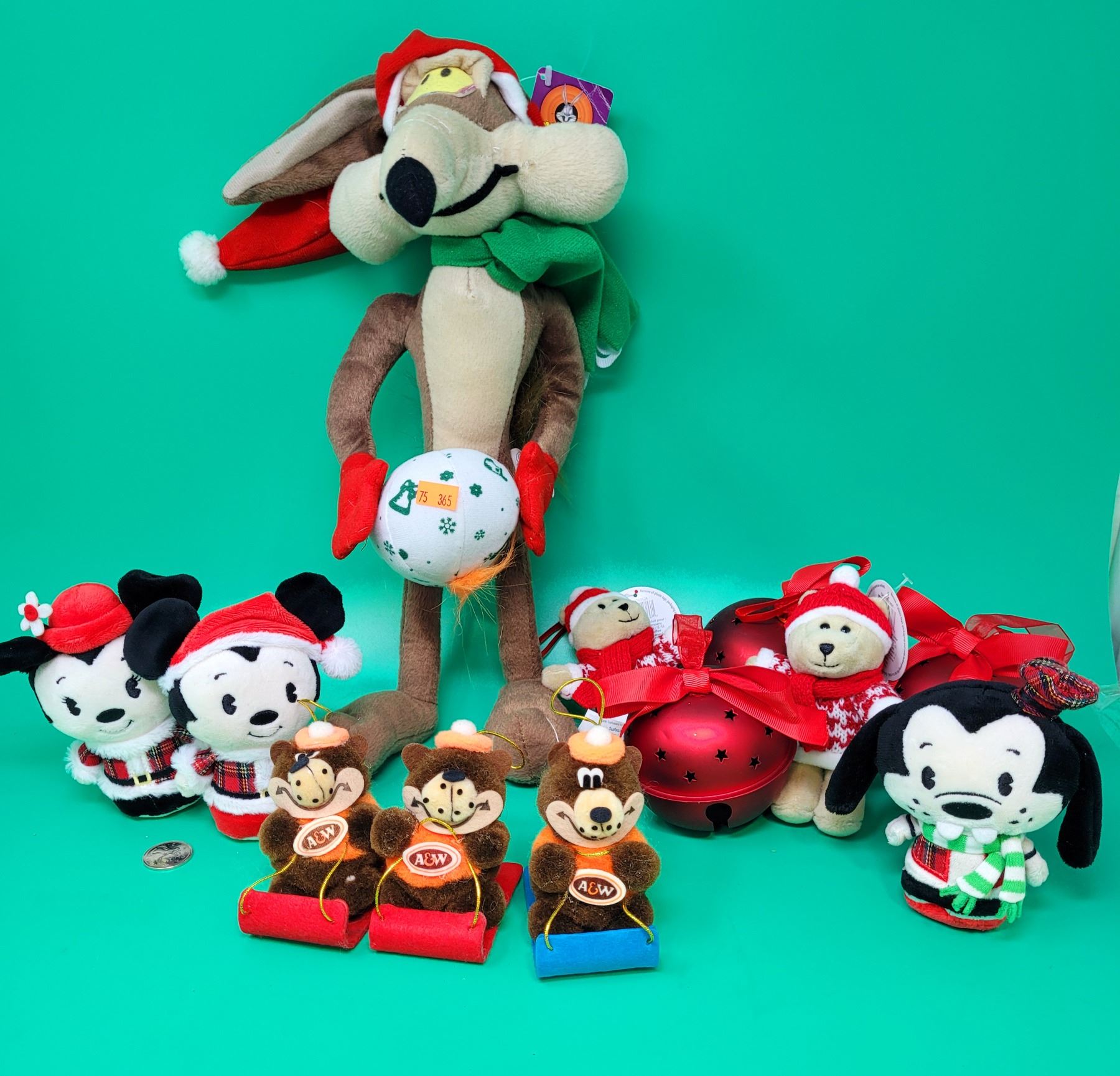 Lot of Assorted Christmas Plushies w/ Looney Tunes, Disney, A&W, & More