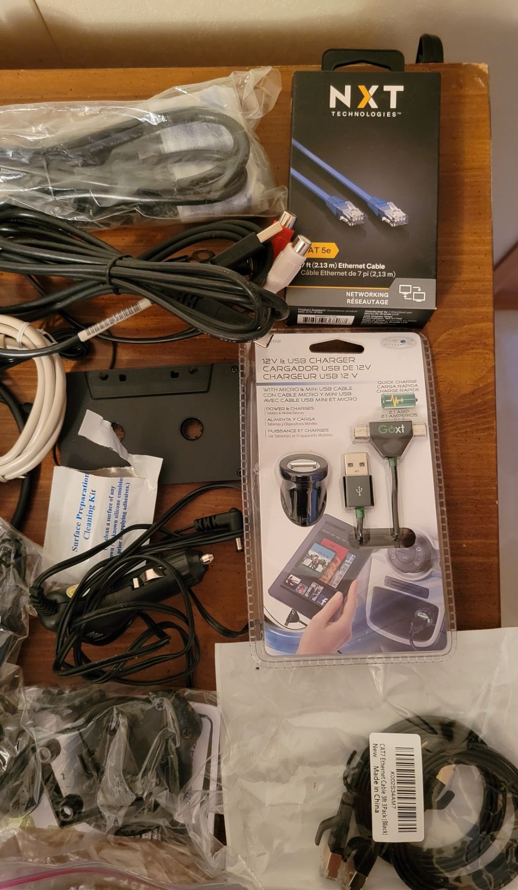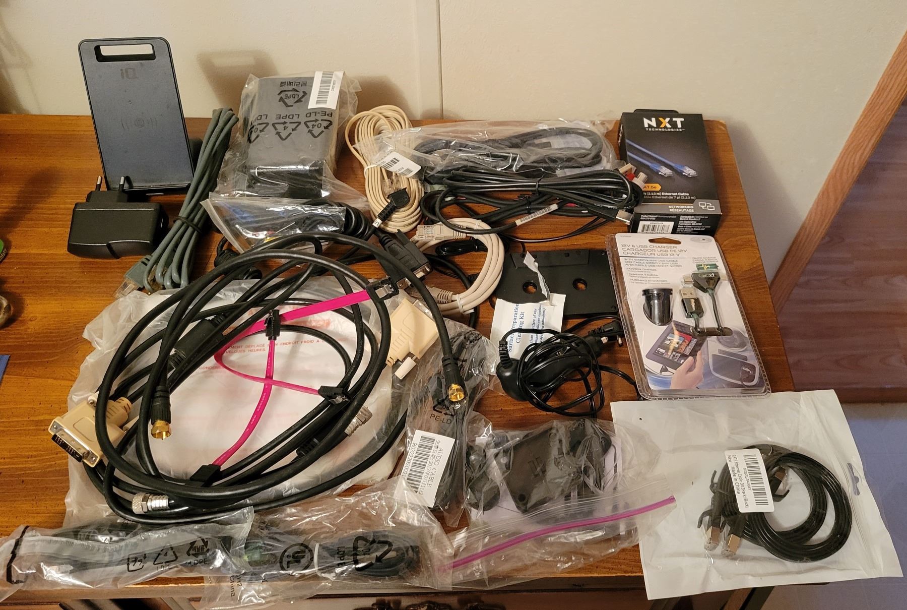 Lot of Assorted Electronic cords & chargers (includes: wireless charging dock, power cords, charging cords etc.)
