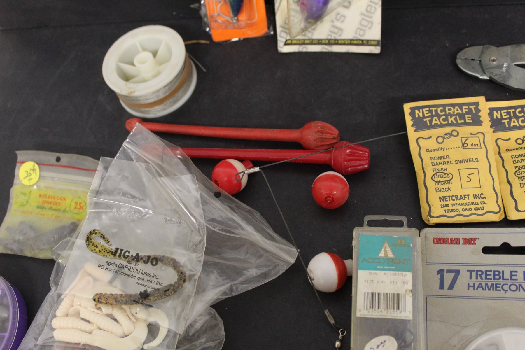 Lot of Assorted Fishing Items - J-Hooks, Treble Hooks, Lone Tail Bait, Line Weights, Etc.