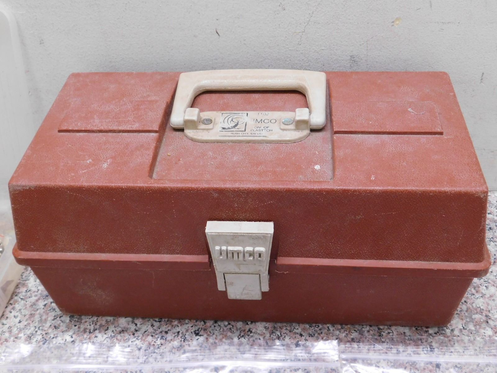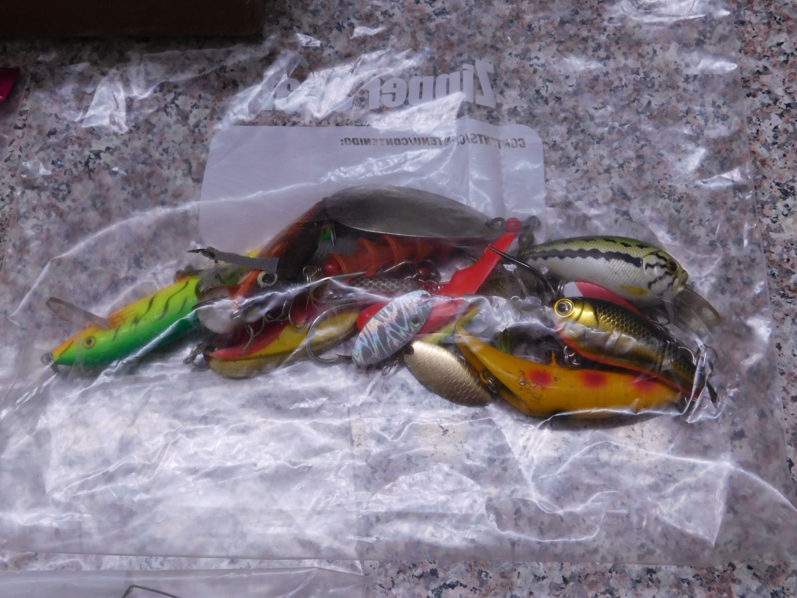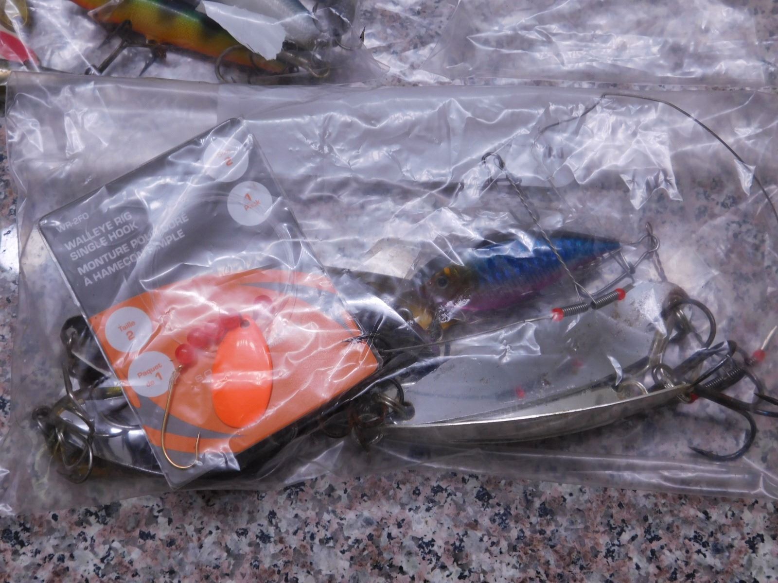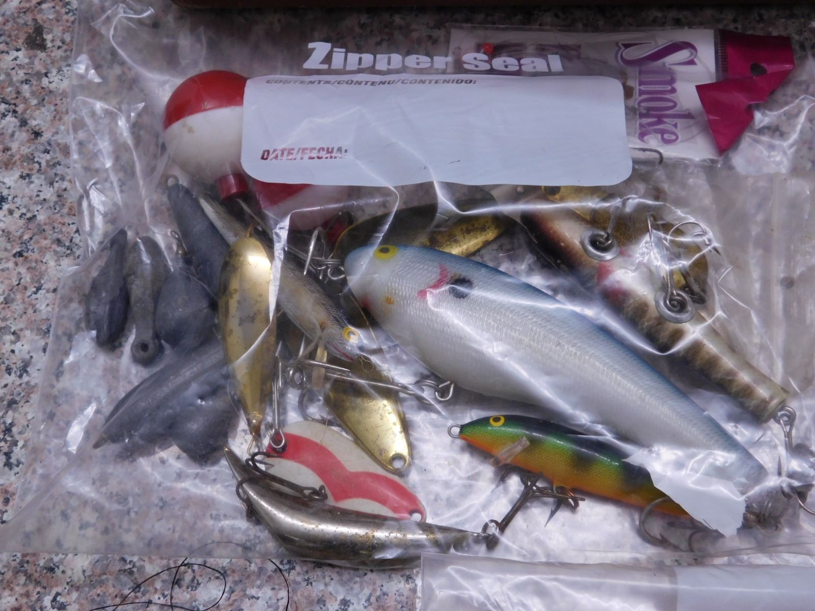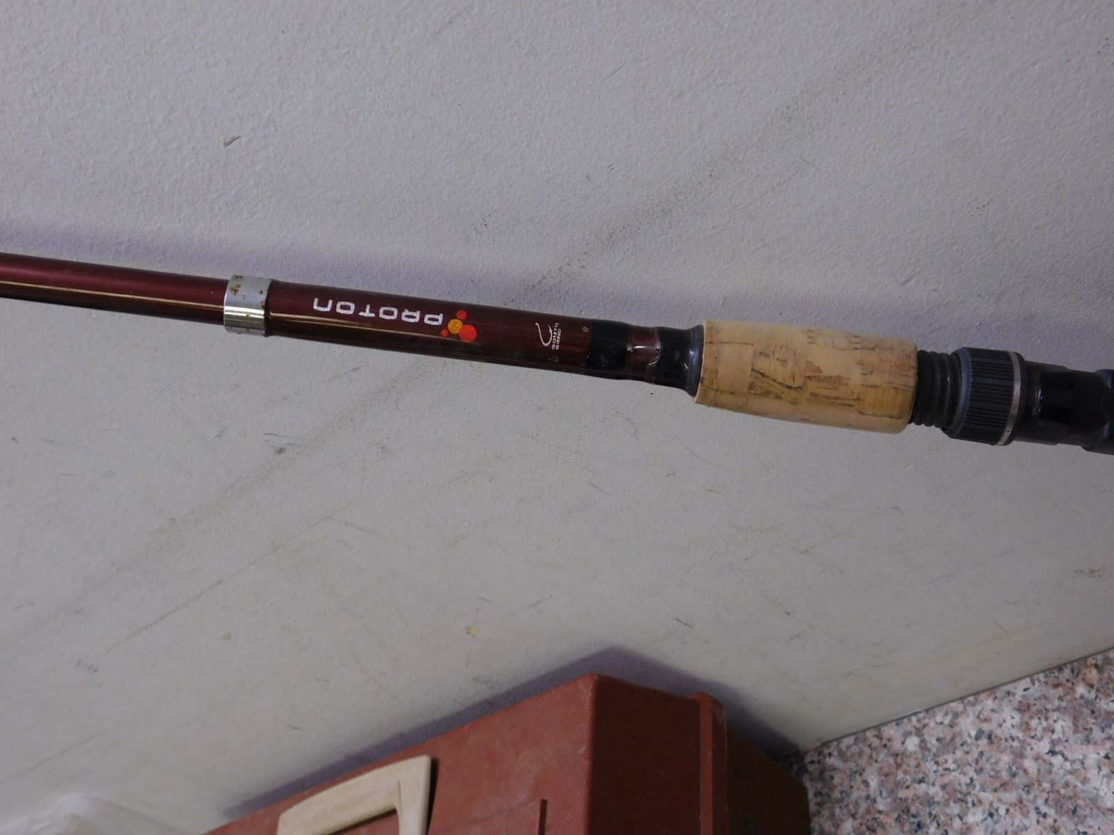 Lot of Assorted Fishing Lures, Supplies, Tackle Box, Proton Rod and Outback Fishing Reel, Knife, Etc