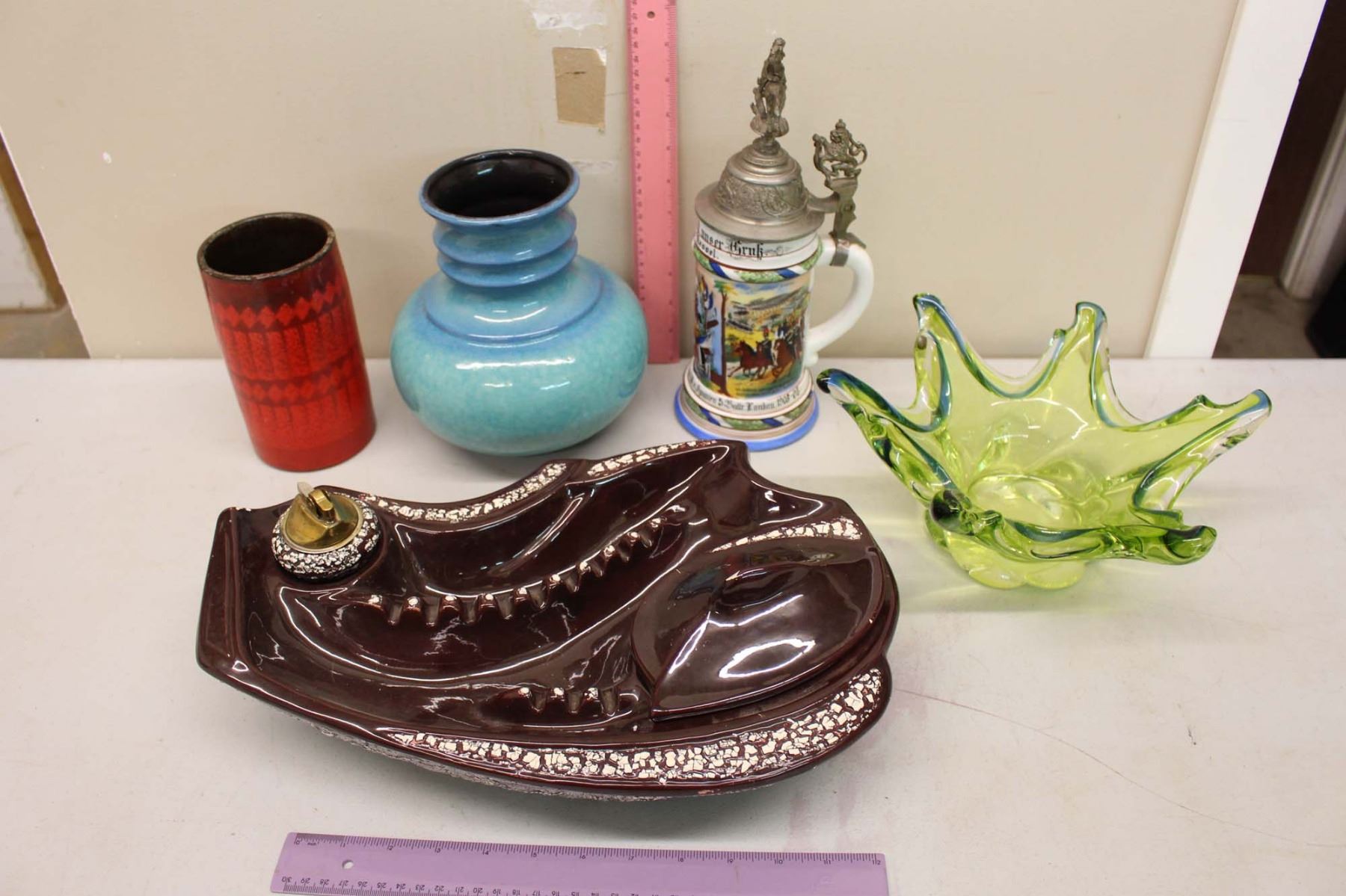 Lot of Assorted Glassware (4 Pieces)(Ashtray, Vases)