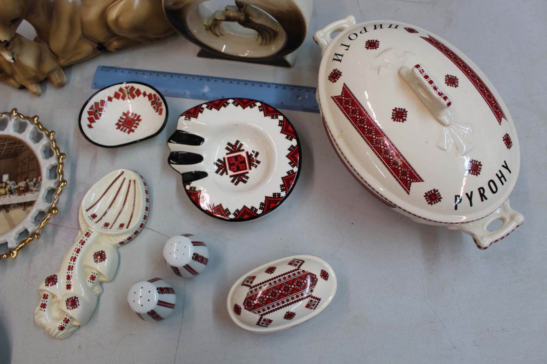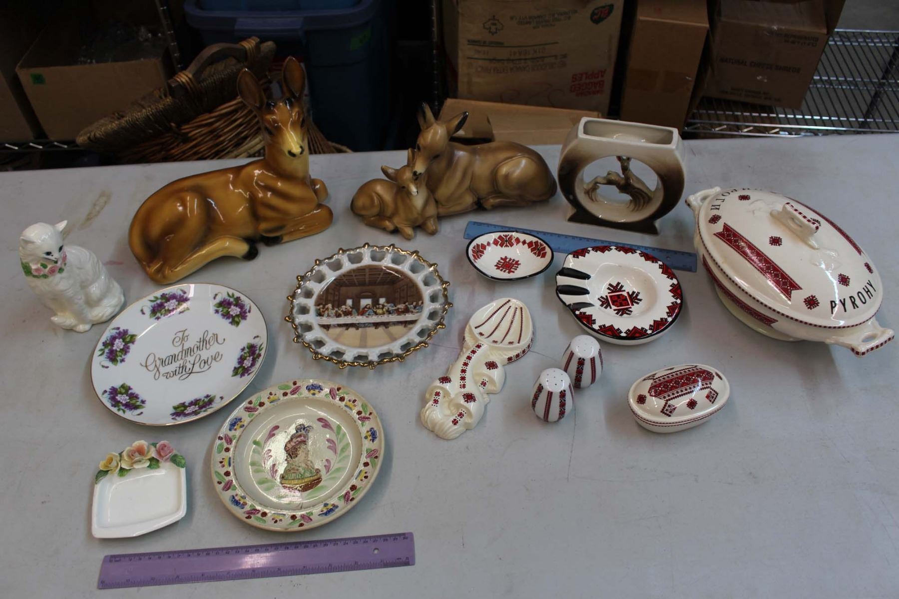 Lot of Assorted Glassware: Animal Figures, Ukrainian Dishware, Etc