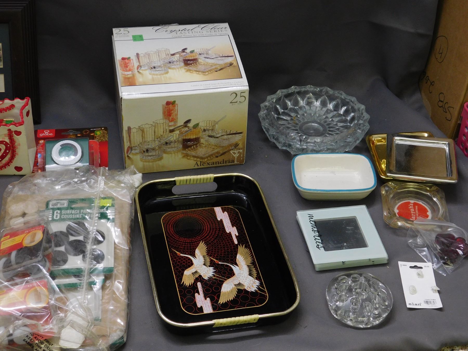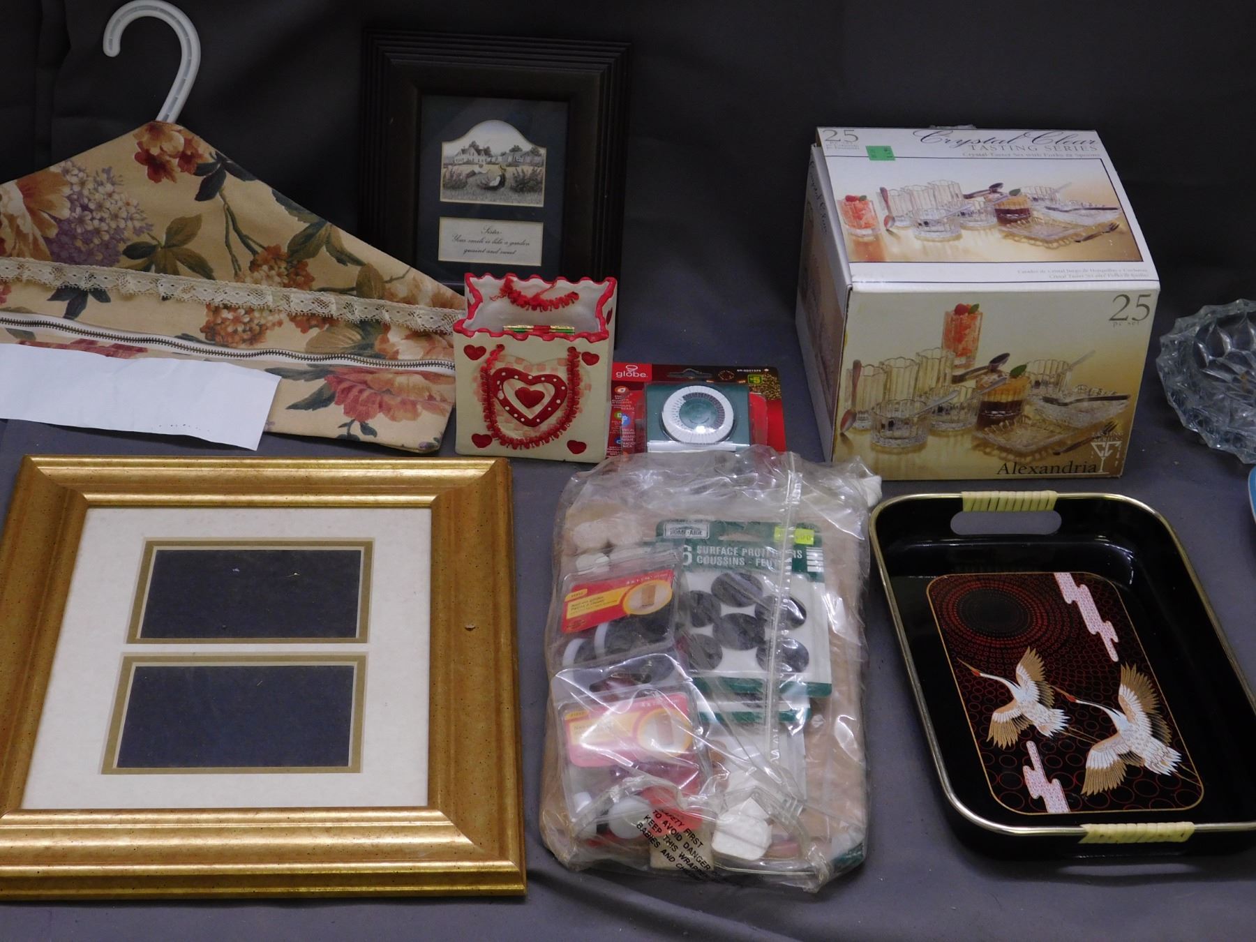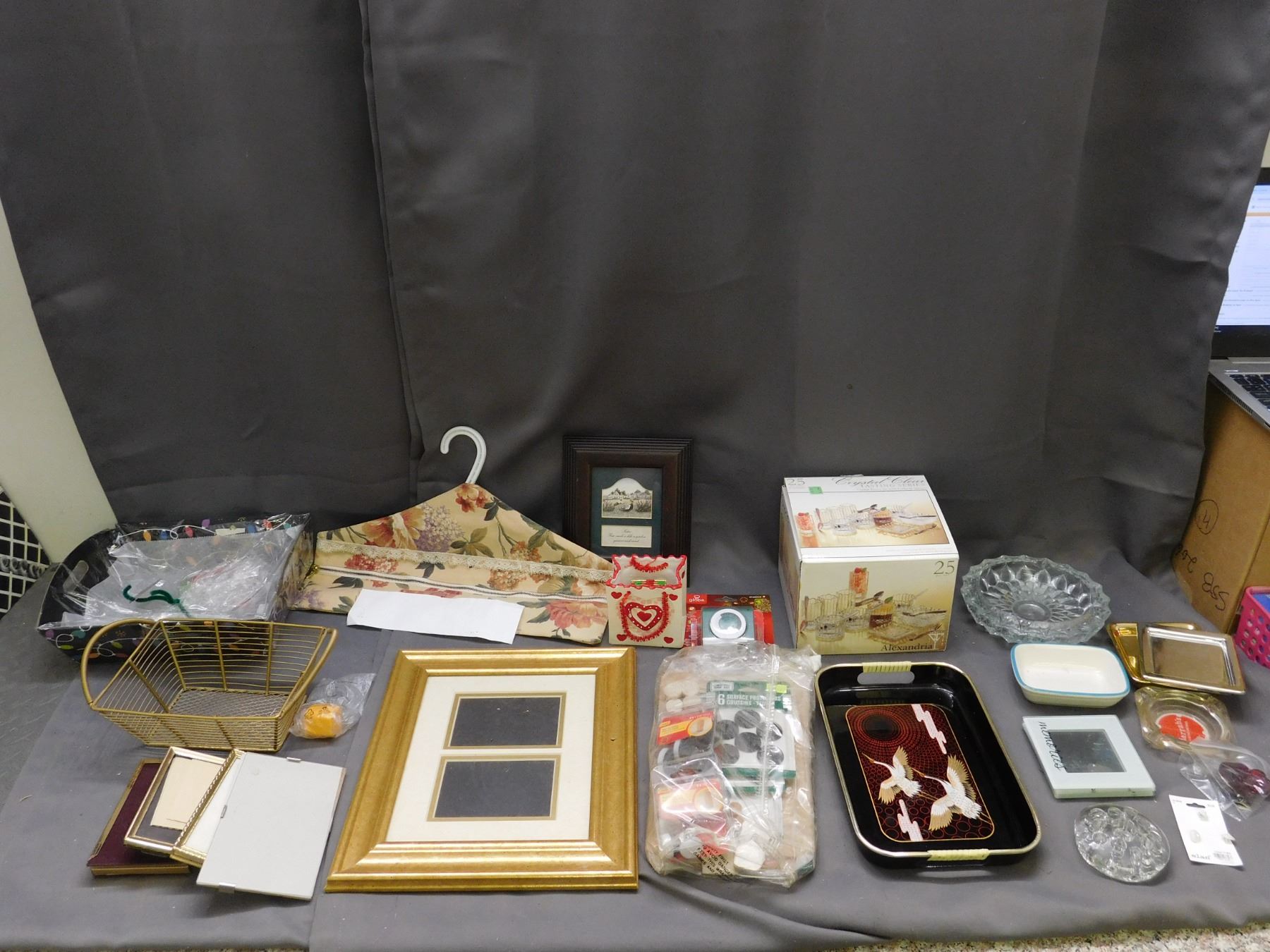 Lot of Assorted Household Trinket Trays, Picture Frames, Crystal Tasting Series Cups, Coasters, etc