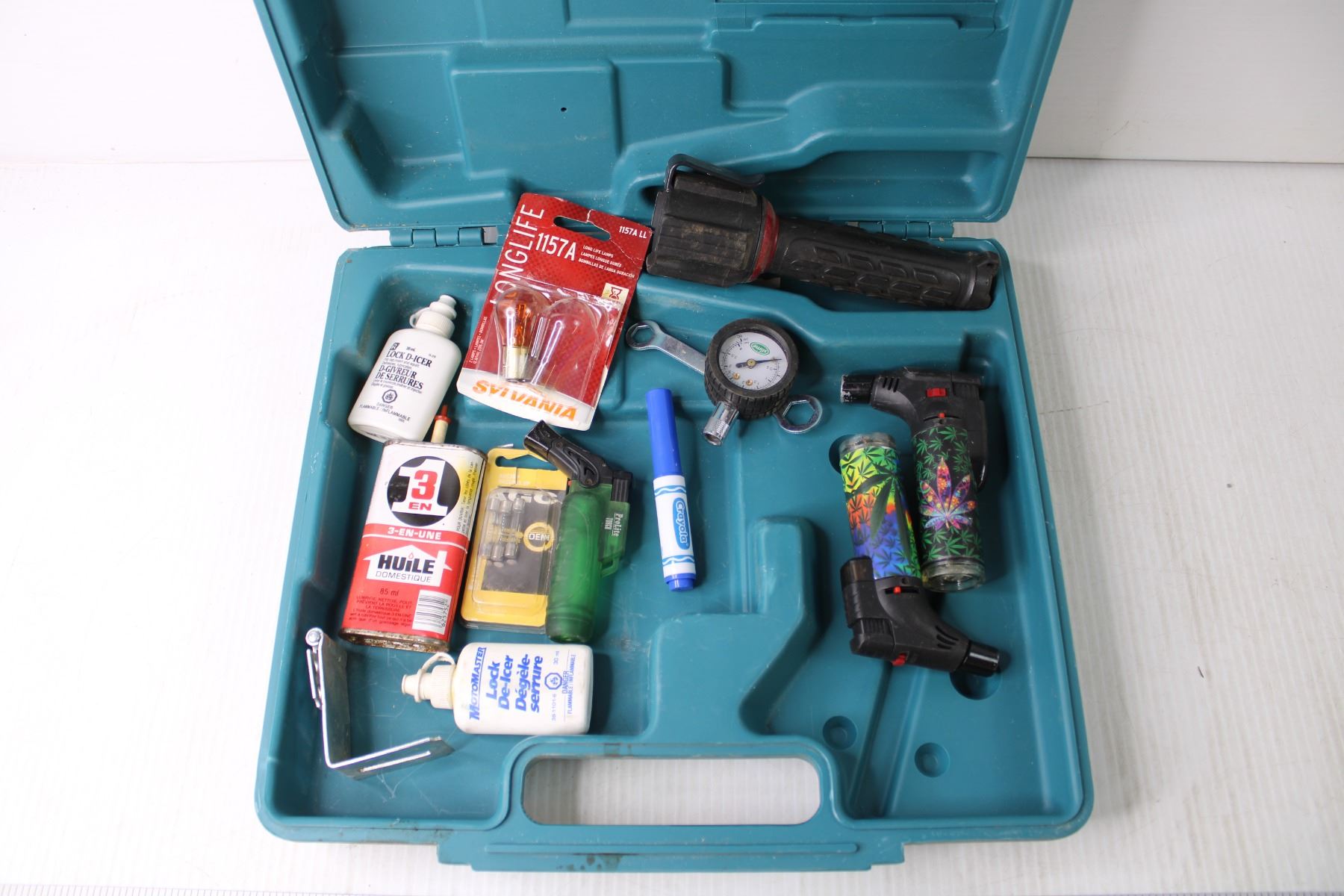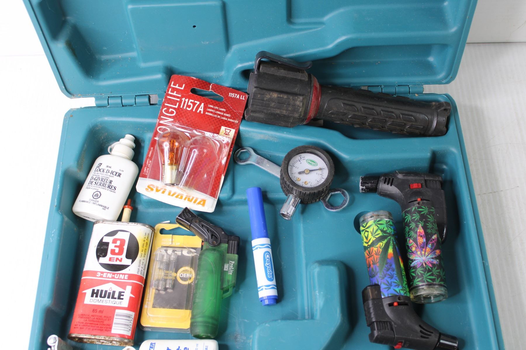 Lot of Assorted Items - Misc. Case, Lighters (Case is Missing One Clasp)
