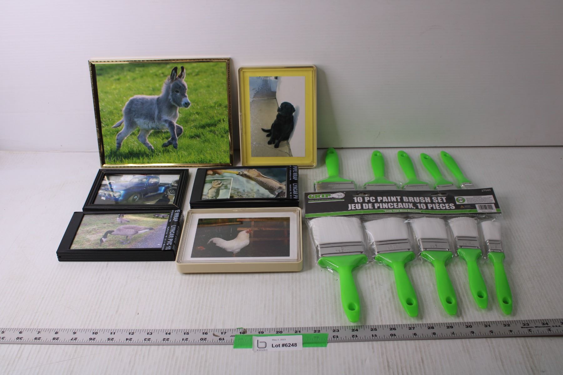 Lot of Assorted Items - Pictures in Frames, Paint Brushes