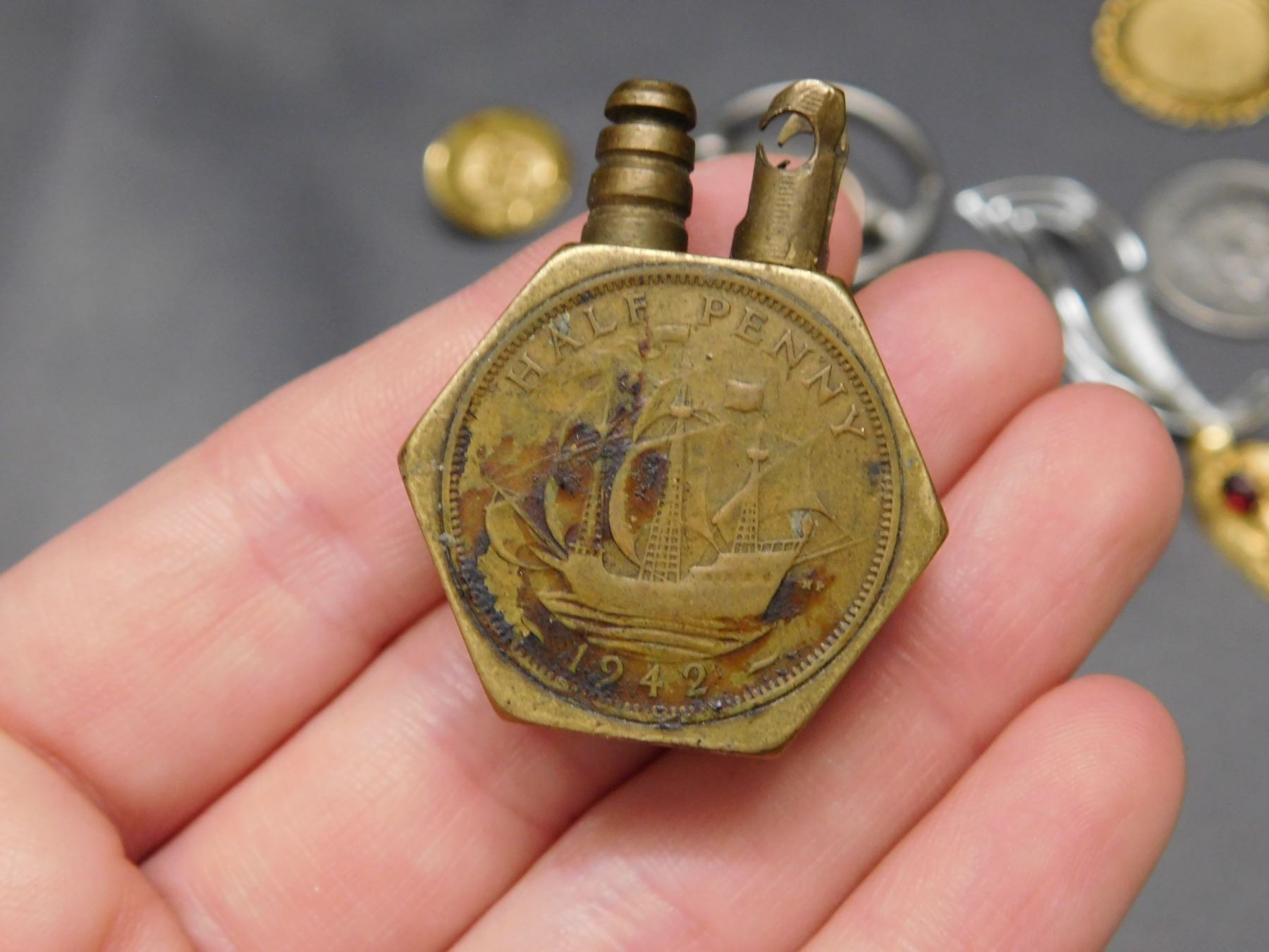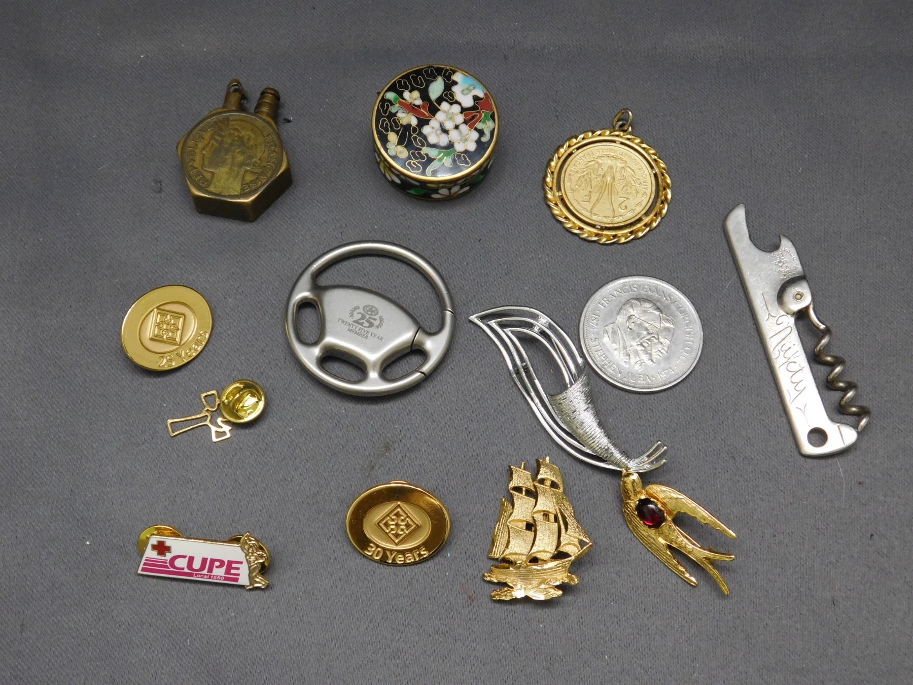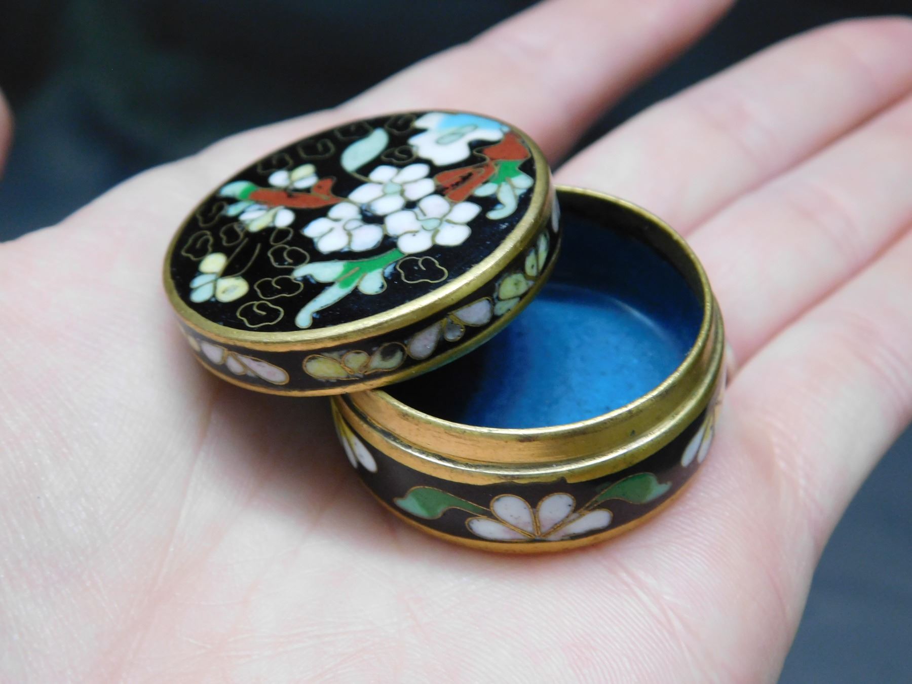 Lot of Assorted Knick Knacks, Cloisonné Trinket Box, Jewelry, Keychain, Etc