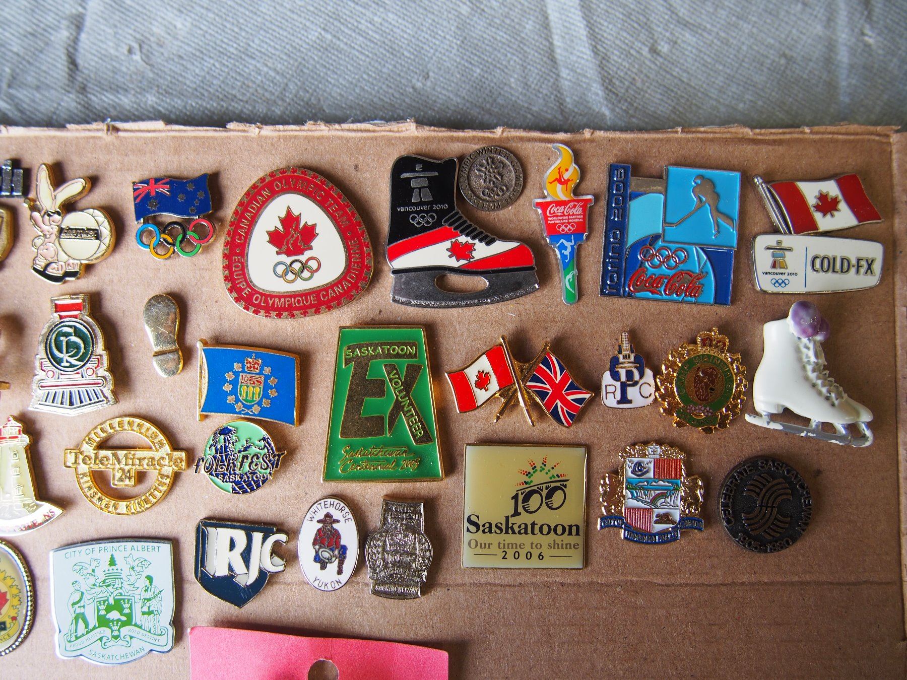 Lot of Assorted Lapel Pins including Case 1H, Calgary Stampede, Olympic, etc