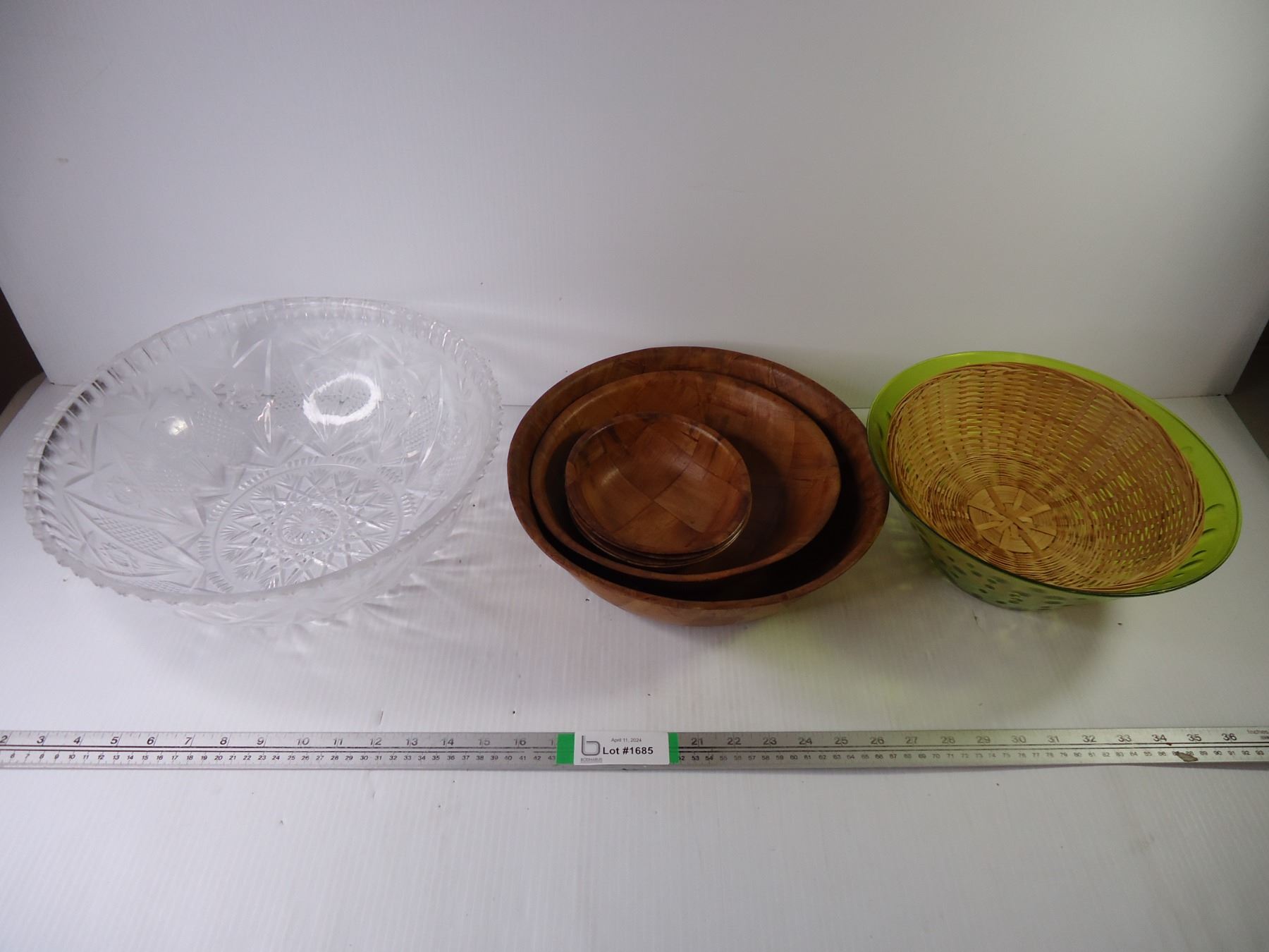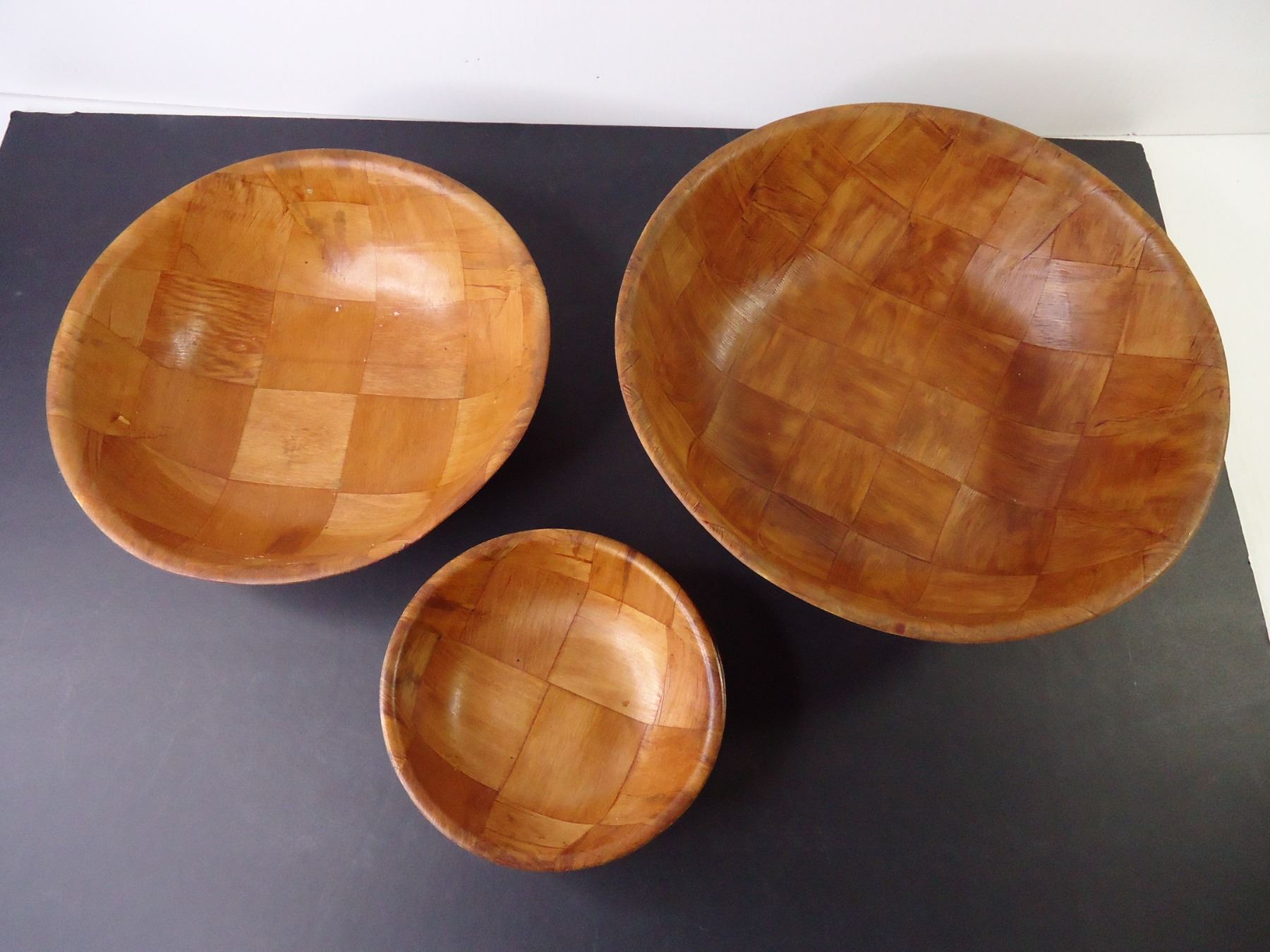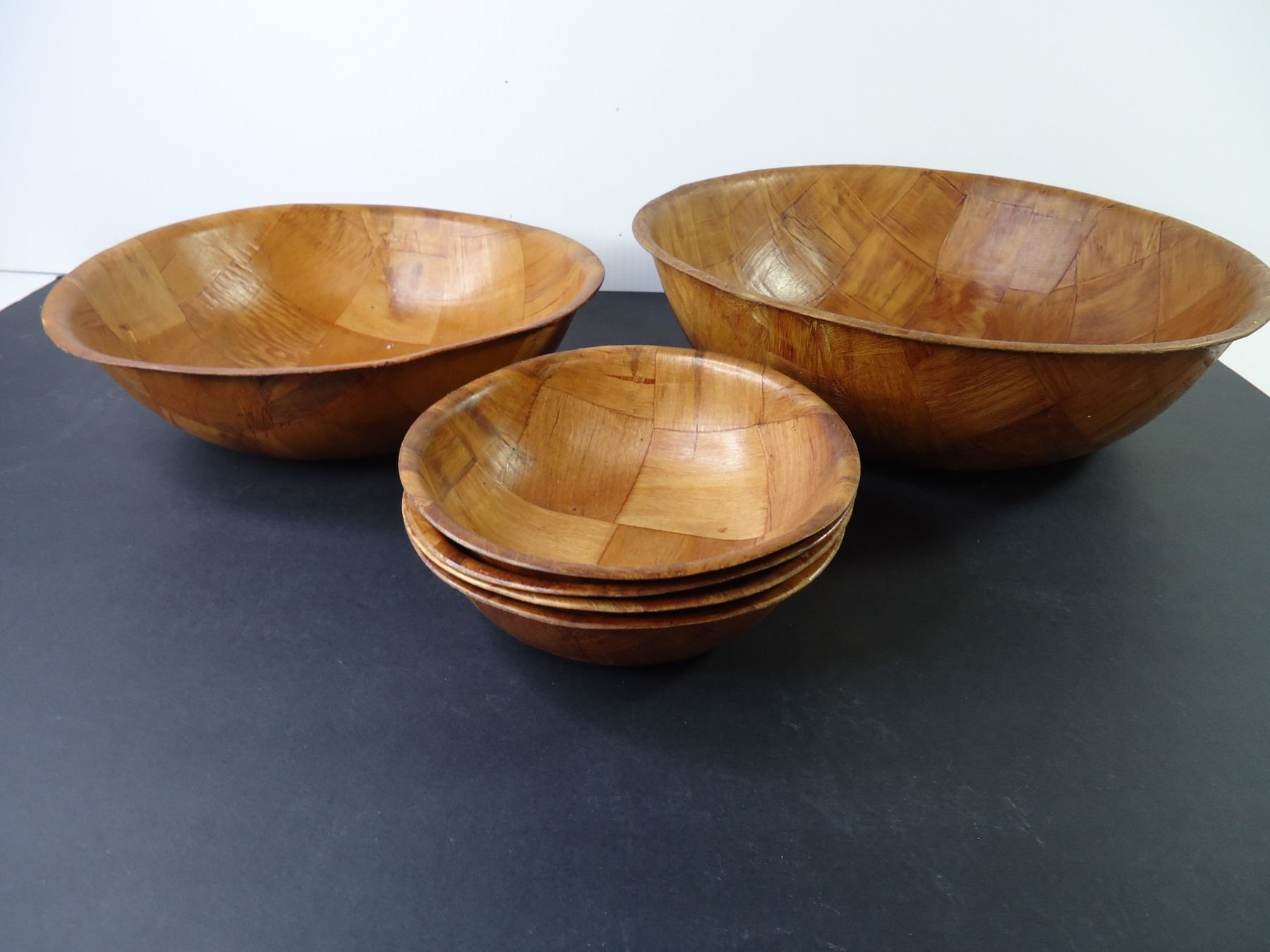 Lot of Assorted Plastic and Woven Wood Bowls