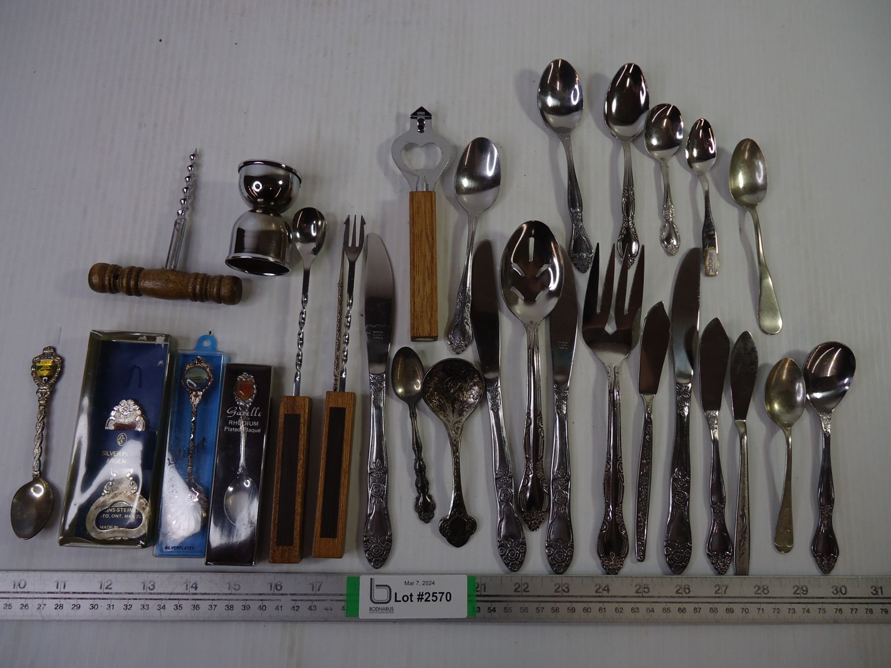 Lot of Assorted Silverware, Barware and Collector Spoons