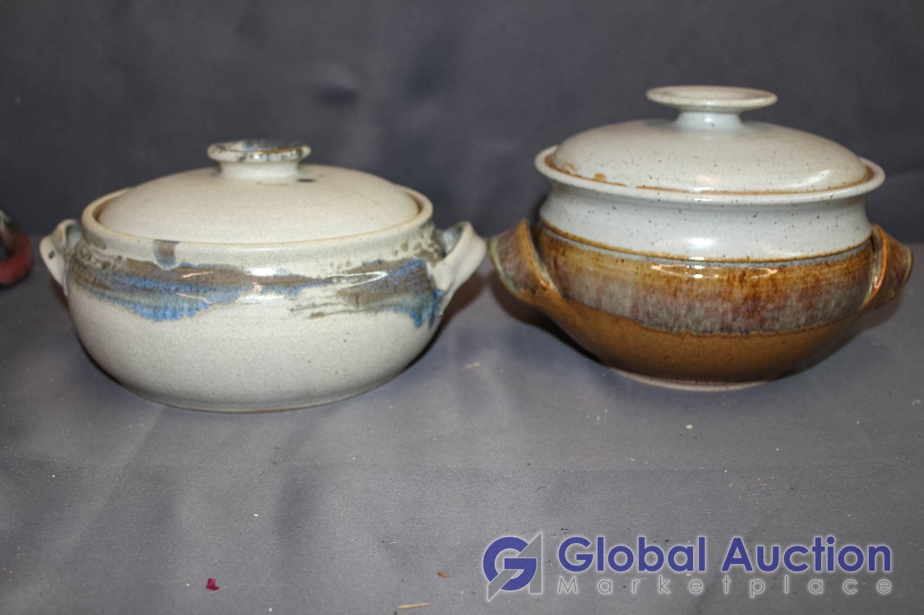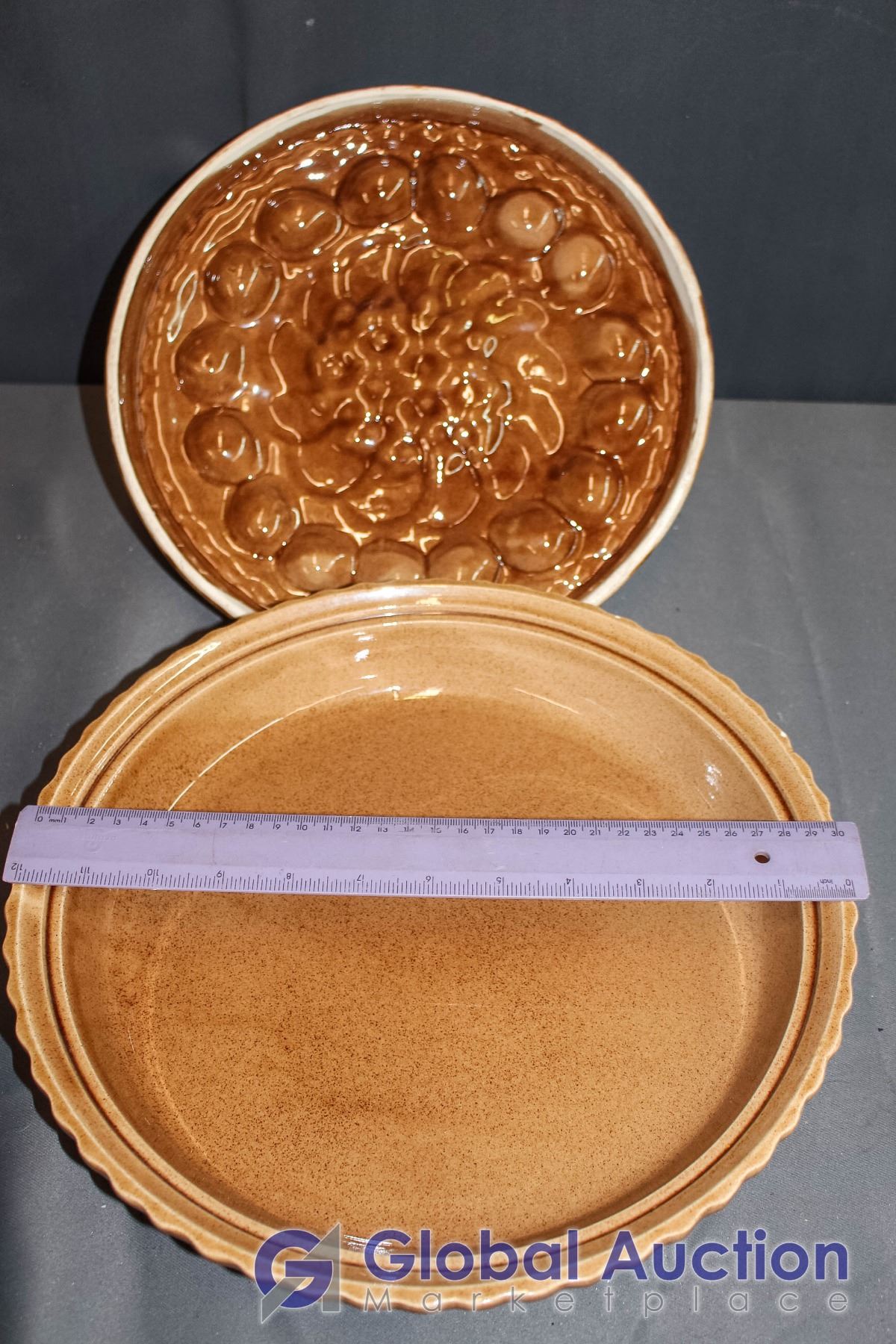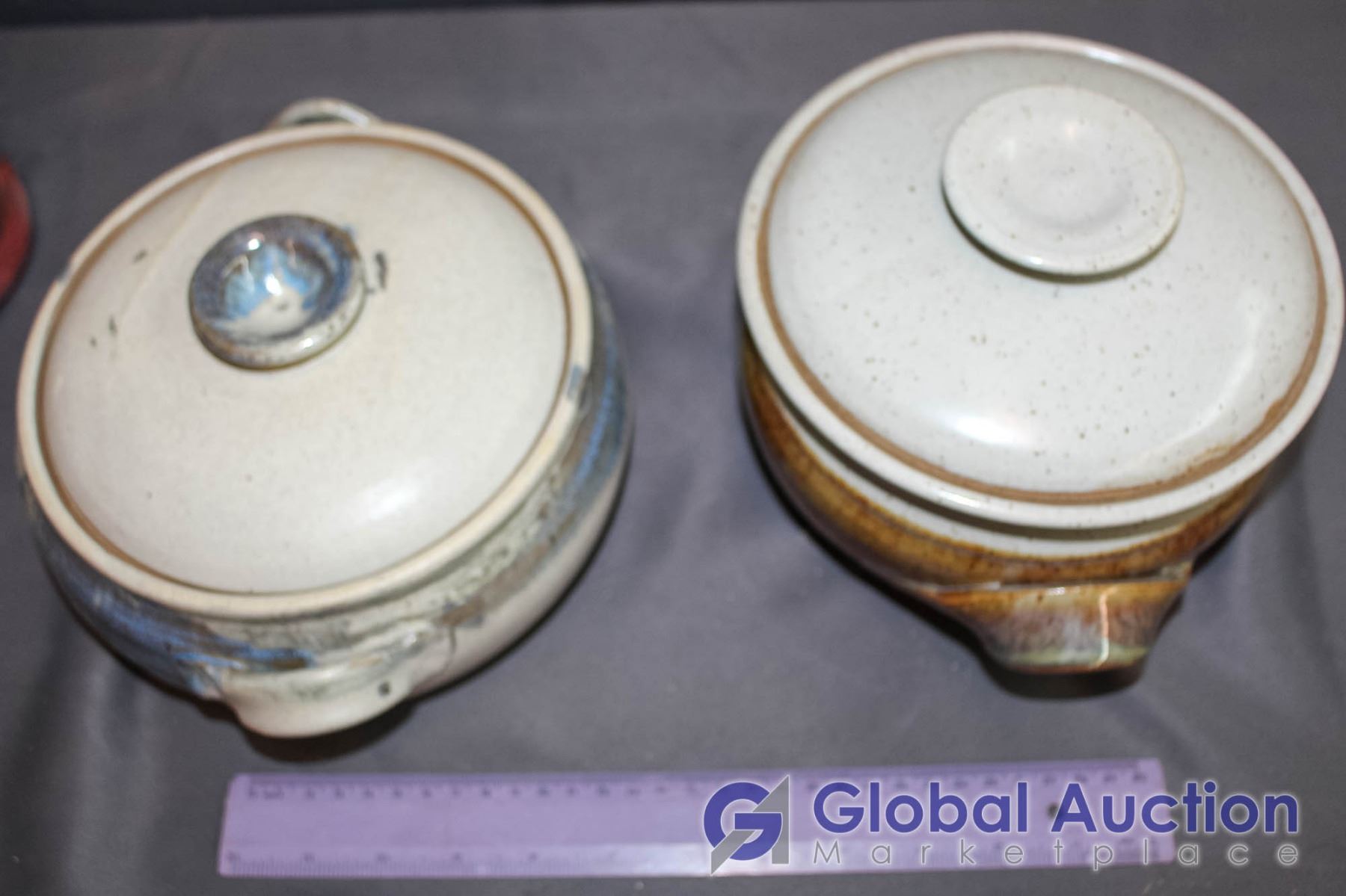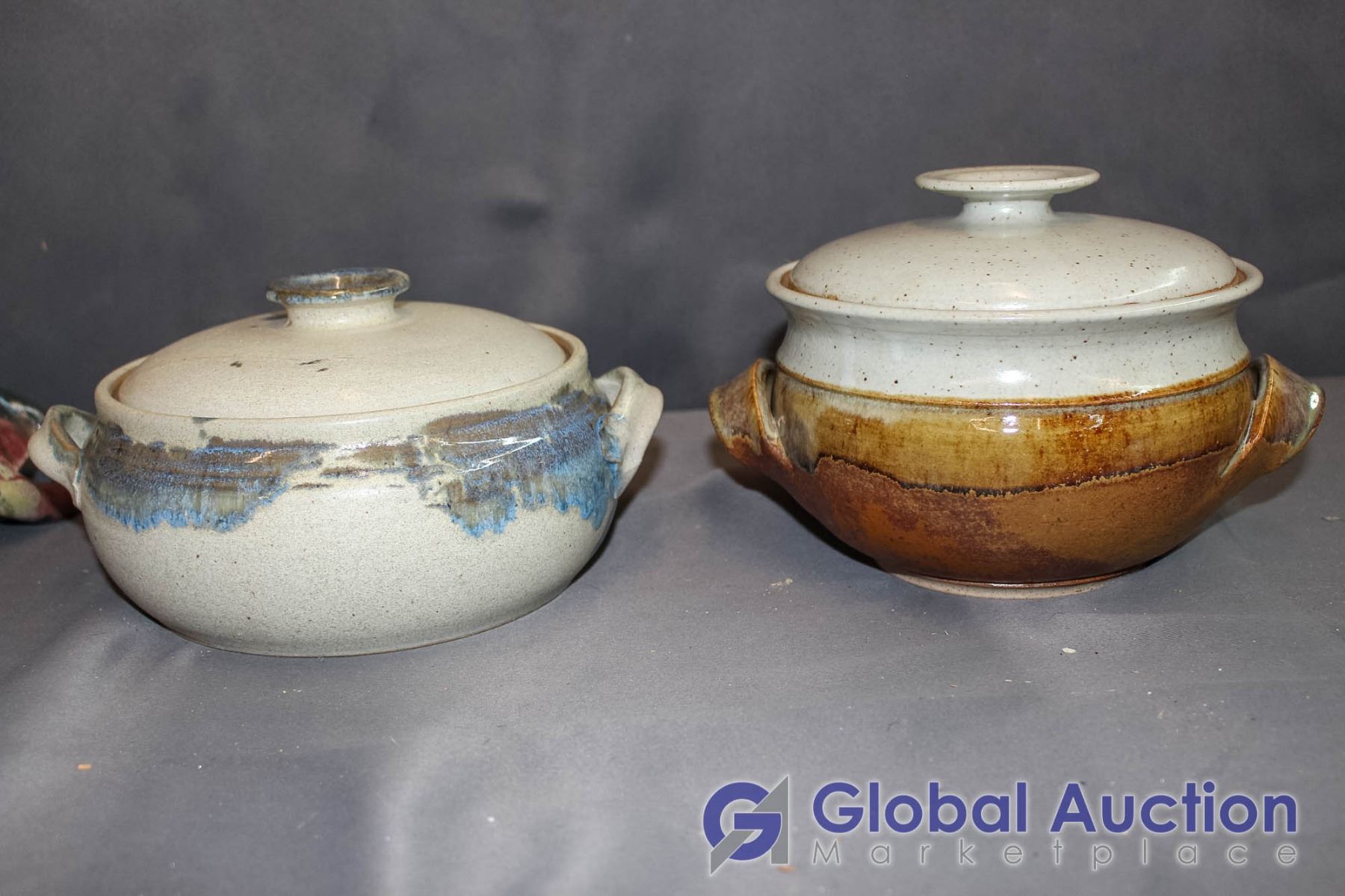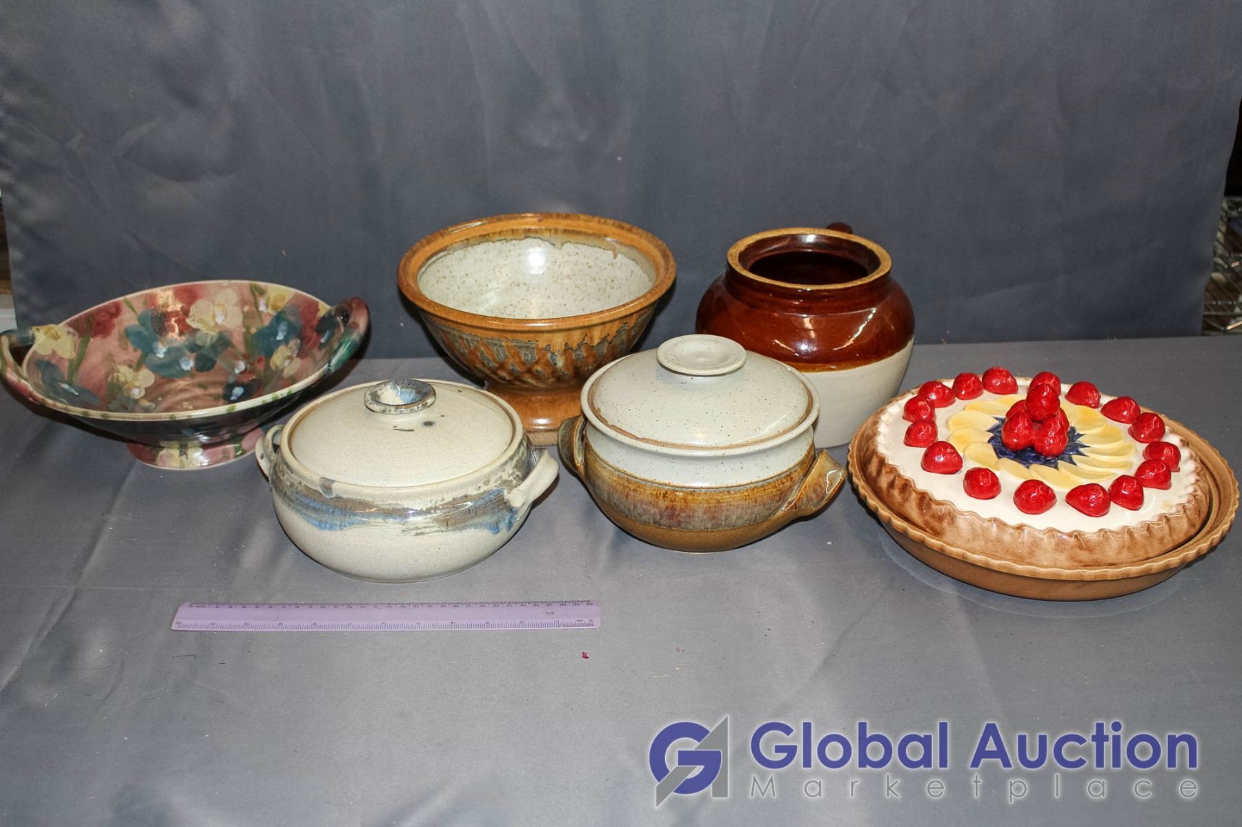 Lot of Assorted Stoneware - 2 Bowls, Bean Pot, 10" Pie Plate & Cover, 2 Pieces of Covered Crockware
