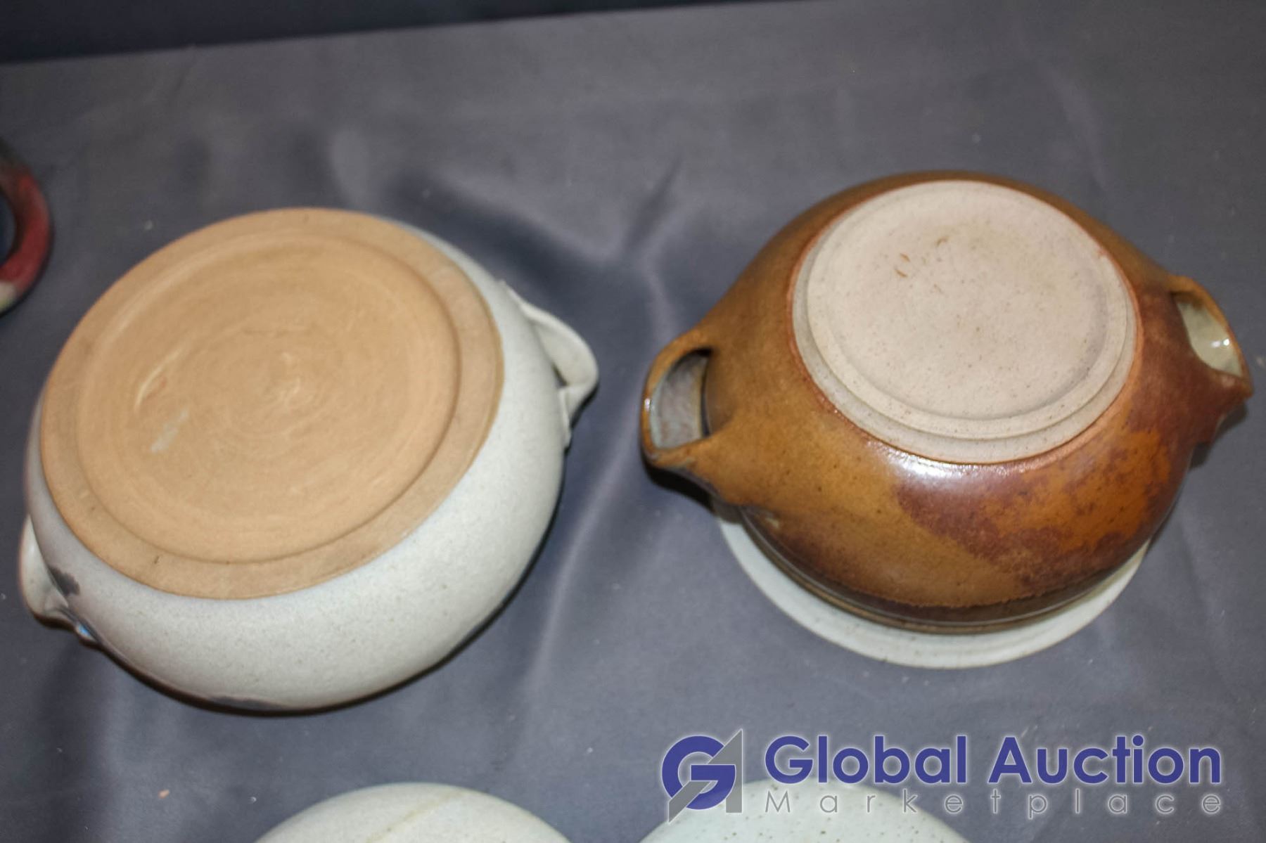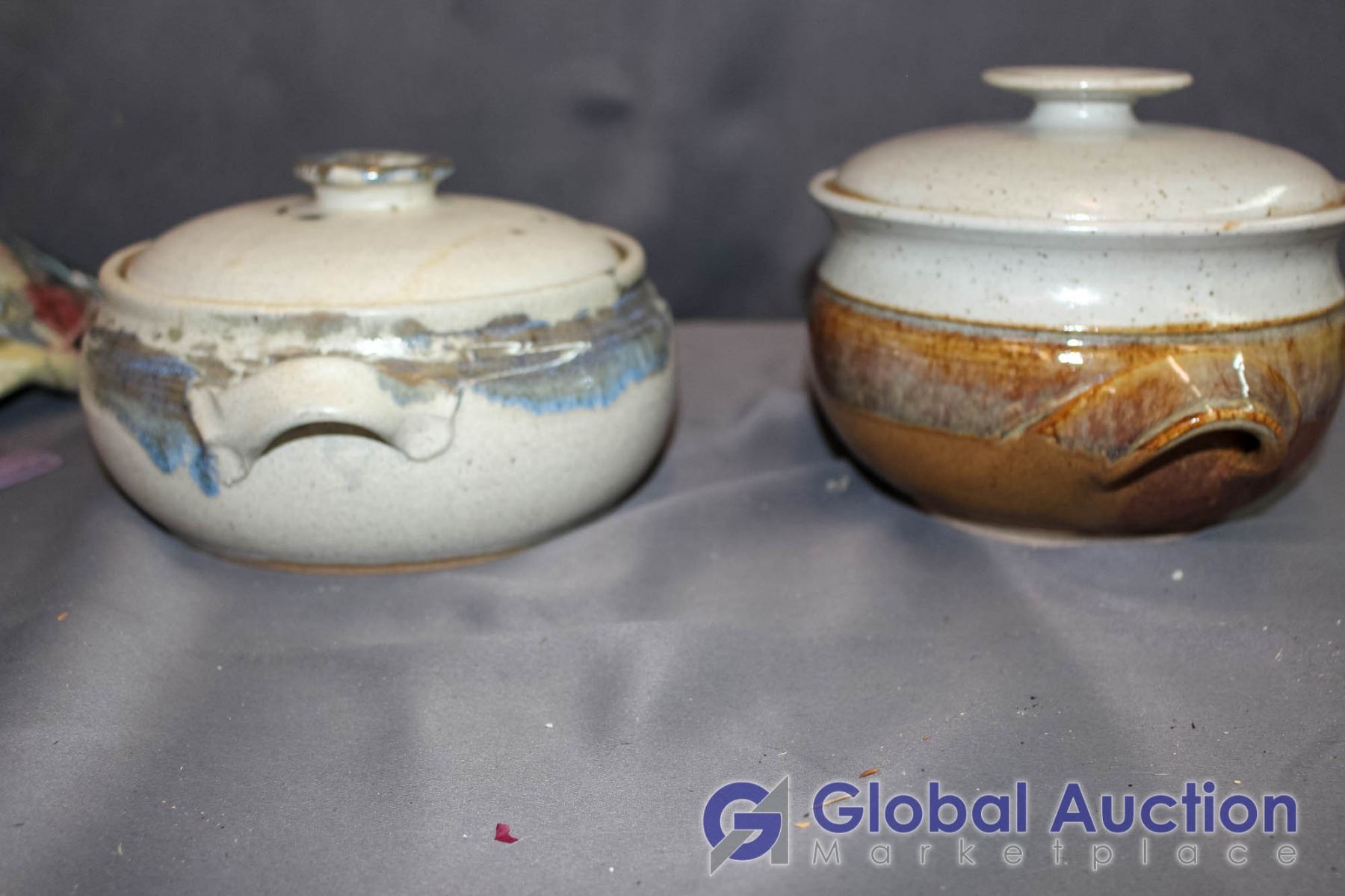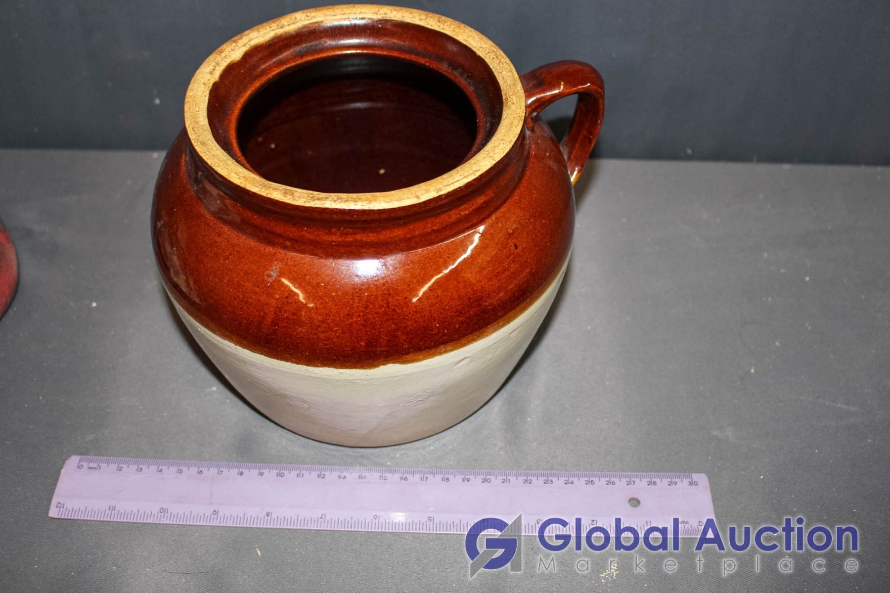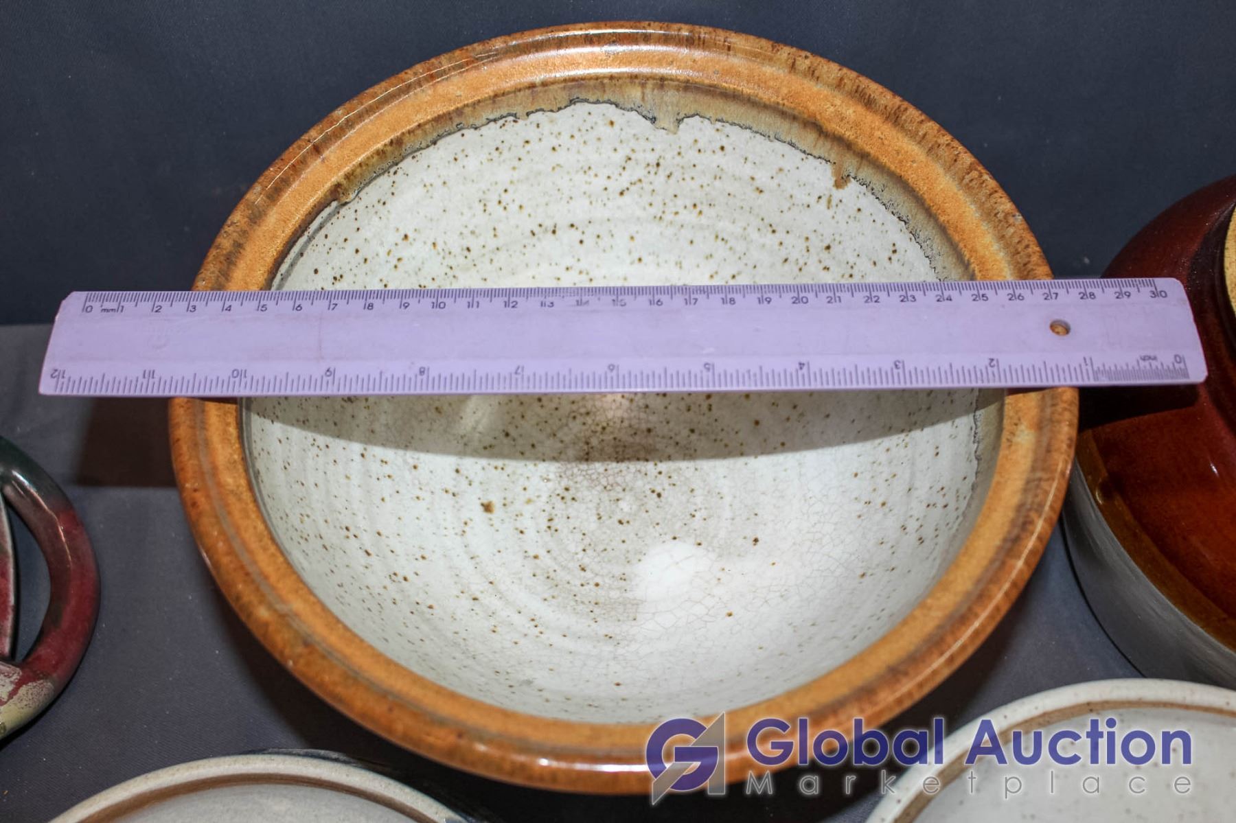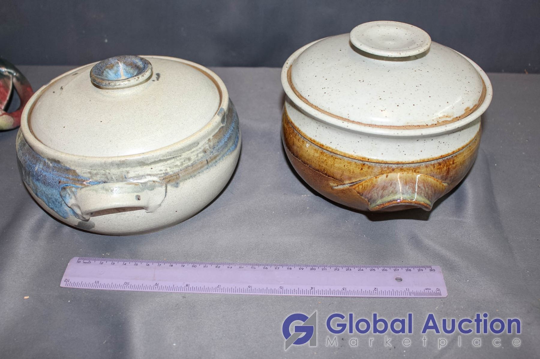 Lot of Assorted Stoneware - 2 Bowls, Bean Pot, 10" Pie Plate & Cover, 2 Pieces of Covered Crockware