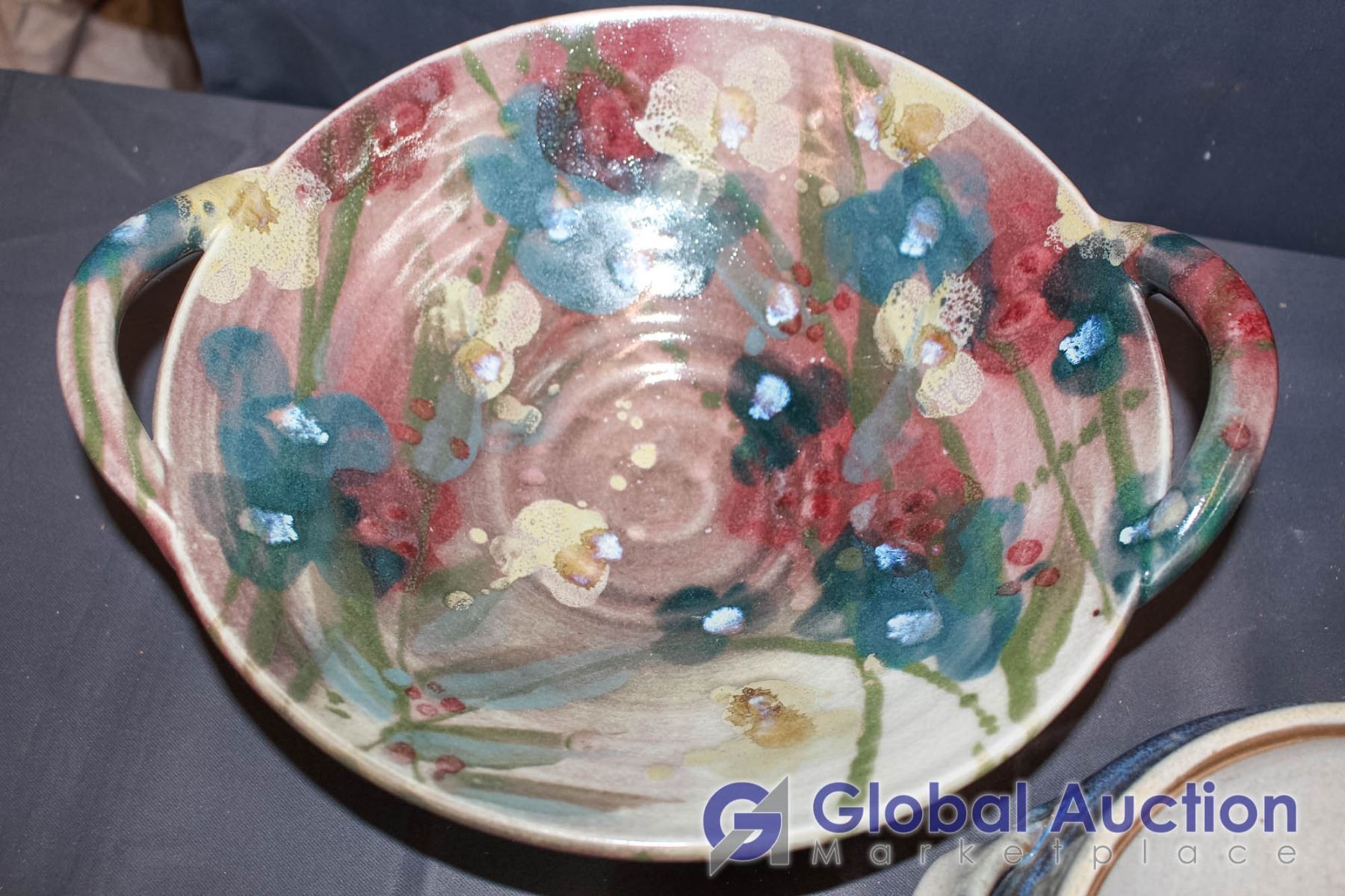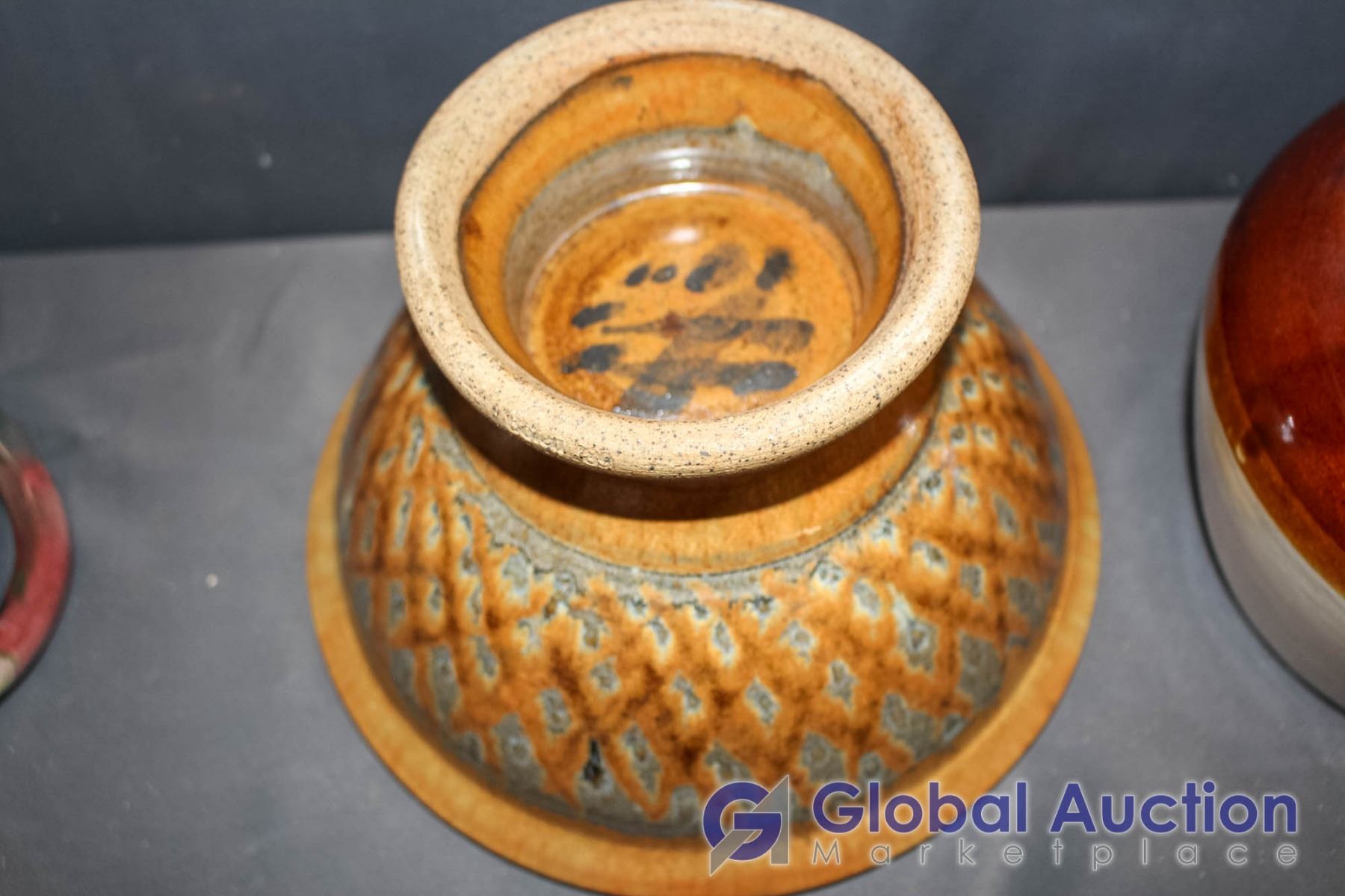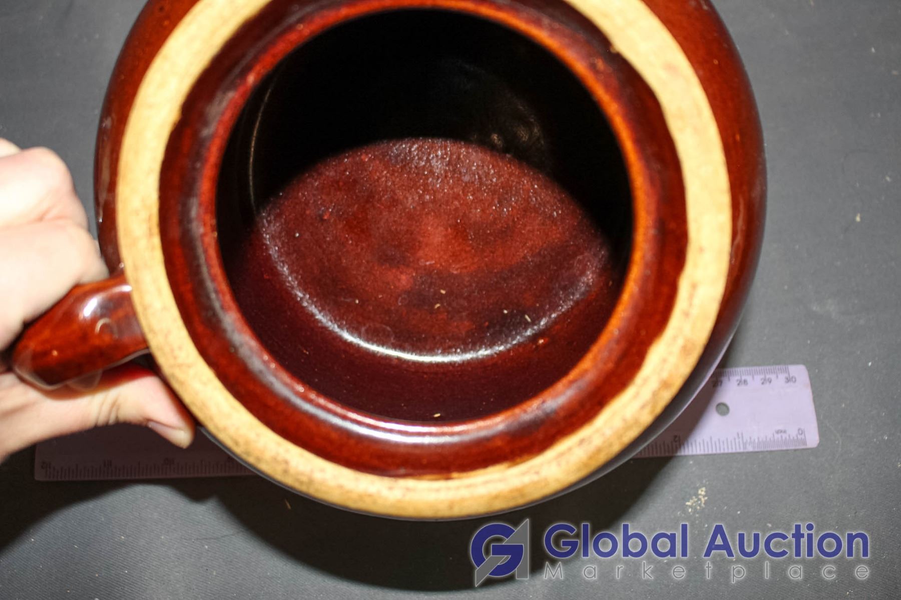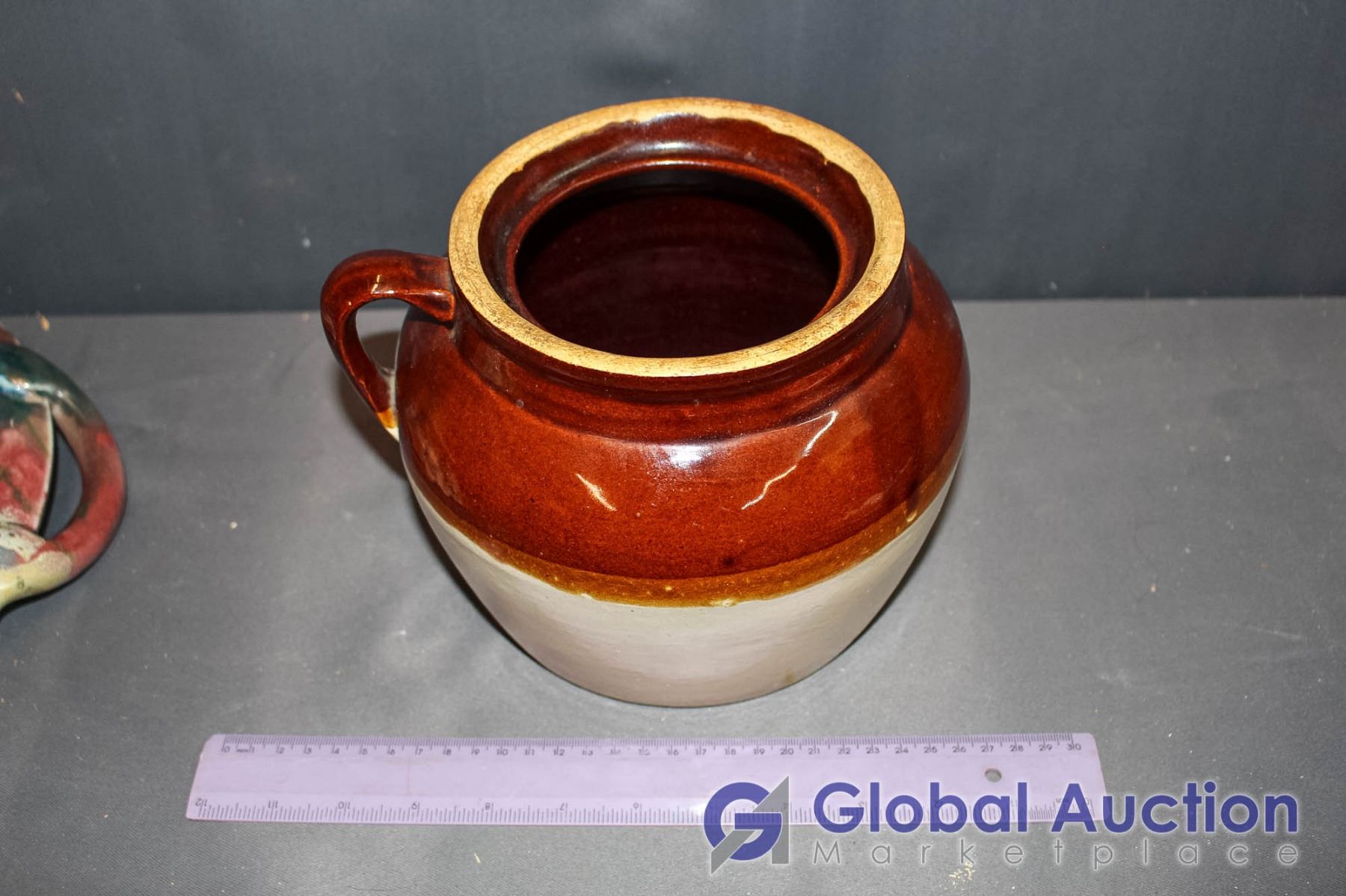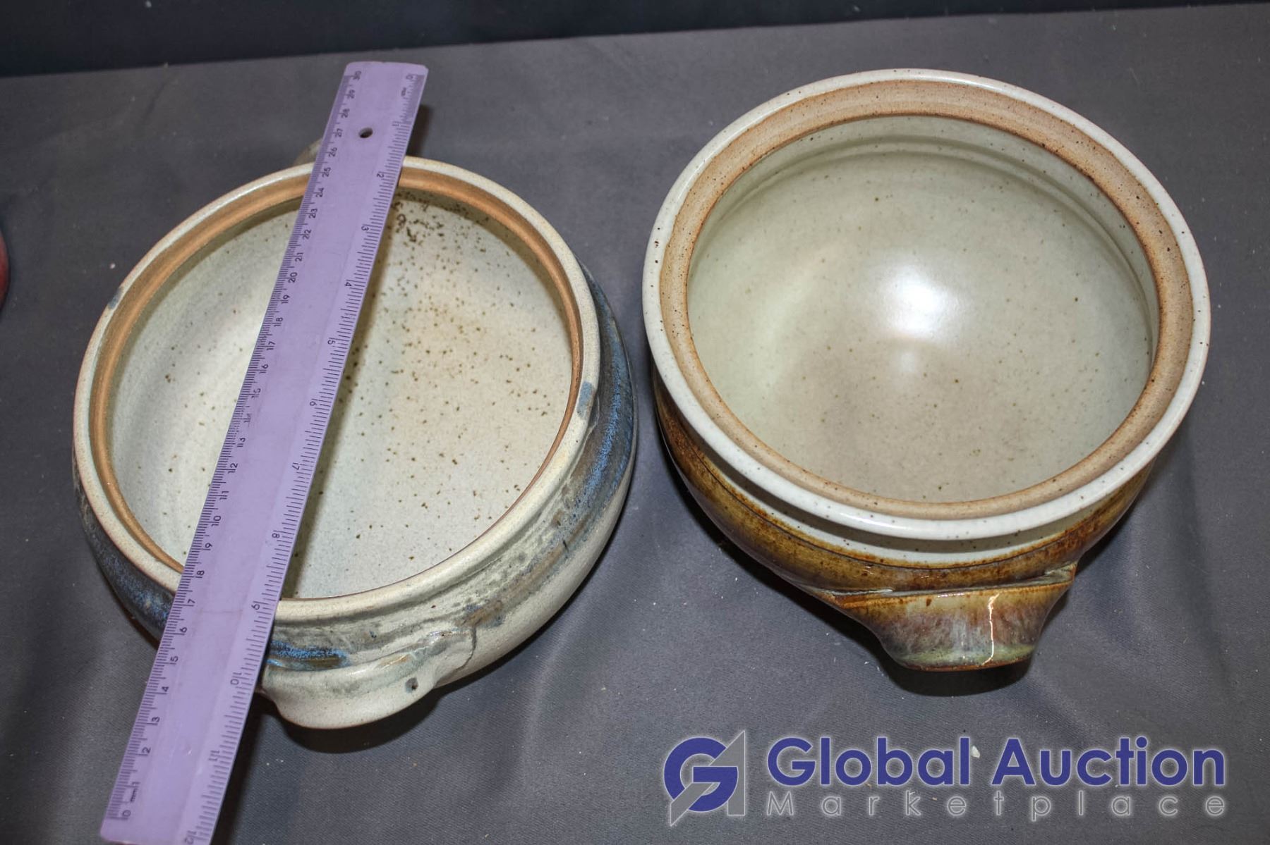 Lot of Assorted Stoneware - 2 Bowls, Bean Pot, 10" Pie Plate & Cover, 2 Pieces of Covered Crockware