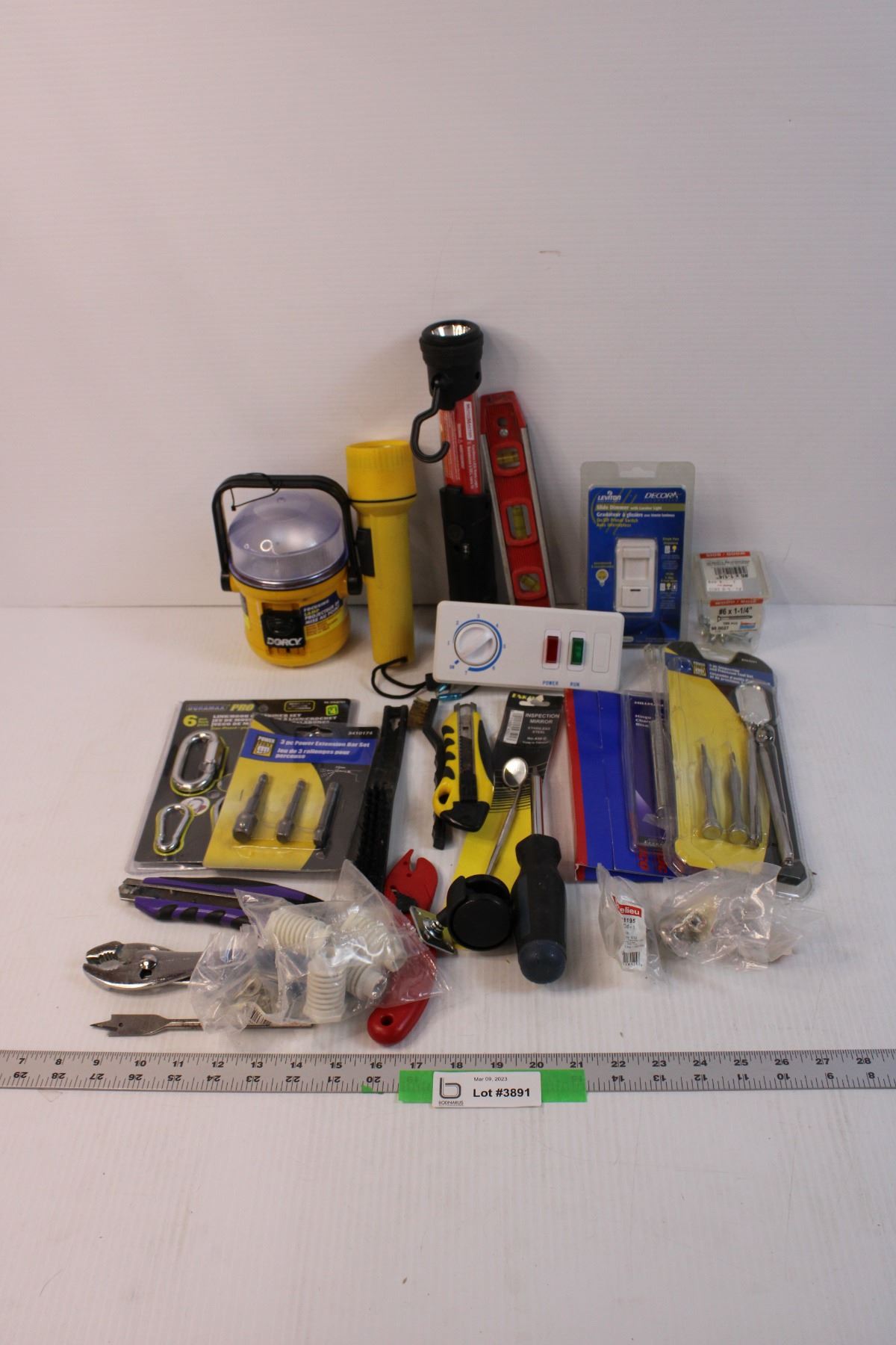 Lot of Assorted Tools and Hardware - Flash Lights, Tool Set, Misc.