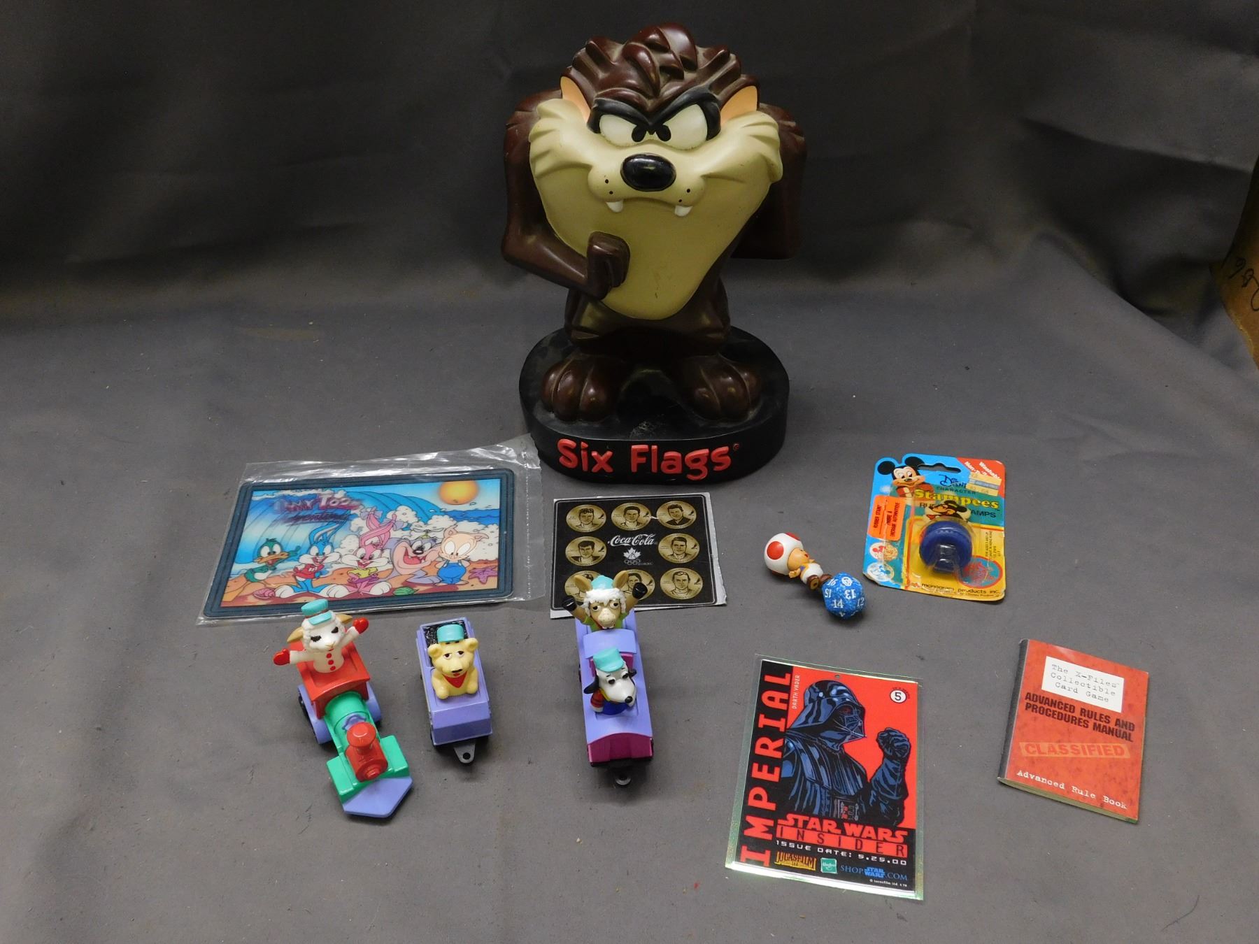 Lot of Assorted Toys Tazmanian Devil Six Flags, Coca Cola, Looney Tunes, Mickey Mouse, Star Wars