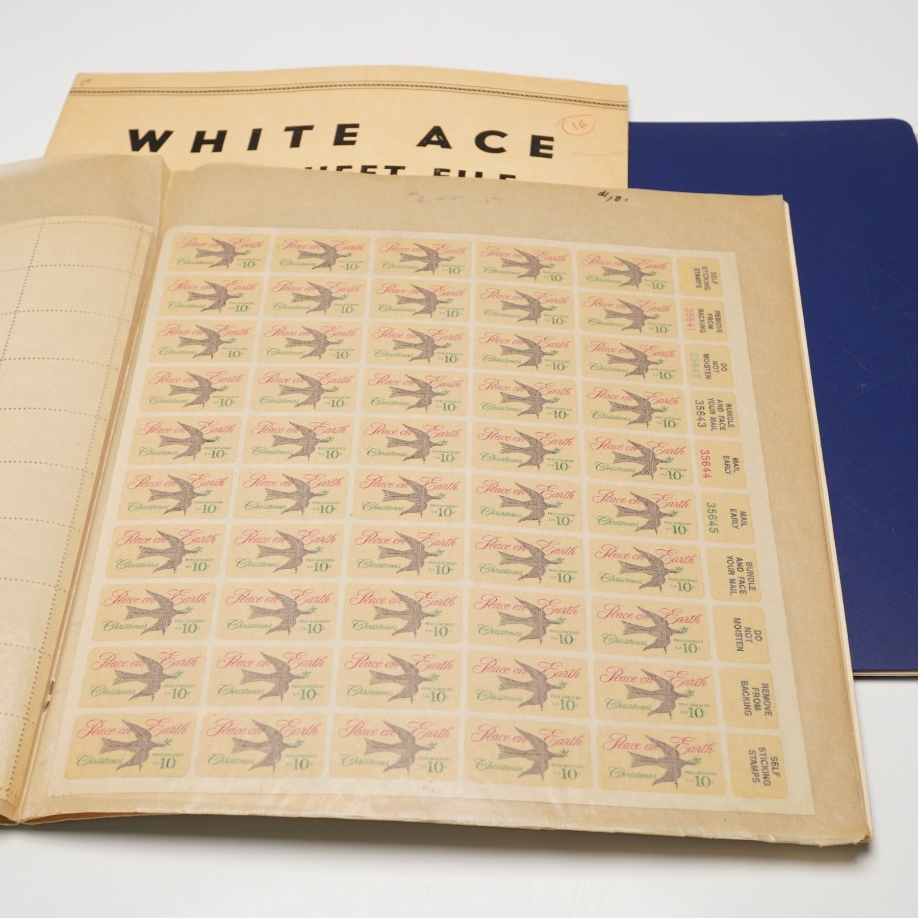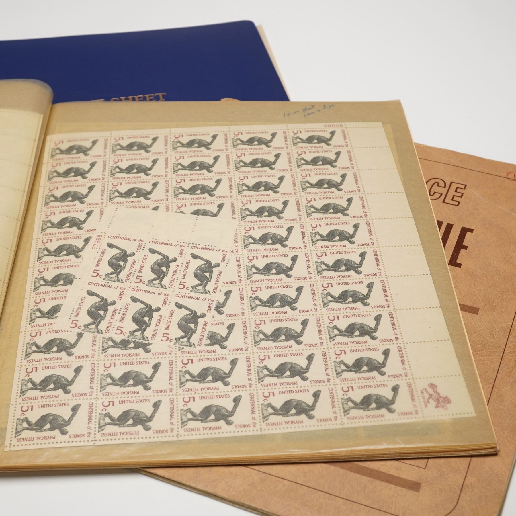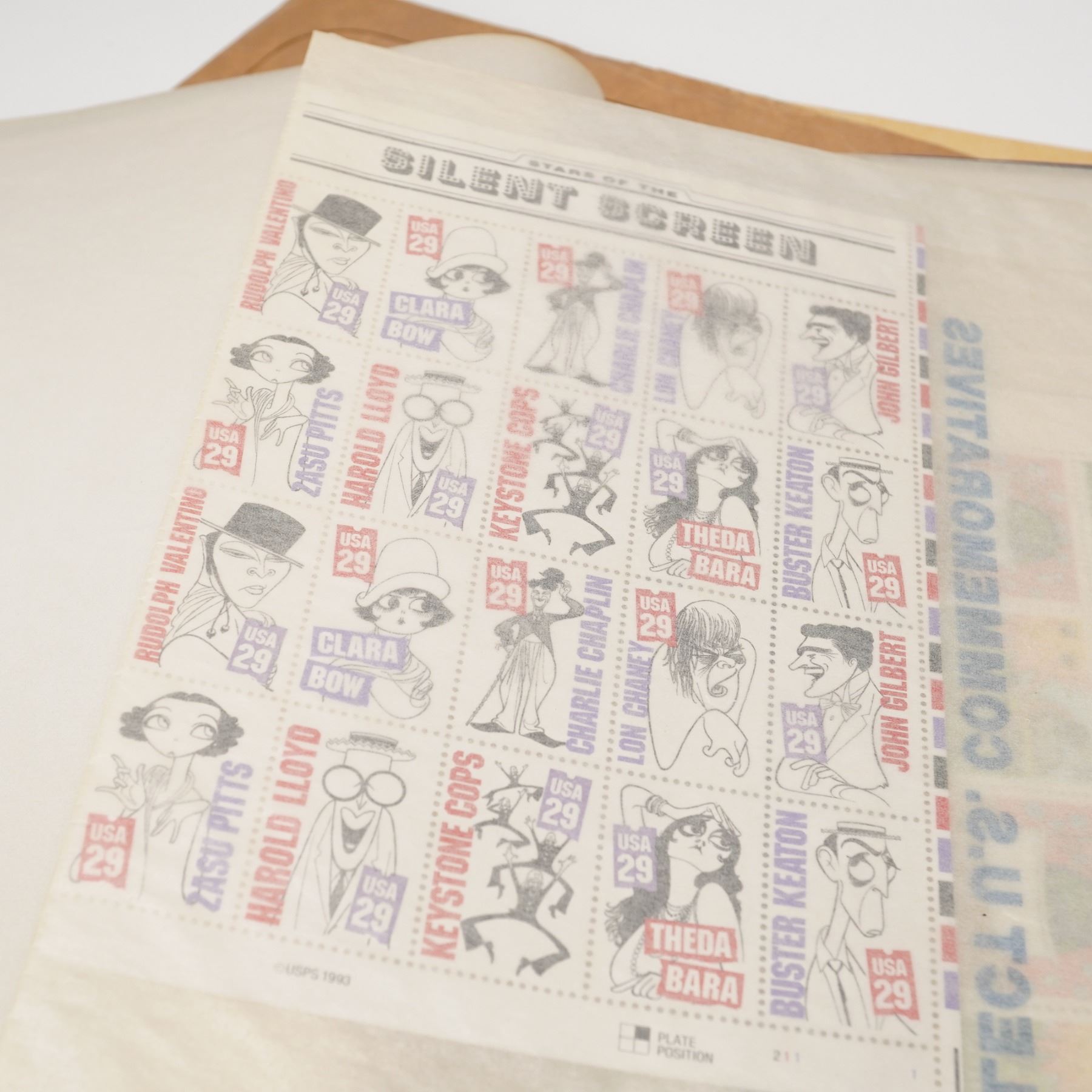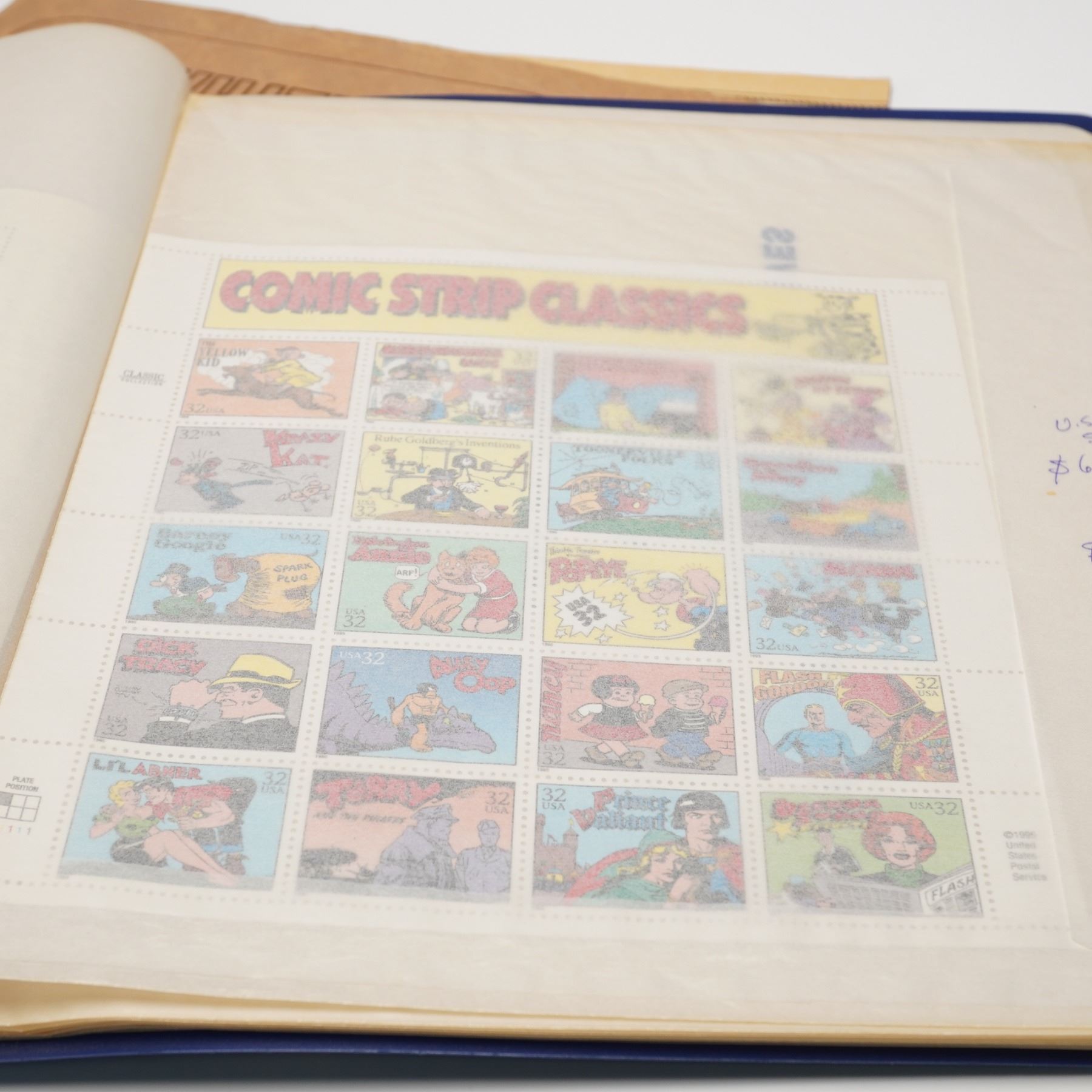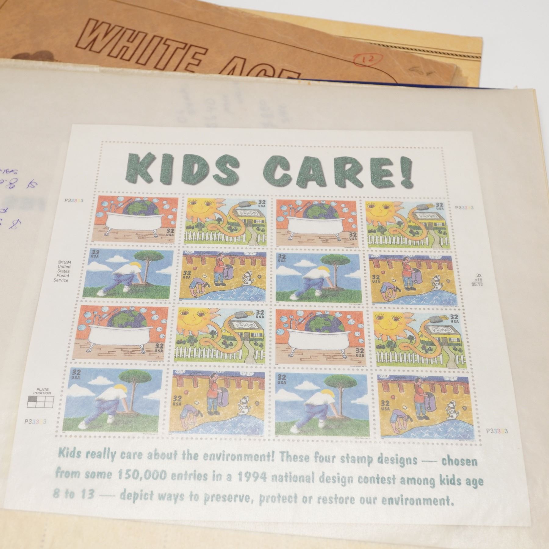 Collection of assorted U.S. stamp sheets housed in three mint sheet files. Features issues such as 5-cent Centennial of the Special Olympics, 10-cent Peace on Earth Christmas, 1993 Silent Screen Stars, 1995 Comic Strip Classics, and 1994 Kids Care! environmental series.