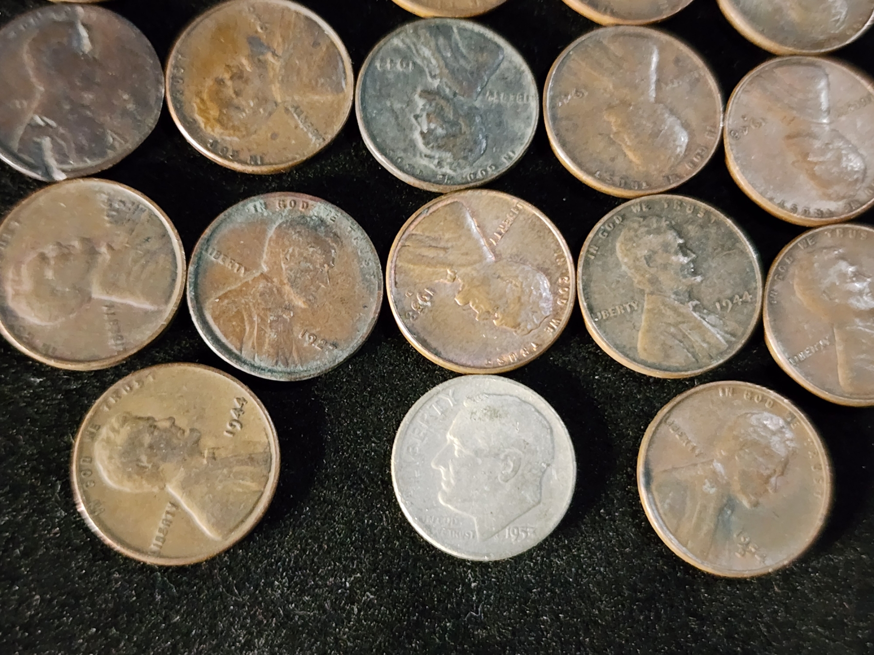 Lot of Assorted US Collectible Coins Ft. 1 Silver Dime & 3 Wartime Silver Nickels Along With 22 Wheat Pennies! TOTAL FACE VALUE = $0.47