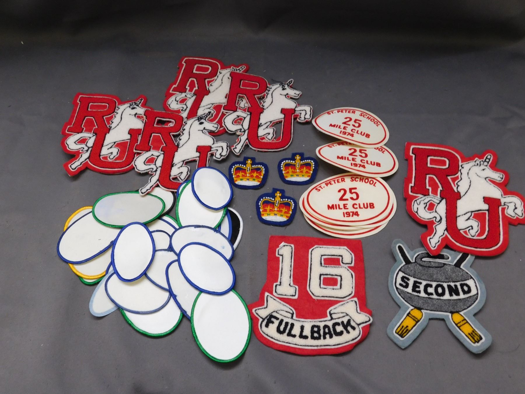 Lot of Assorted Varsity / School Patches, Curling, Mile Club, Blank, Crowns