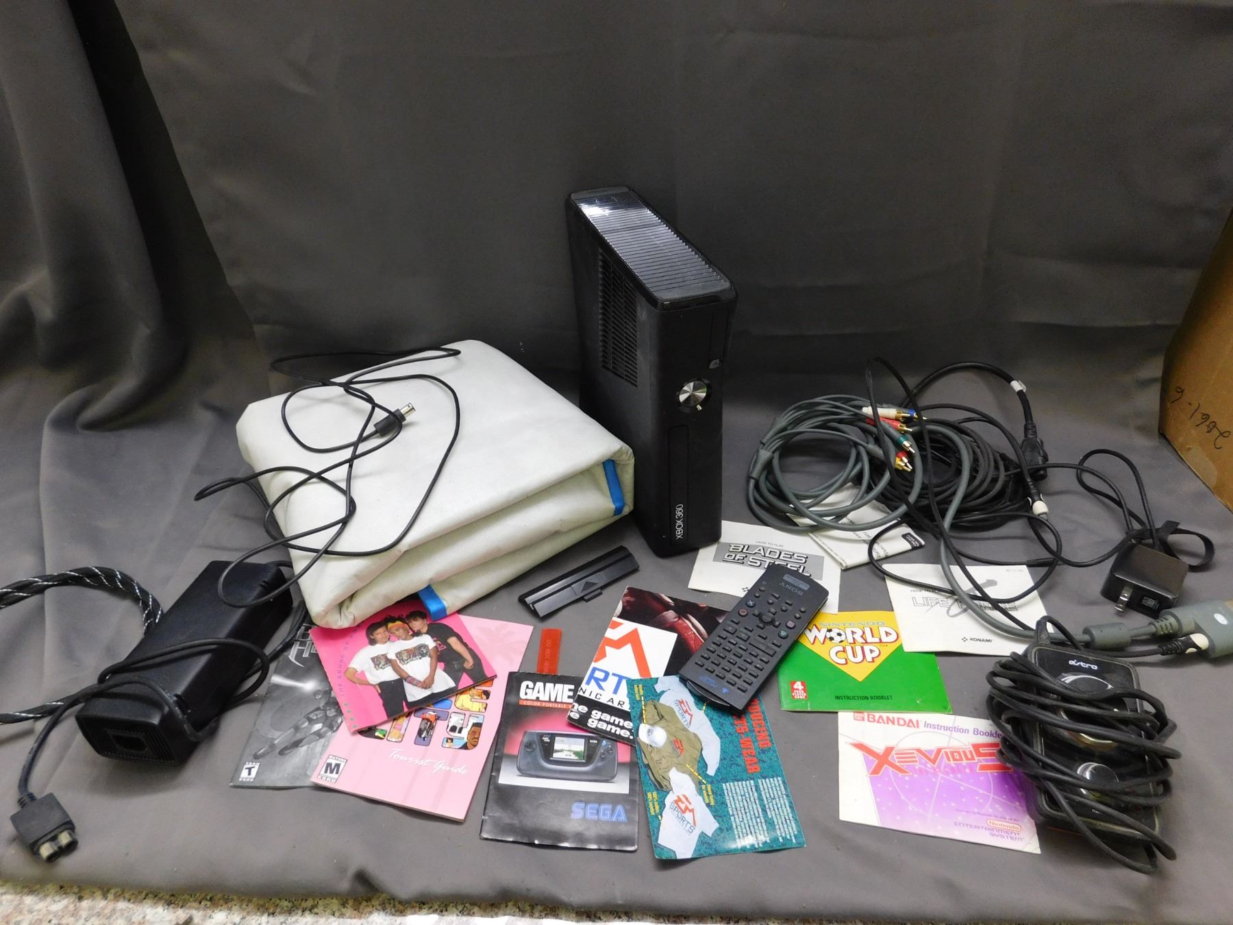 Lot of Assorted Video Game Related Manuals, Xbox 360 Slim Console, Power, Video, Remote, Misc