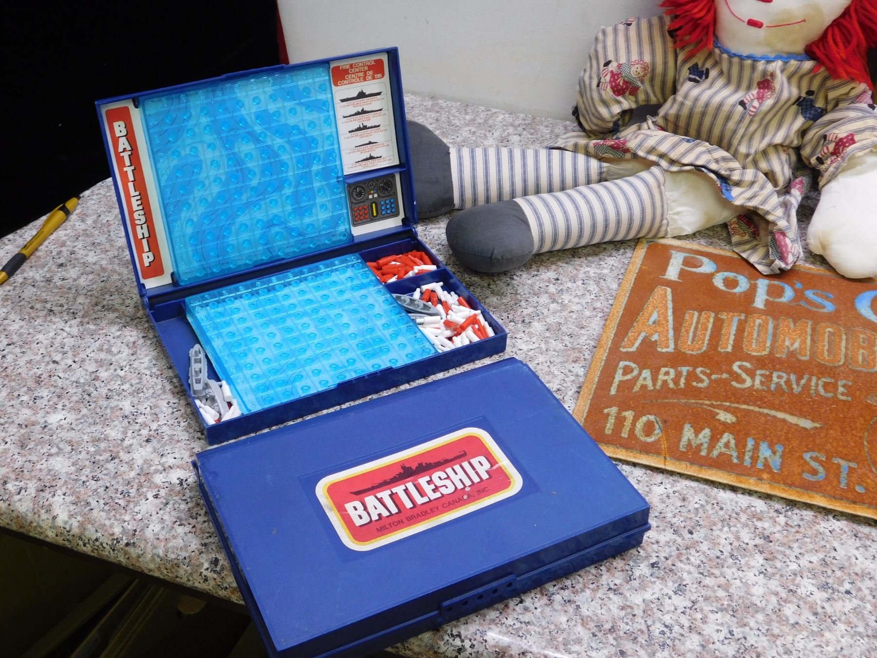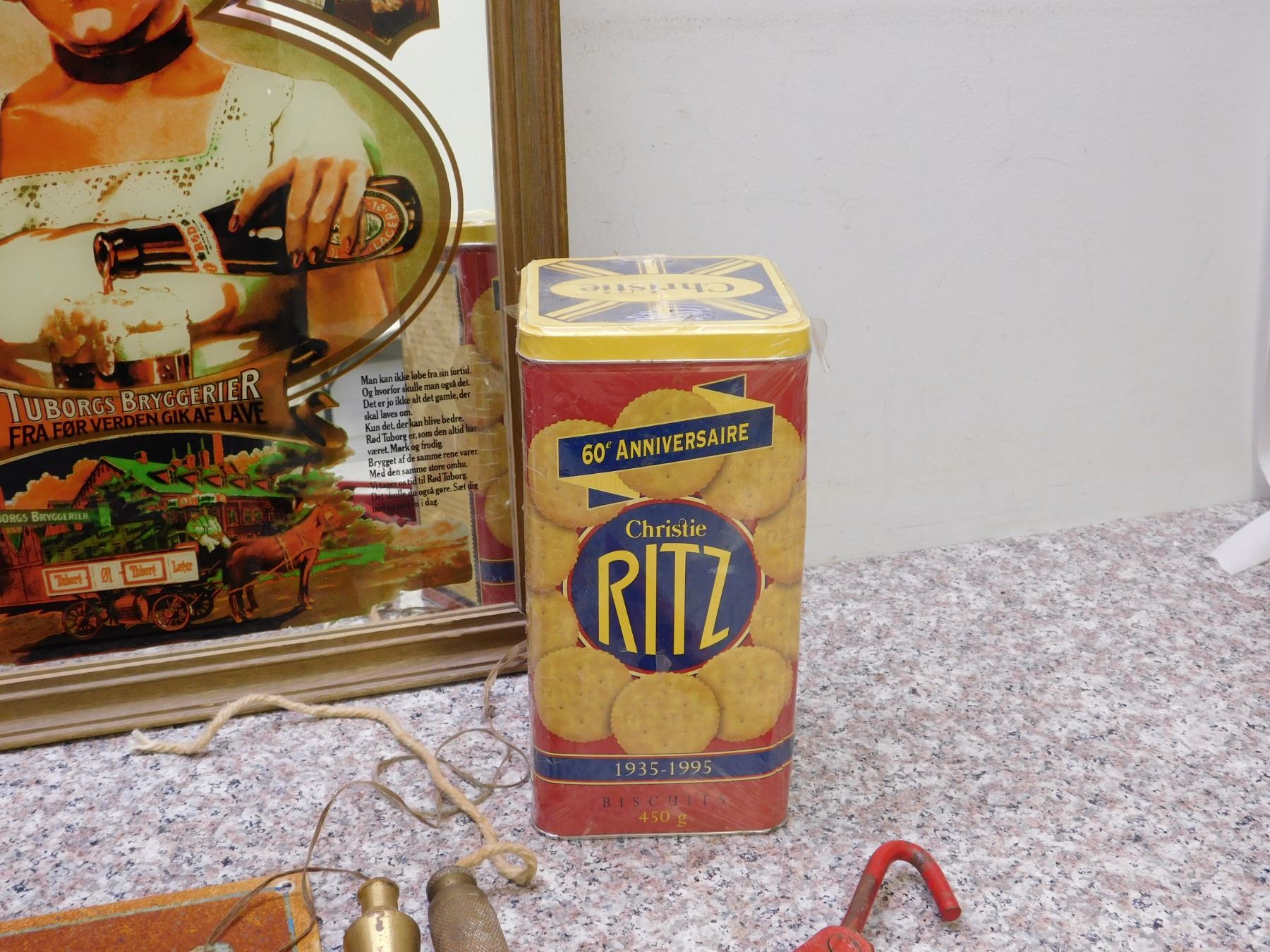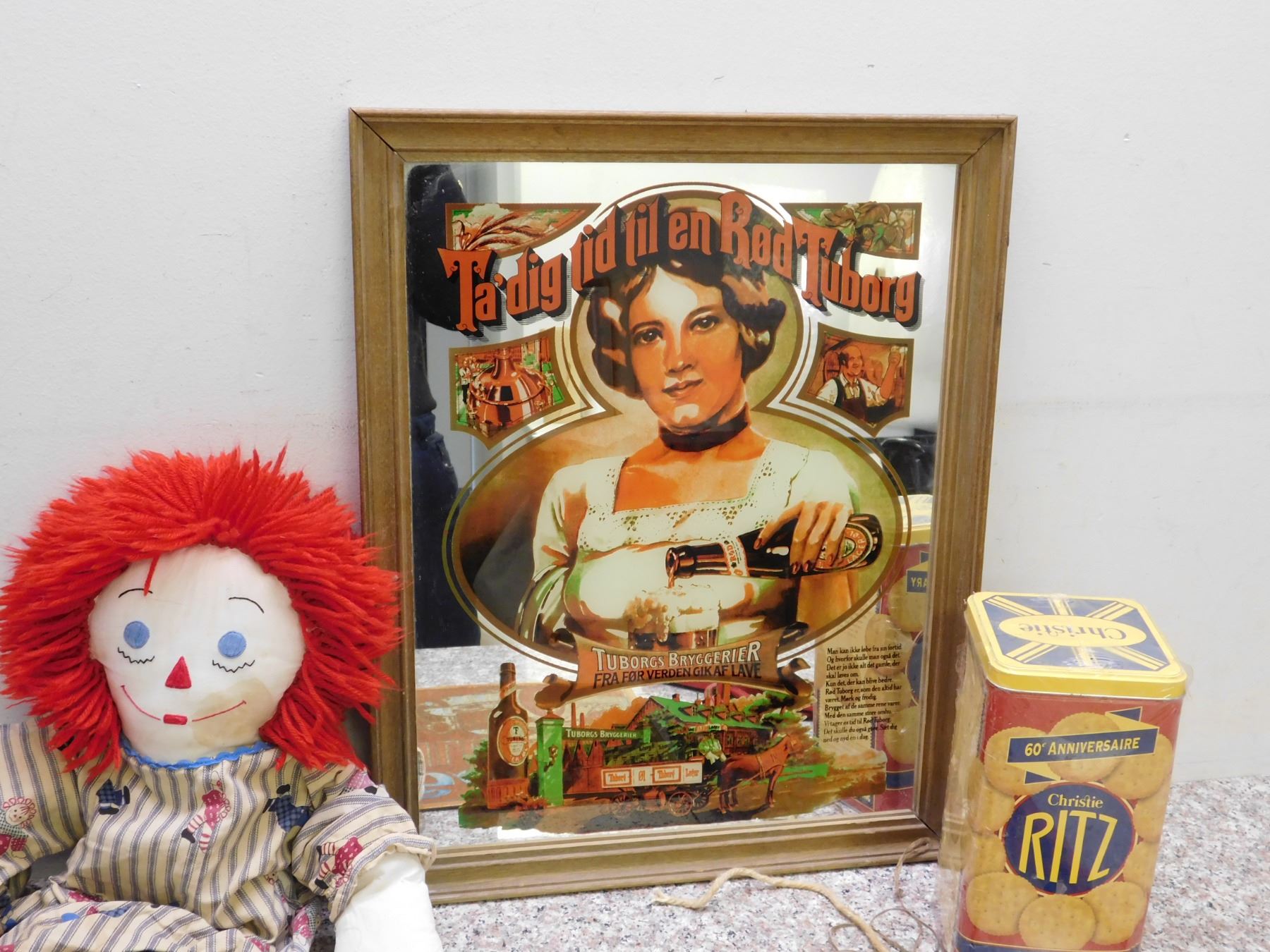 Lot of Assorted Vintage Knick Knacks Rusted Sign, Mirror Wall Sign, Advertising, Plumb Bombs, Etc