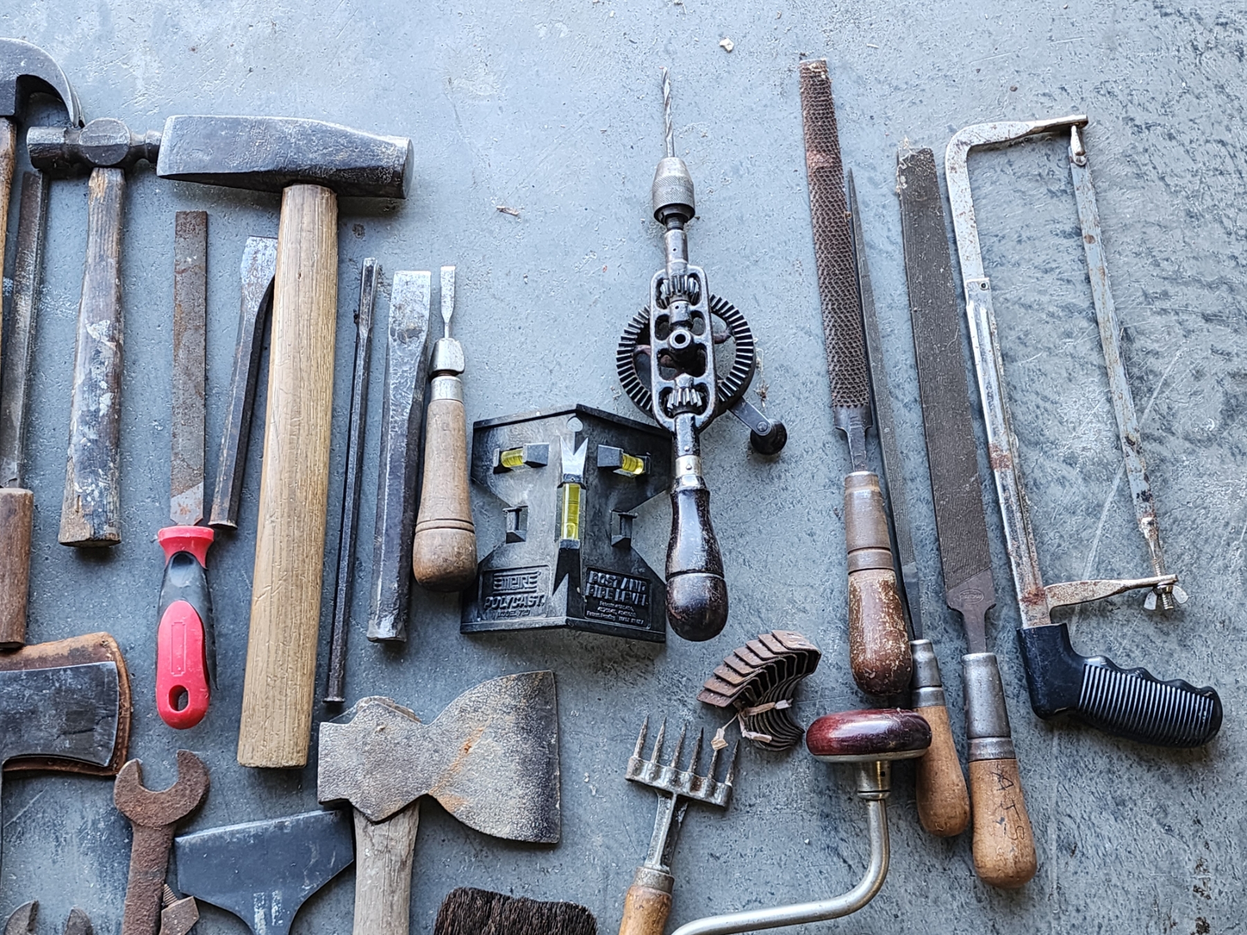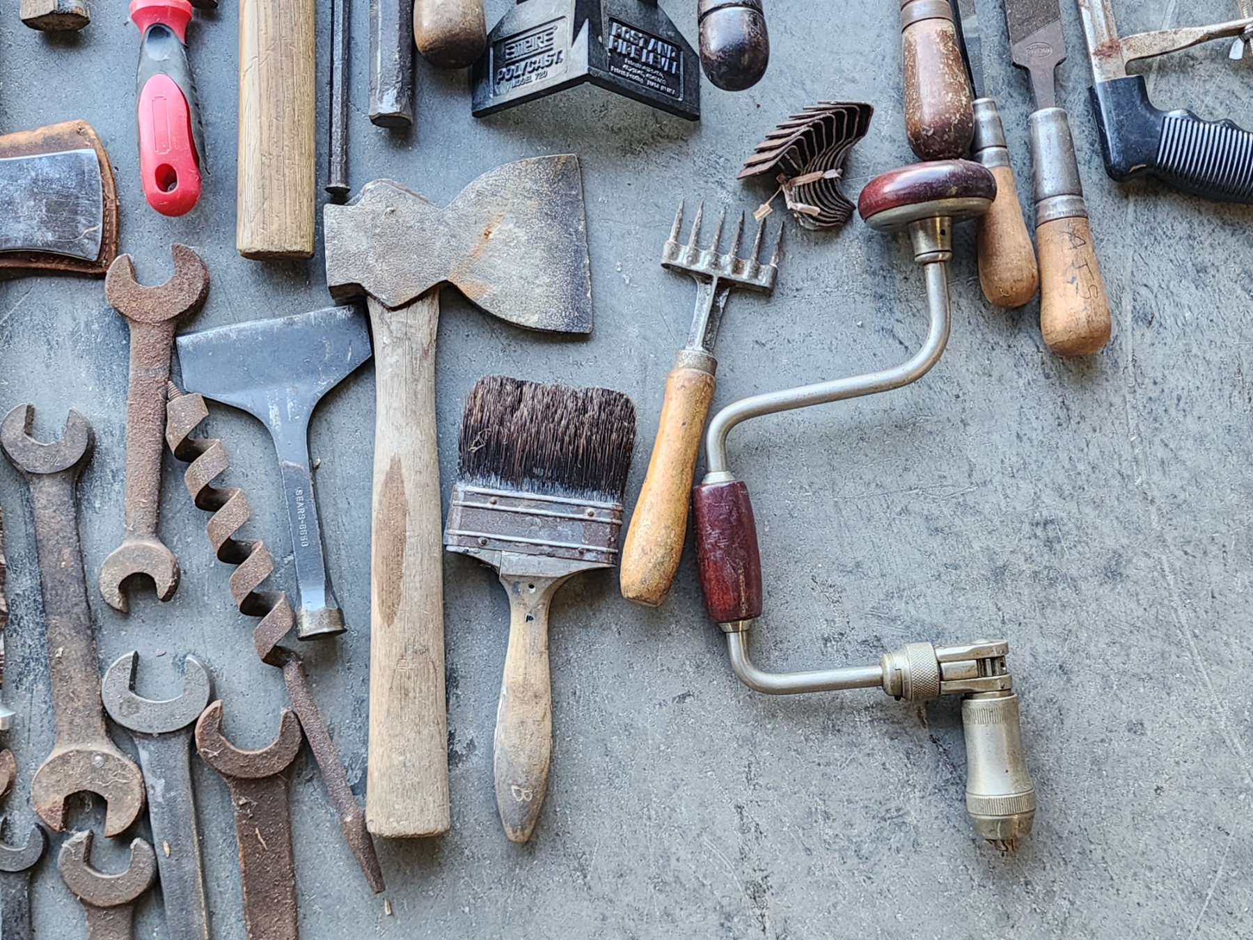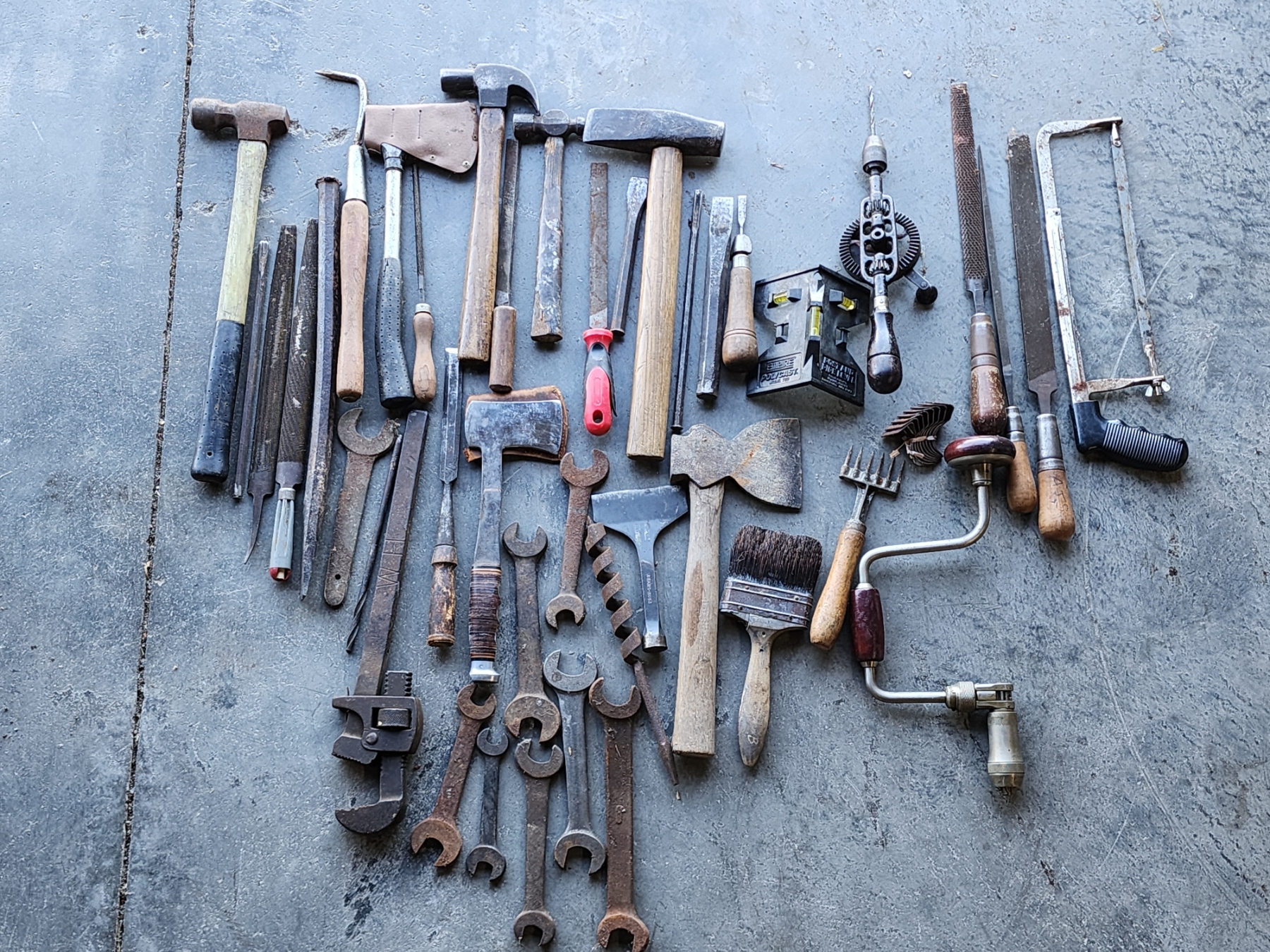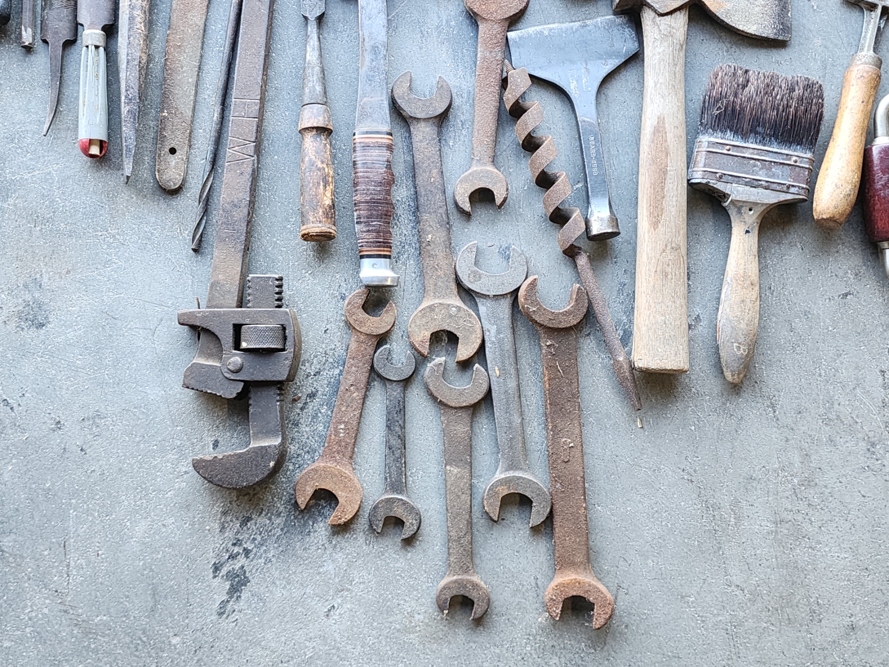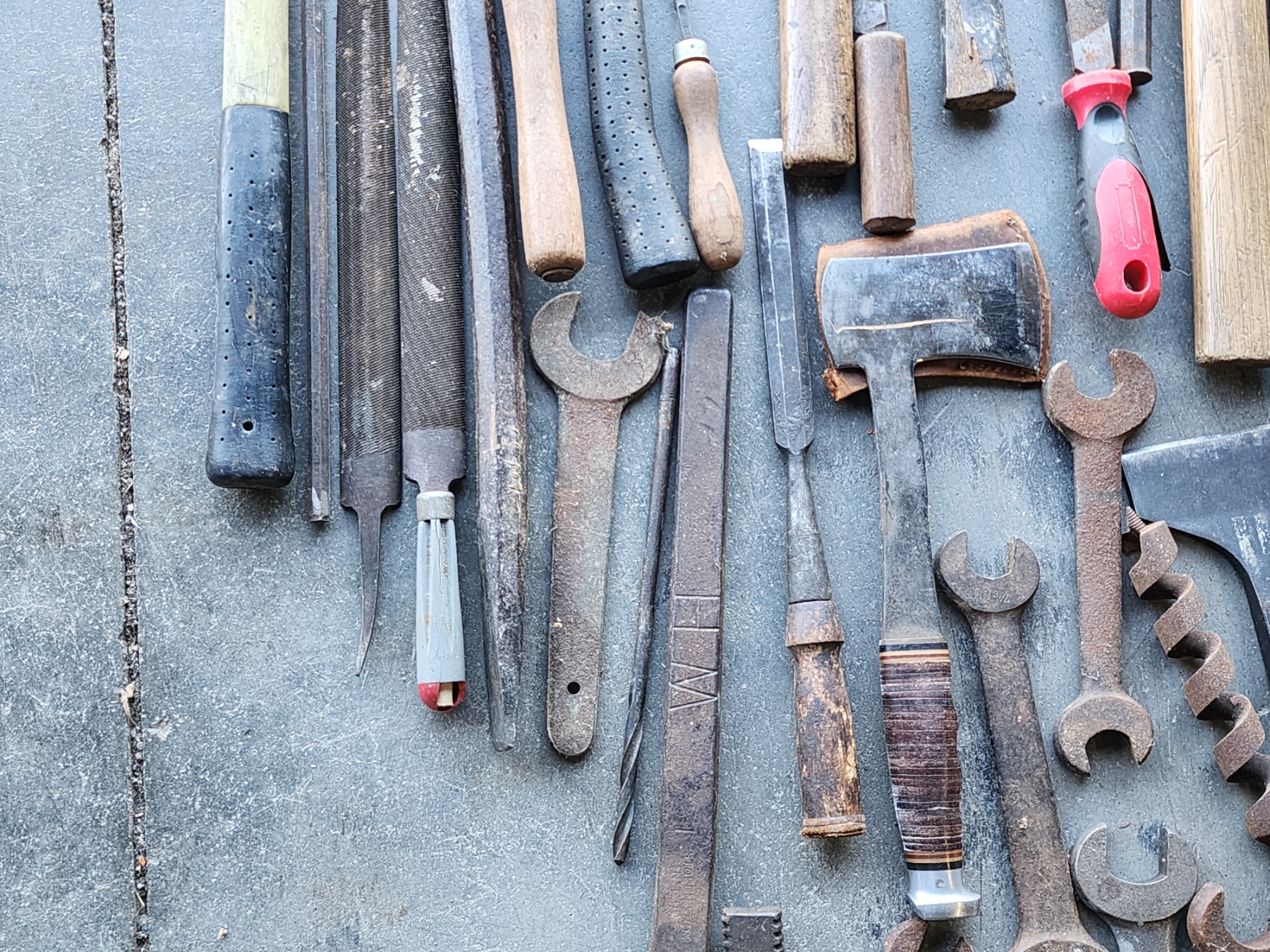 Lot of Assorted Vintage Tools: Wrenches, Saw, Axes, Chisels, and More!