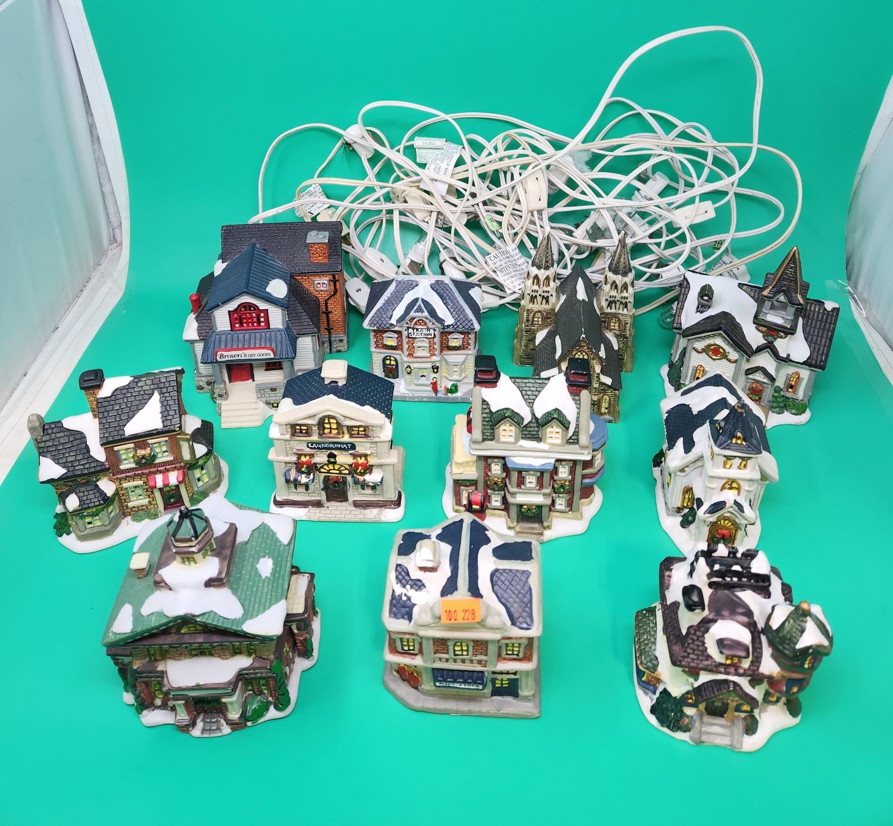 Lot of Assorted Winter Village Buildings w/ Train Station, Laundromat, & More