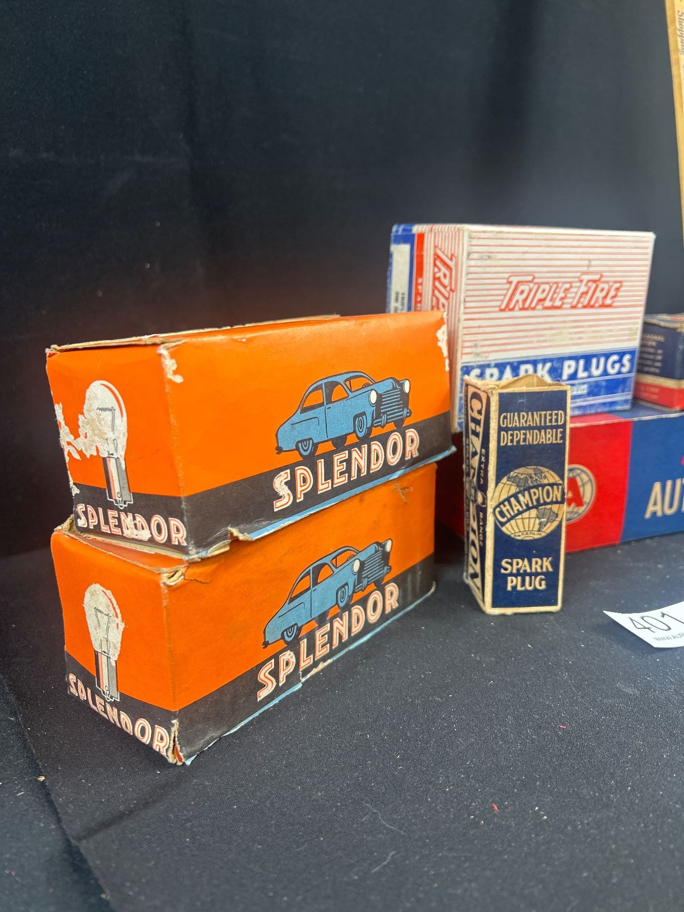 Lot of Automotive Lamp Boxes Mostly Full and Spark Plugs