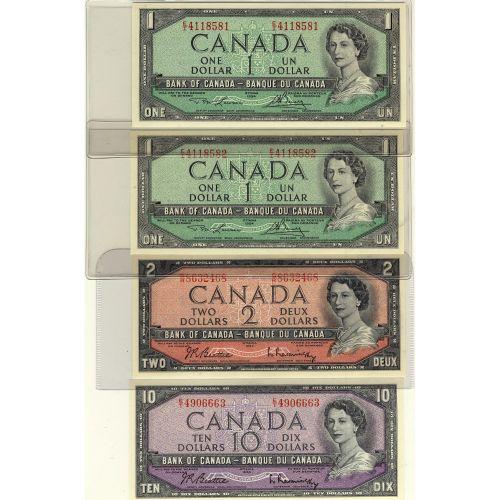 Lot of "BETTER" prefix 1954 notes; $1 E/I (2), $2 G/R, $10 E/T. Grades vary from Choice Unc to Gem Unc.
