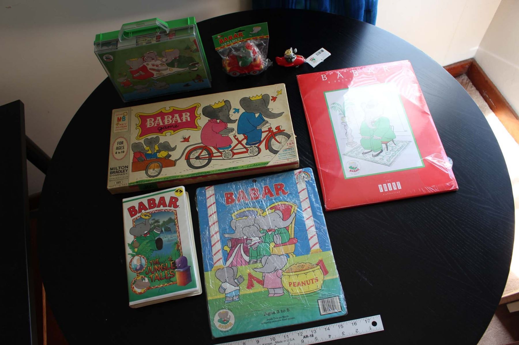 Lot of Babar Items: 1986 Babar Board Game, Puzzle, Etc
