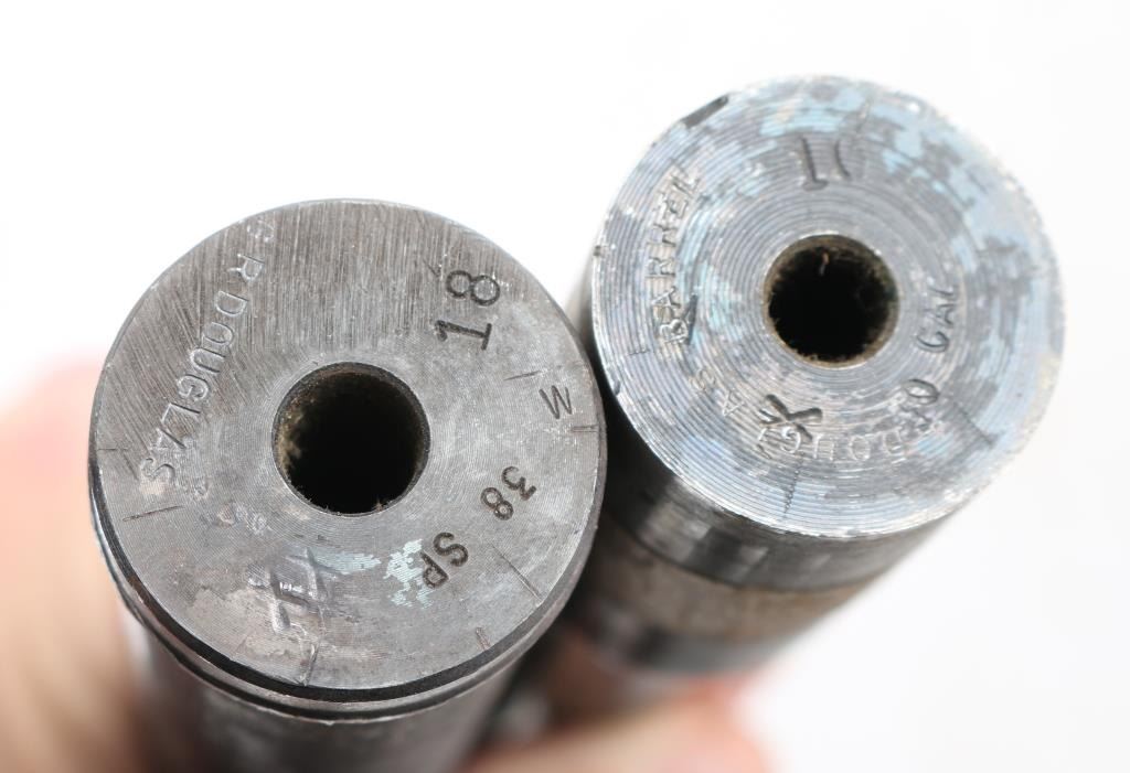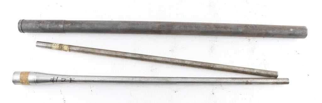 includes: 1) 27.5" unturned raw blank, marked "DOUGLAS XX 38 SPL 18" 2) 25.5" light contour blank, marked "DOUGLAS XX 30 10" 3) 23" small diameter blank or liner, 38/357 cal