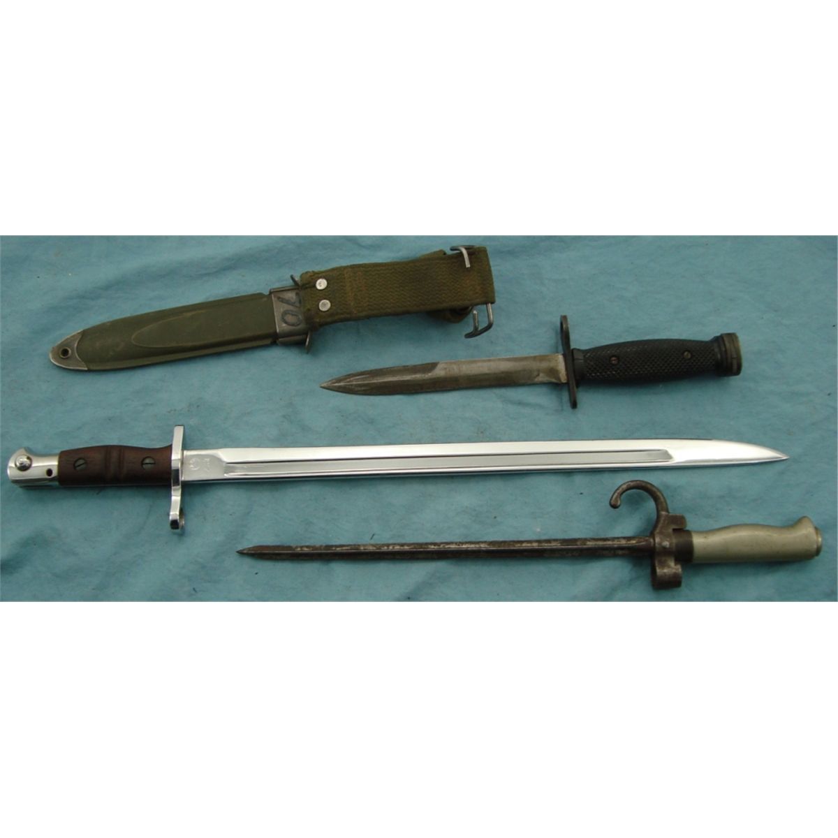 US Remington 1917 chromed bayonet in very good condition. French Eppe & US M4 Utica w/scabbard.