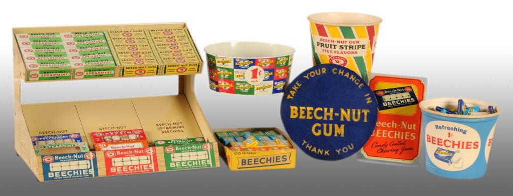 Description Circa 1930 to 1940. Includes one display piece, gum boxes, gum packs, and small gum signs. All items have overall wear and are in various sizes. Condition (Very Good - Excellent). Size Display: 12 - 1/2" W.