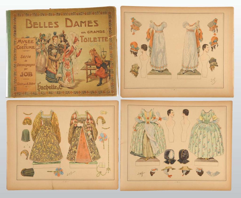 Description 1900. Published by Hachette & Co., this 12.5" x 10" uncut, hard cover book, illustrated by JOB, has twelve cut out pages of front/ back ladies and the fashions of the day. The pages have separated from the spine; otherwise the book is in fine condition with minor wear.