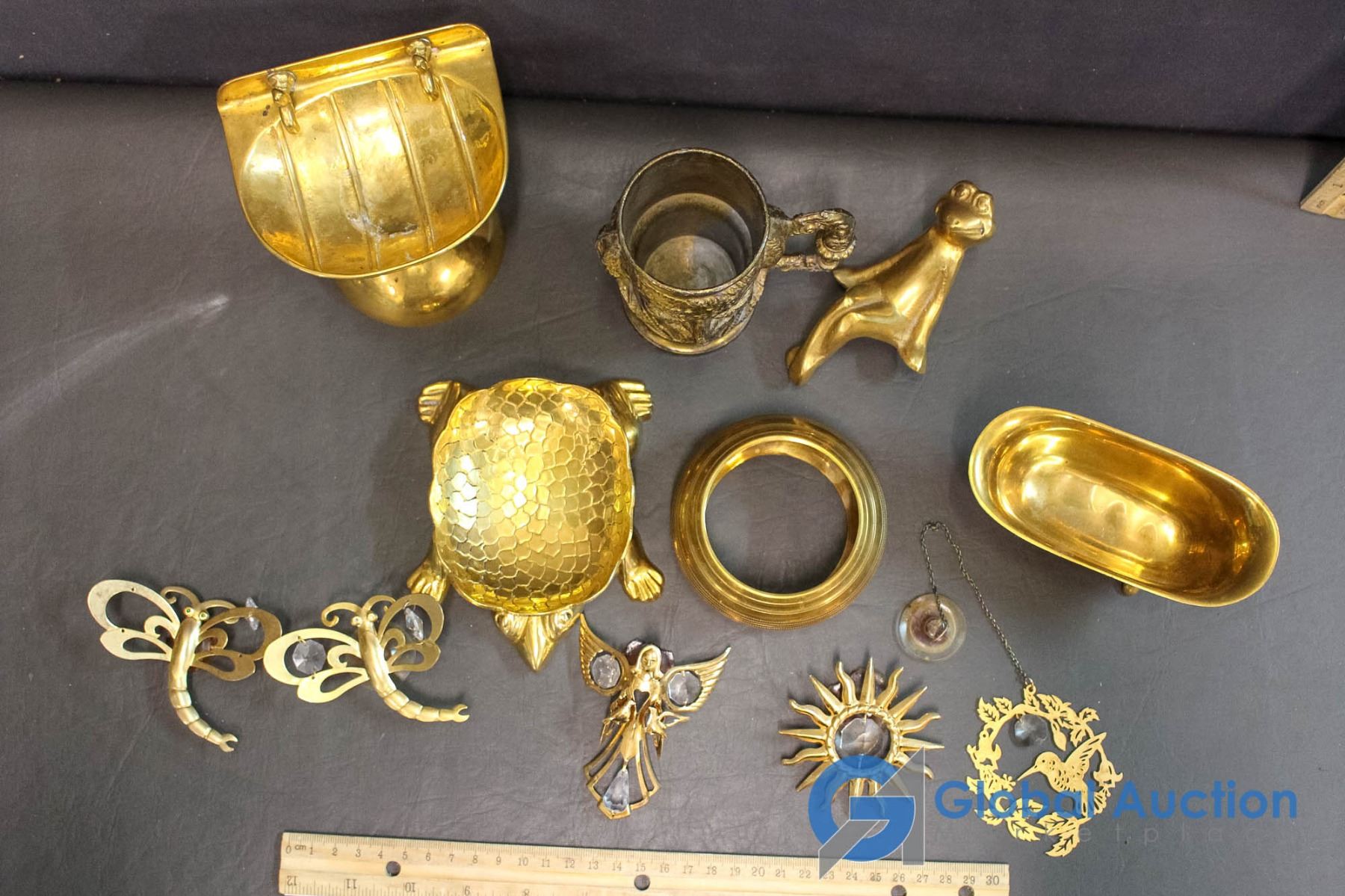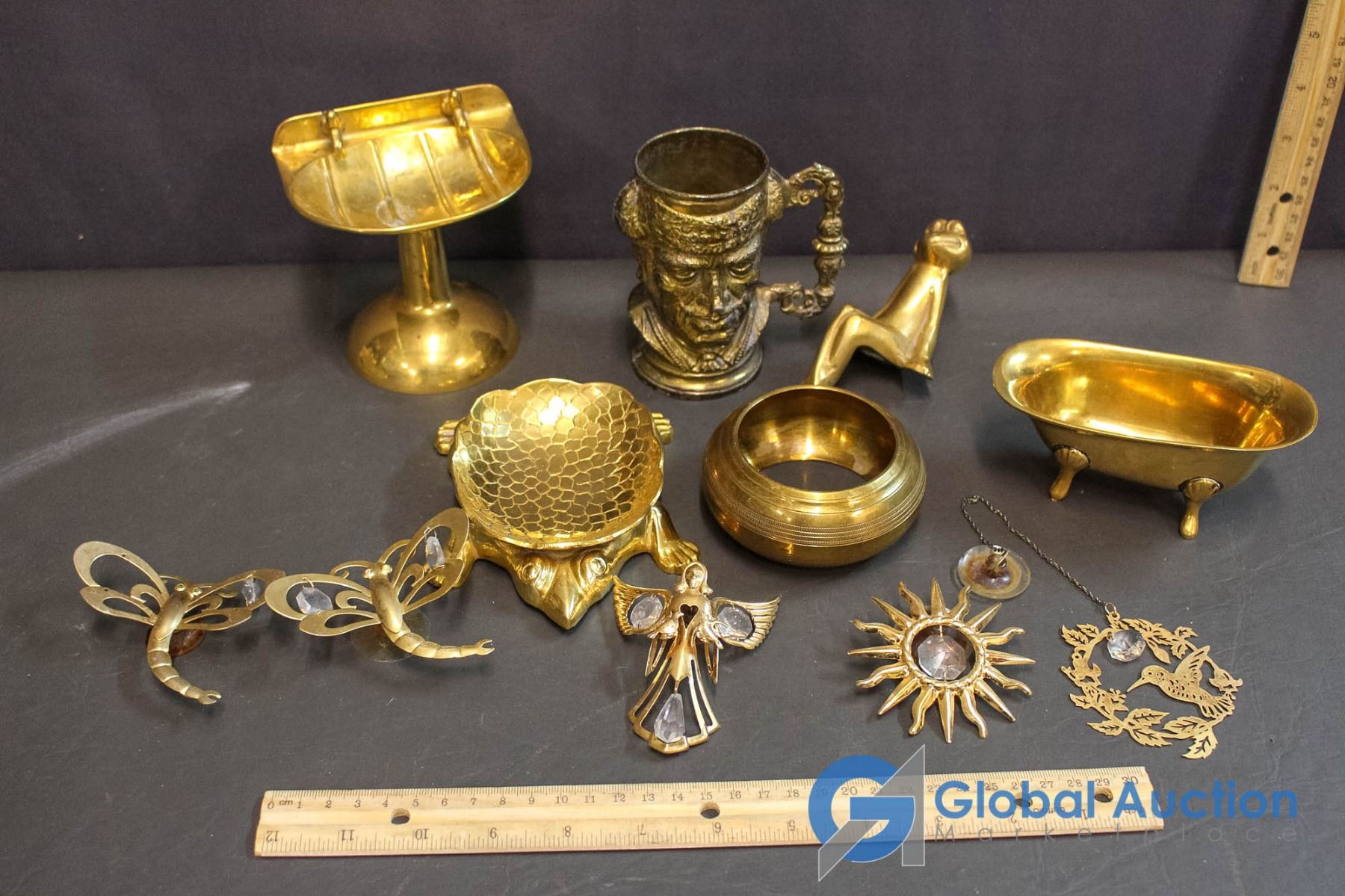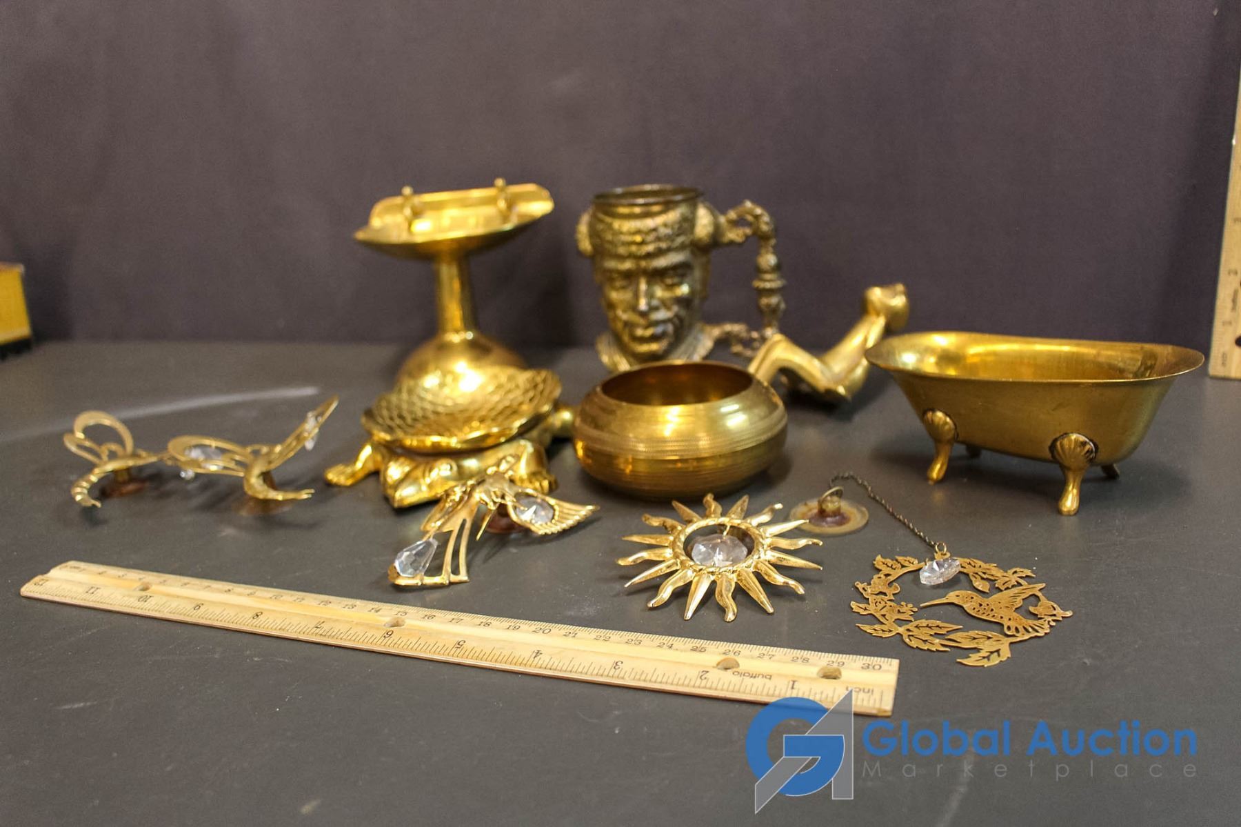 Lot of Brass Bathroom Items and Window Decor
