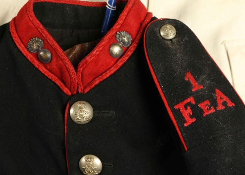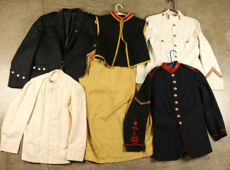 Including; Mess Dress vest, Scottish coat, cotton jerkin, white service jacket, white enlisted Royal Artillery coat, and an enlisted Royal Artillery coat. From The John F Sukey Collection