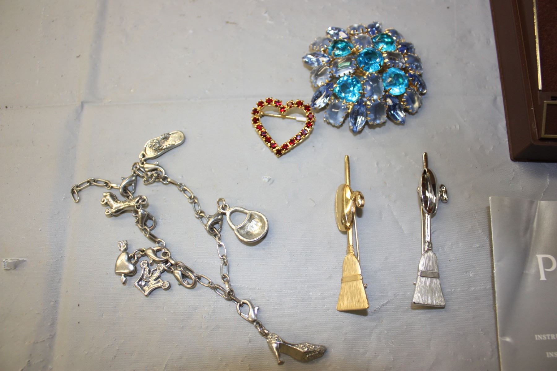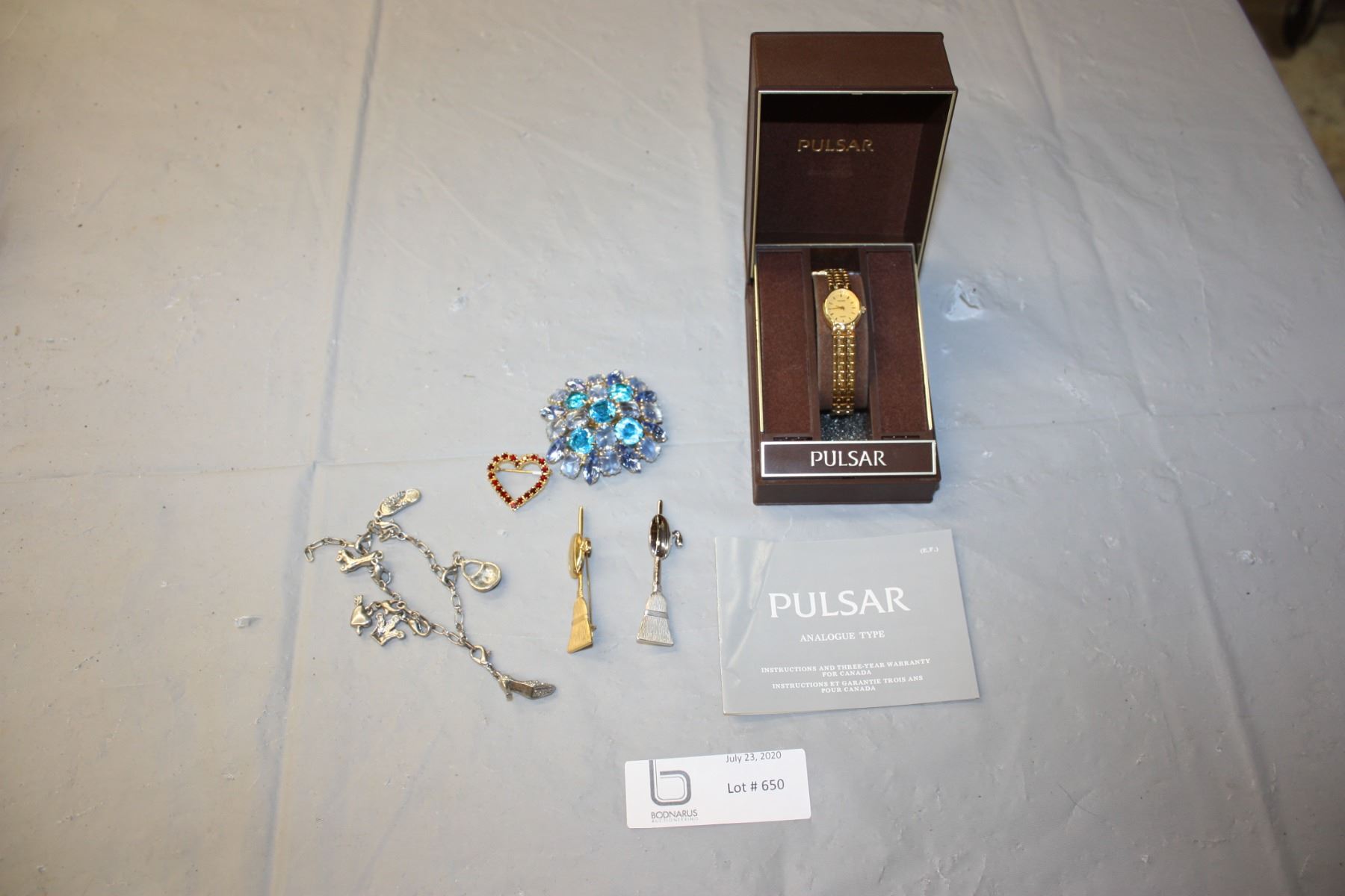 Lot of Broaches, Charm Bracelet and Pulsar Watch