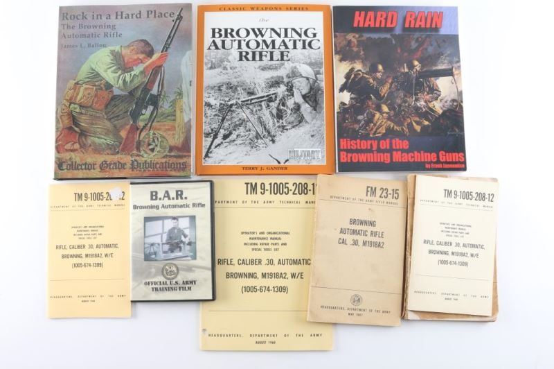 Includes 5 Army training manuals, Army training film on CD, 3 books, Rock in a hard place (Rare), Hard rain and The Browning Automatic Rifle. All in good condition.