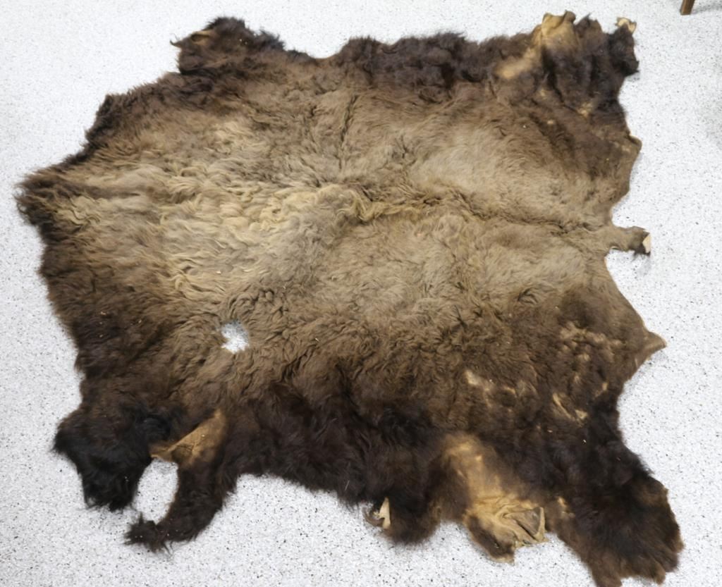Buffalo hide measures 84 x 80". The leather measures 69 x 66".