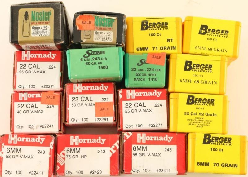 5 boxes of 22 Cal, 8 boxes of 6mm-various makers and an additional 3 boxes of 22.