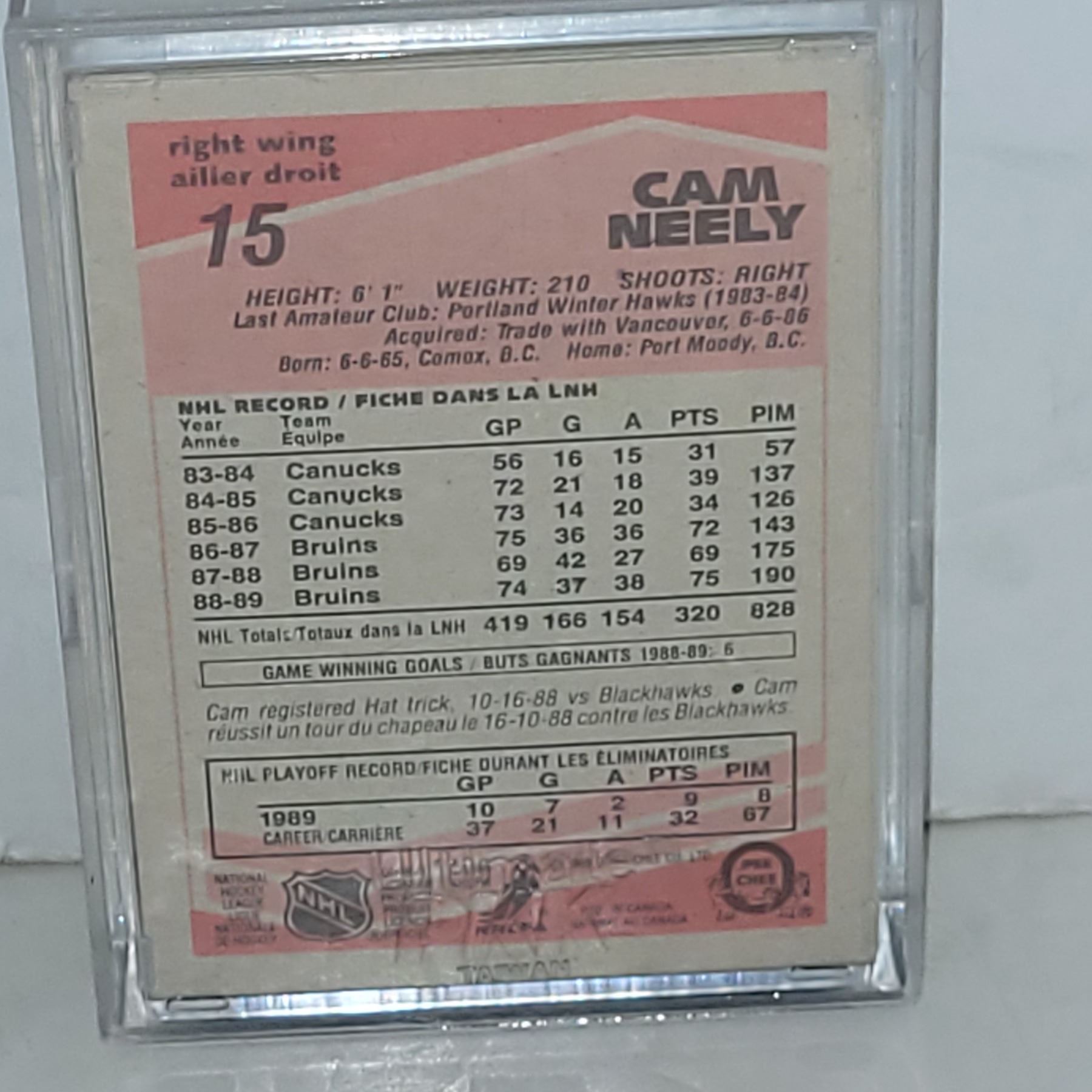 Lot of Cam Neely Hockey Cards in Hard Shell Plastic Case