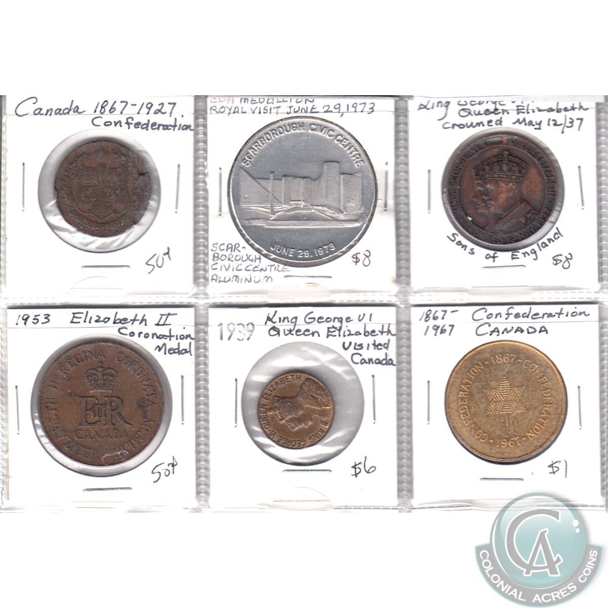 Lot of Canada Royal Visit, Coronation and Confederation Tokens. 6pcs