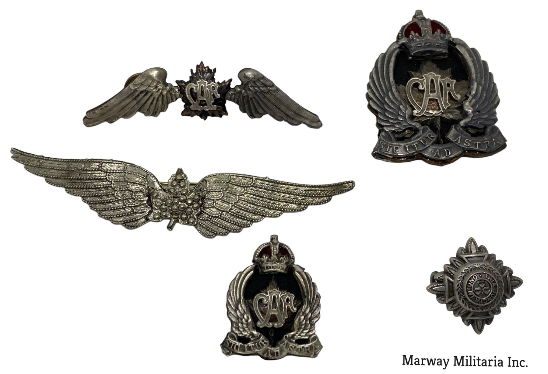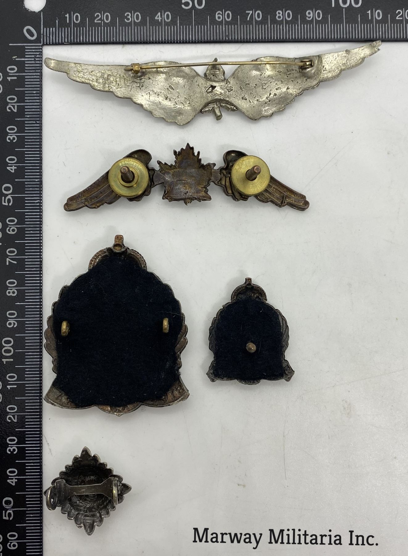 Lot of 5. Cap, Collar & Pip. Two winged badges, but I do not believe these are CAF. CAF are the reproduction set.